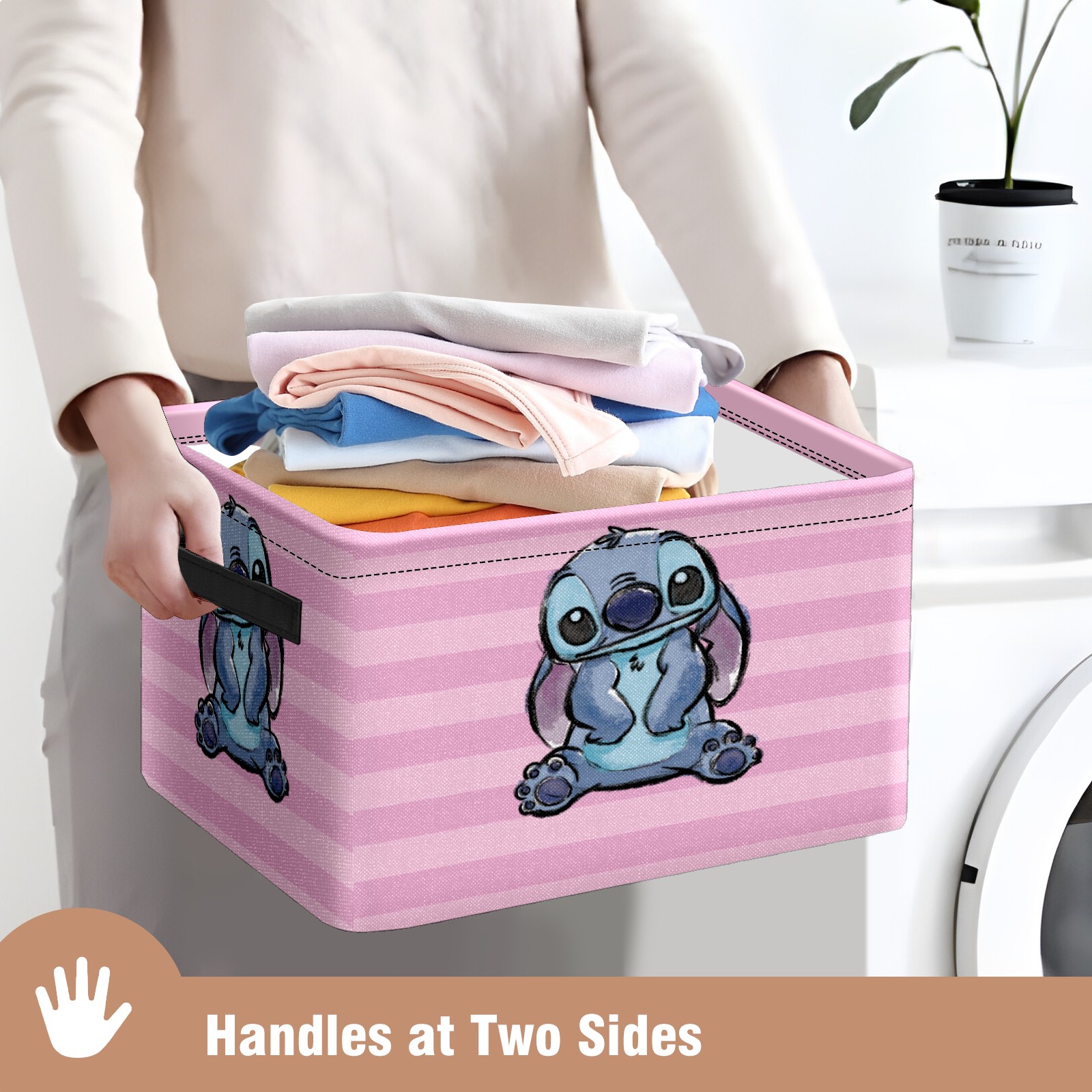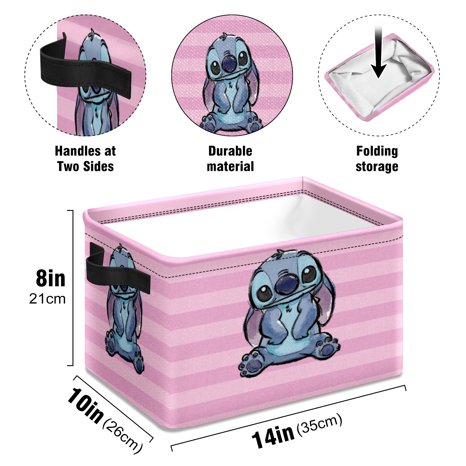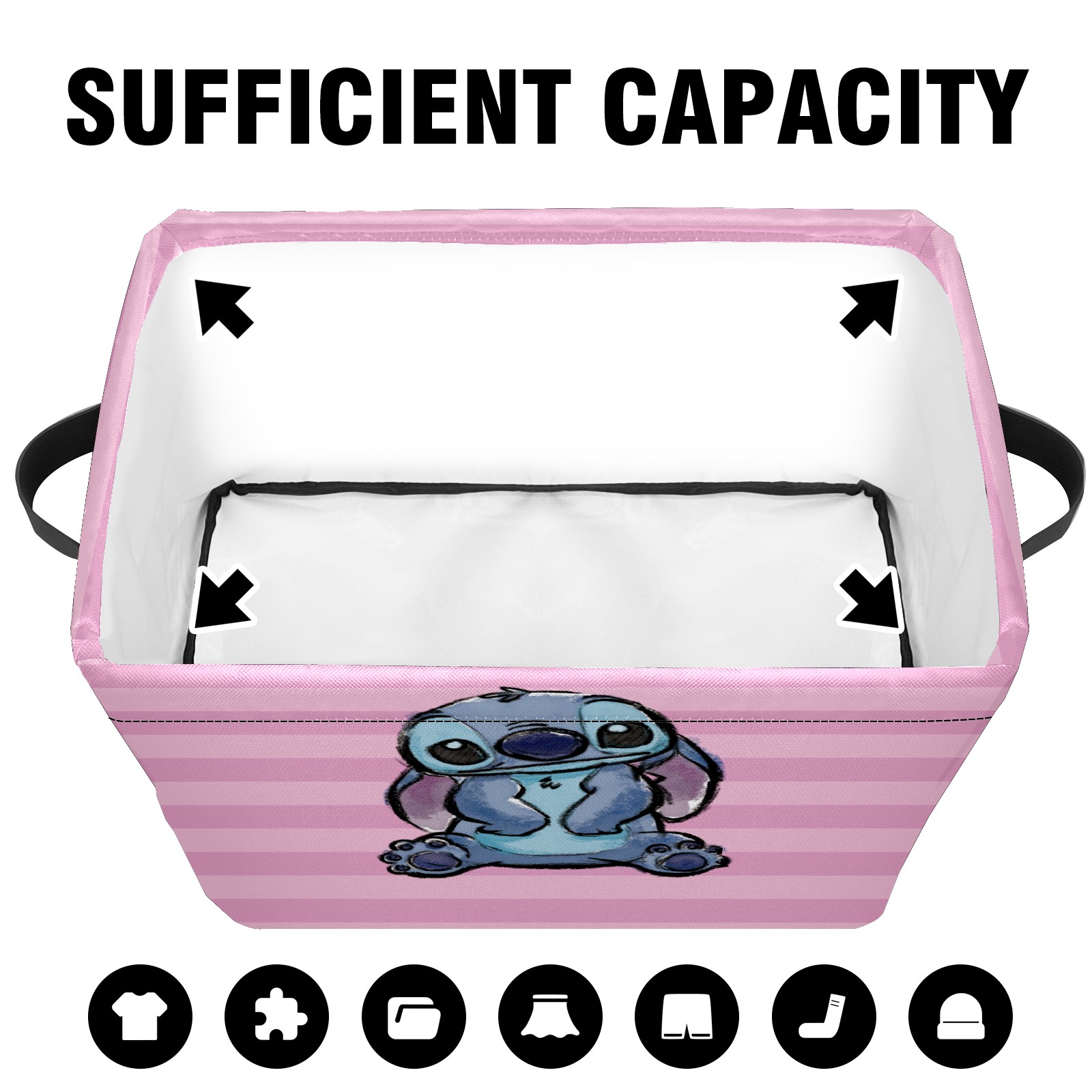 Foldable and Stackable Fabric Storage Basket for Home Organization with Handles, Decorative Closet Bins for Shelves and Laundry Storage( Pink Lilo Stitch Stitch Sketch)