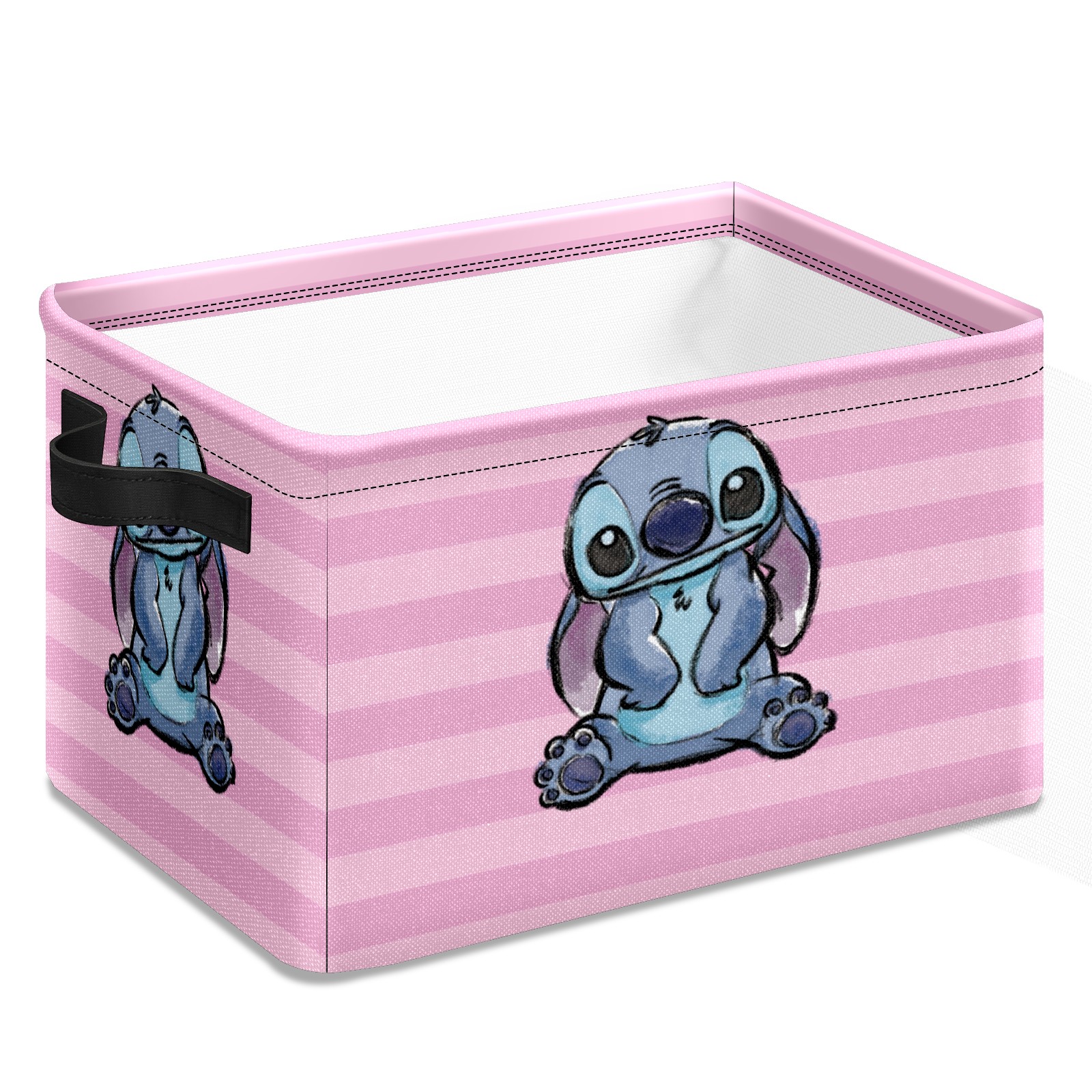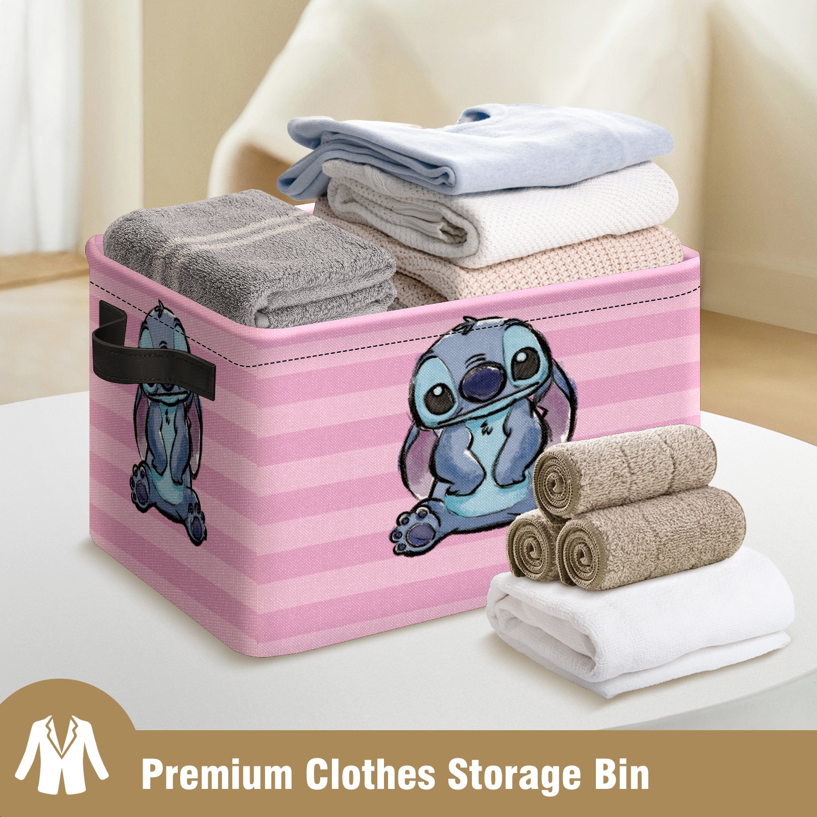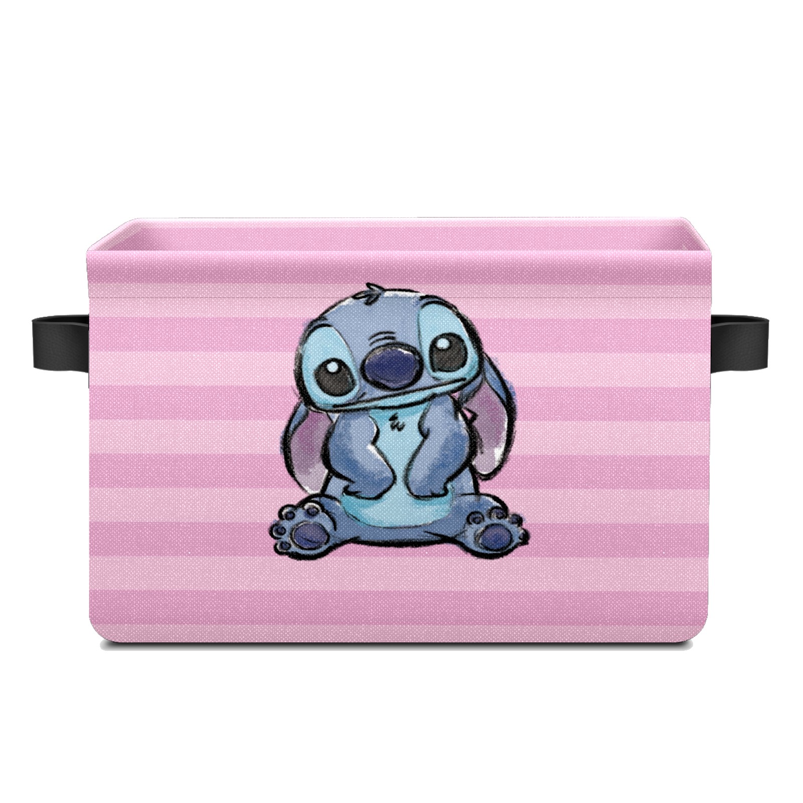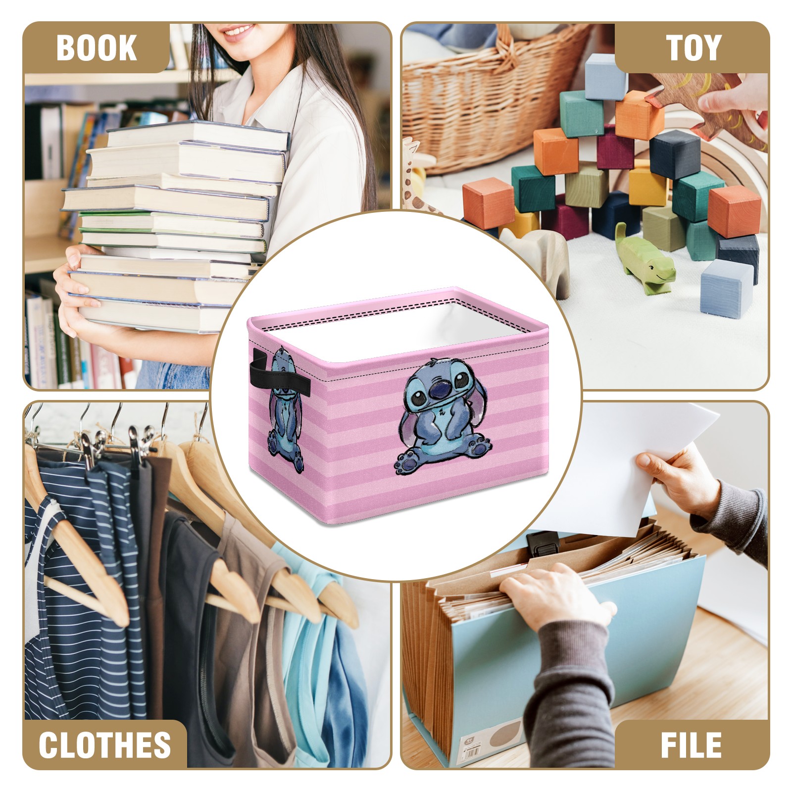 Foldable and Stackable Fabric Storage Basket for Home Organization with Handles, Decorative Closet Bins for Shelves and Laundry Storage( Pink Lilo Stitch Stitch Sketch)