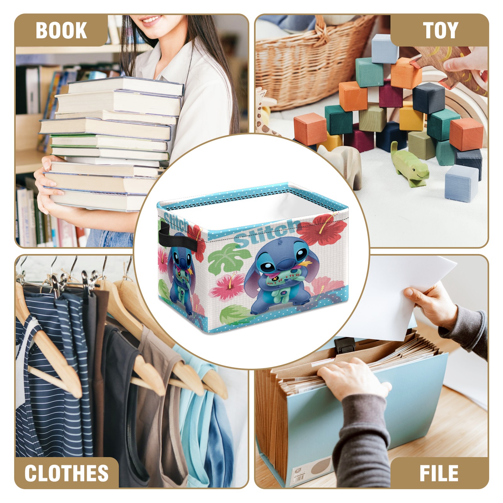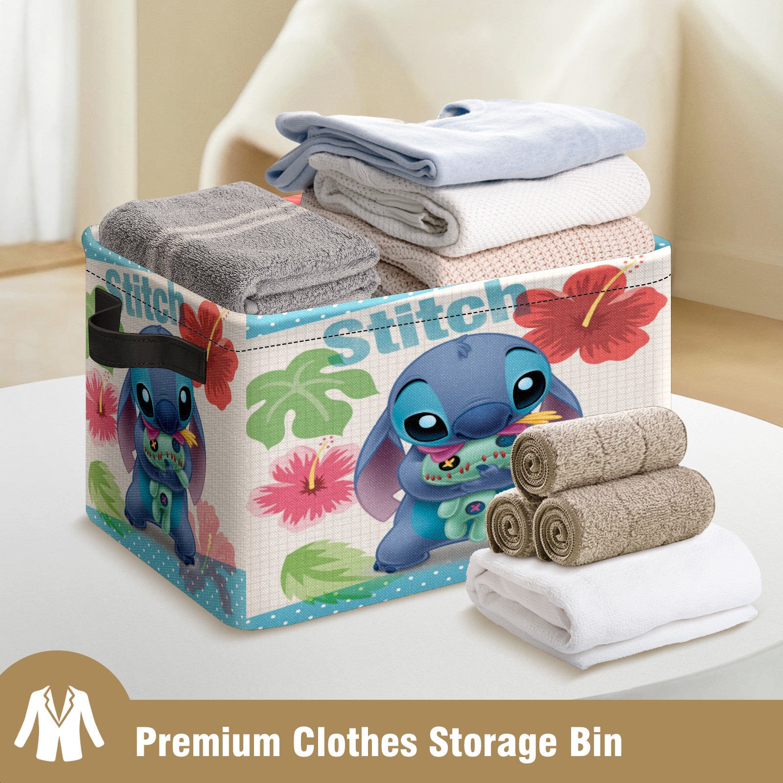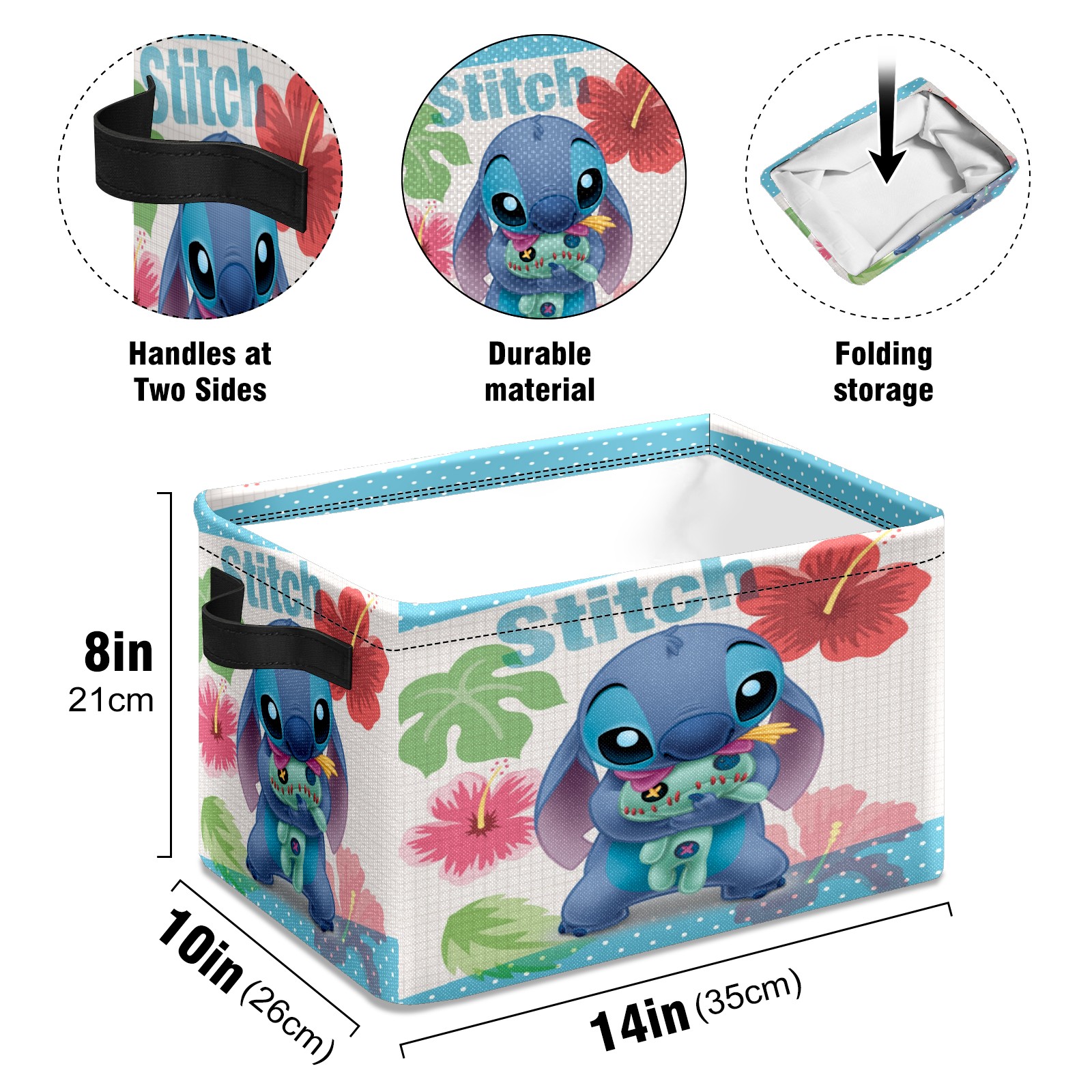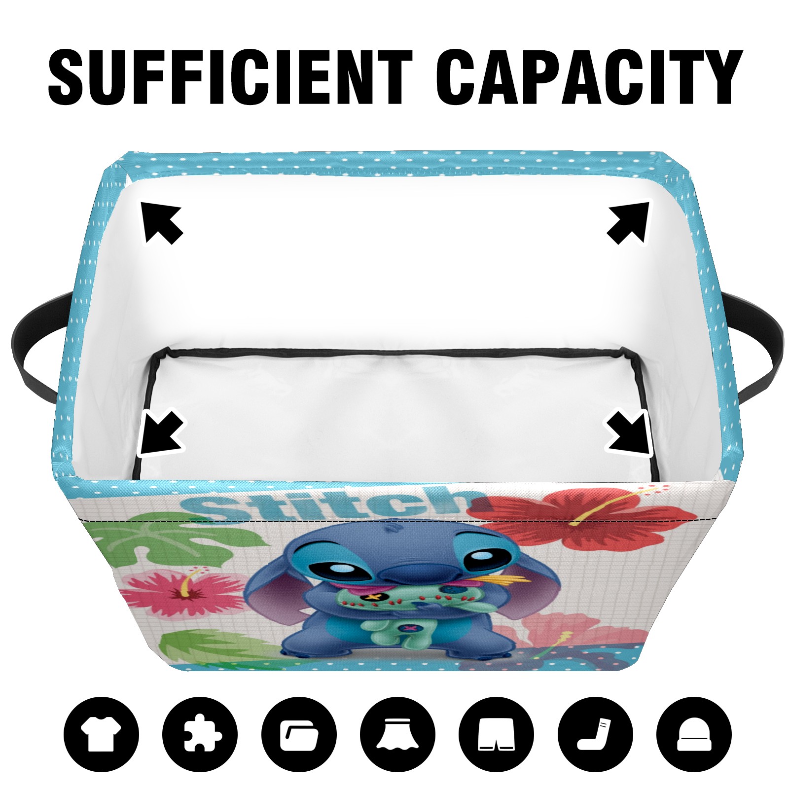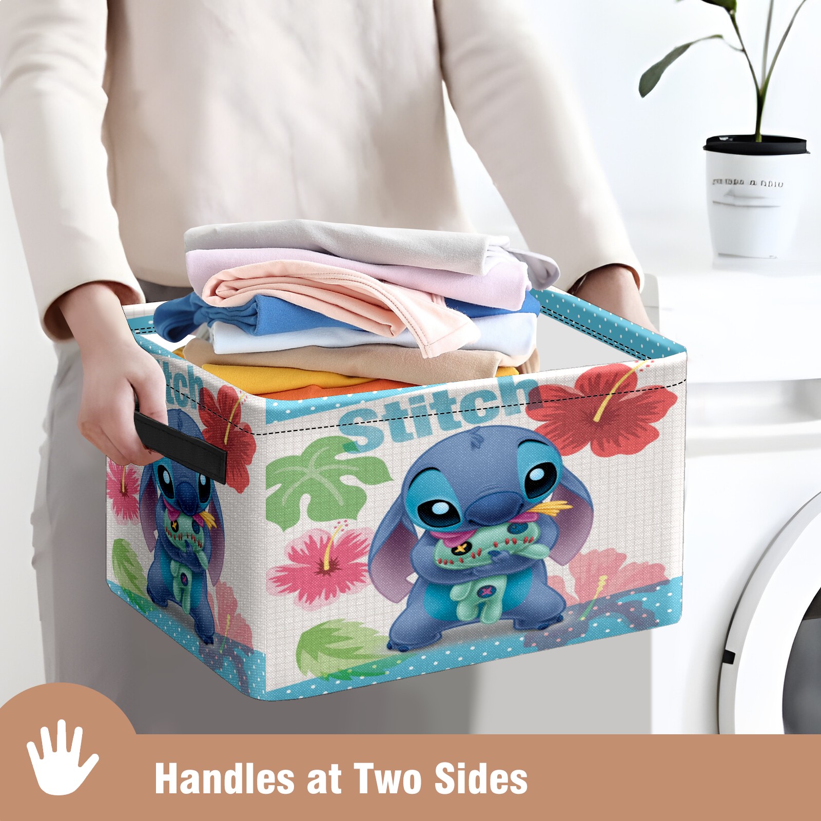 Foldable and Stackable Fabric Storage Basket for Home Organization with Handles, Decorative Closet Bins for Shelves and Laundry Storage( Lilo Stich Stitch With Ugly Doll)