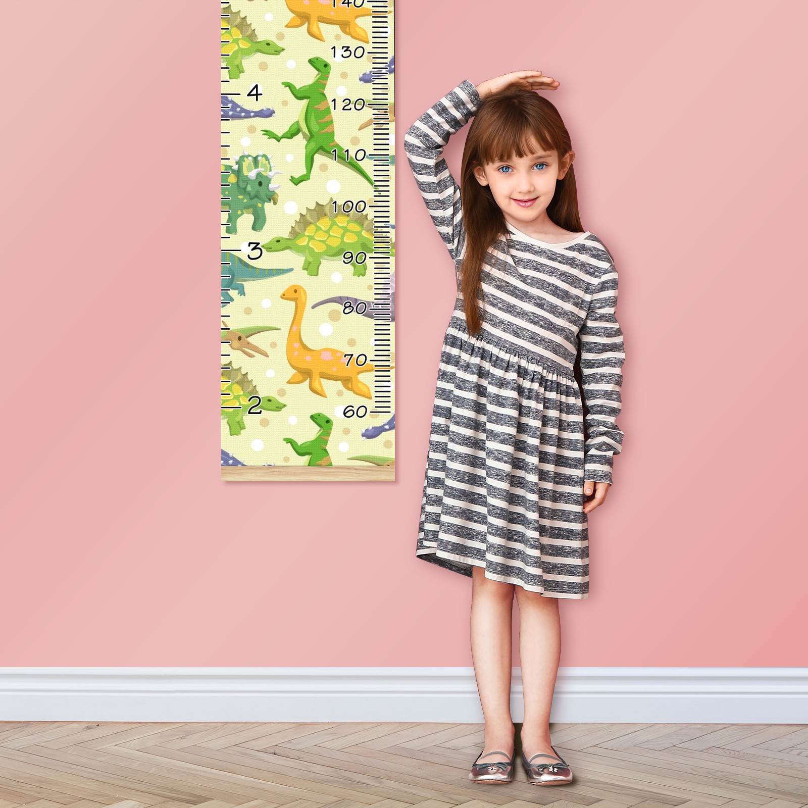 Personalized Kids Name Growth Chart Ruler for Wall Wood Frame Canvas Height Measure Chart 13.4x56 in Hanging Growth Chart Cartoon Dinosaur Animal1.29 Boys Girls Room Decor