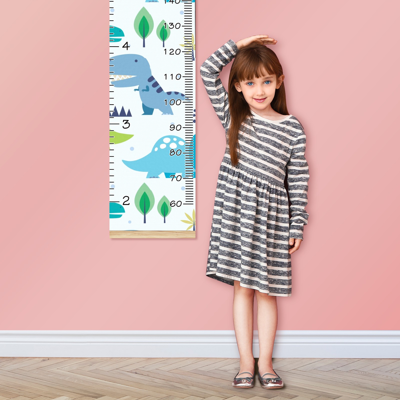 Personalized Kids Name Growth Chart Ruler for Wall Wood Frame Canvas Height Measure Chart 13.4x56 in Hanging Growth Chart Cute Dinosaur1.29 Boys Girls Room Decor