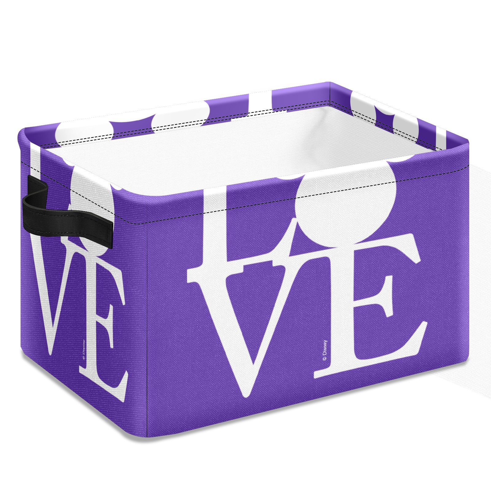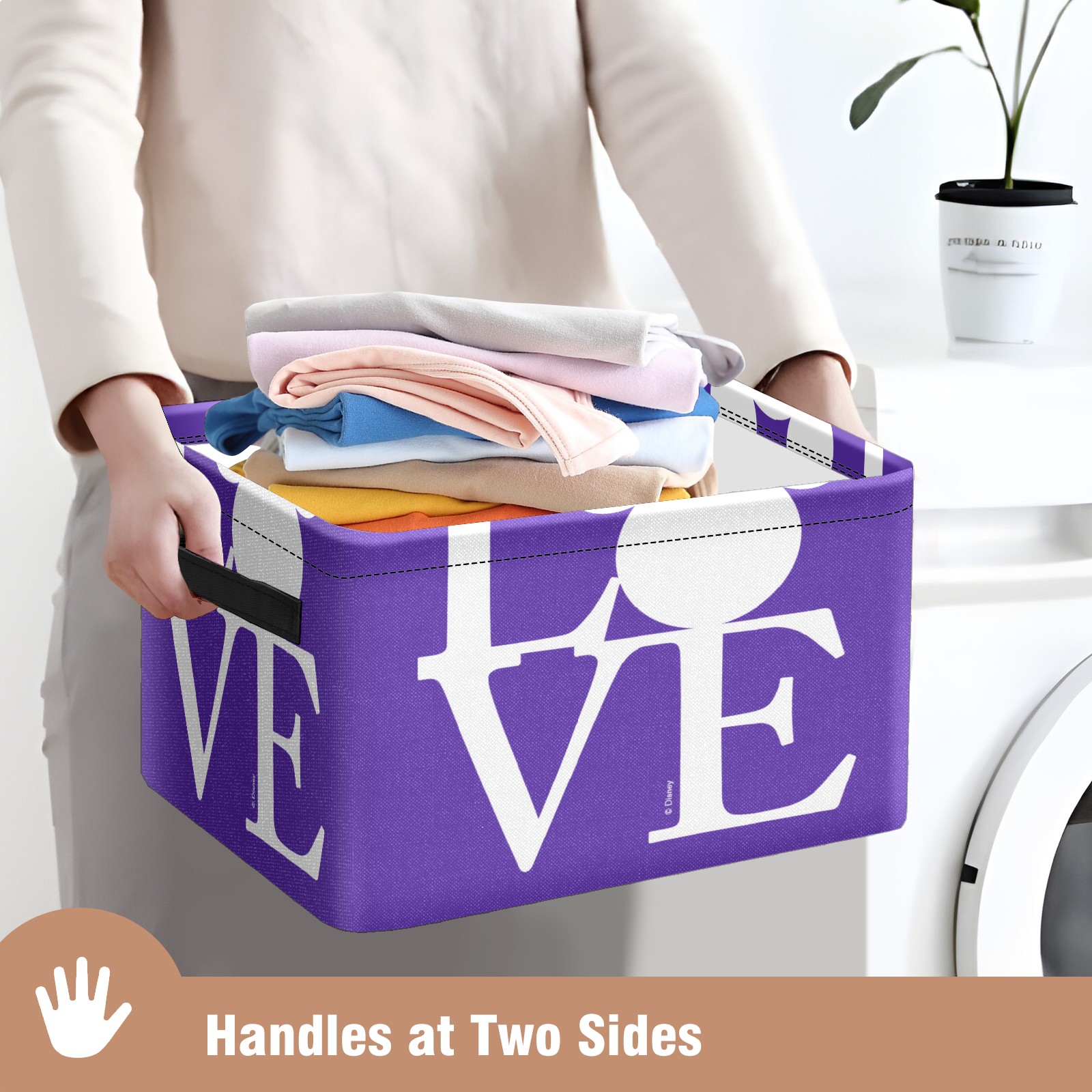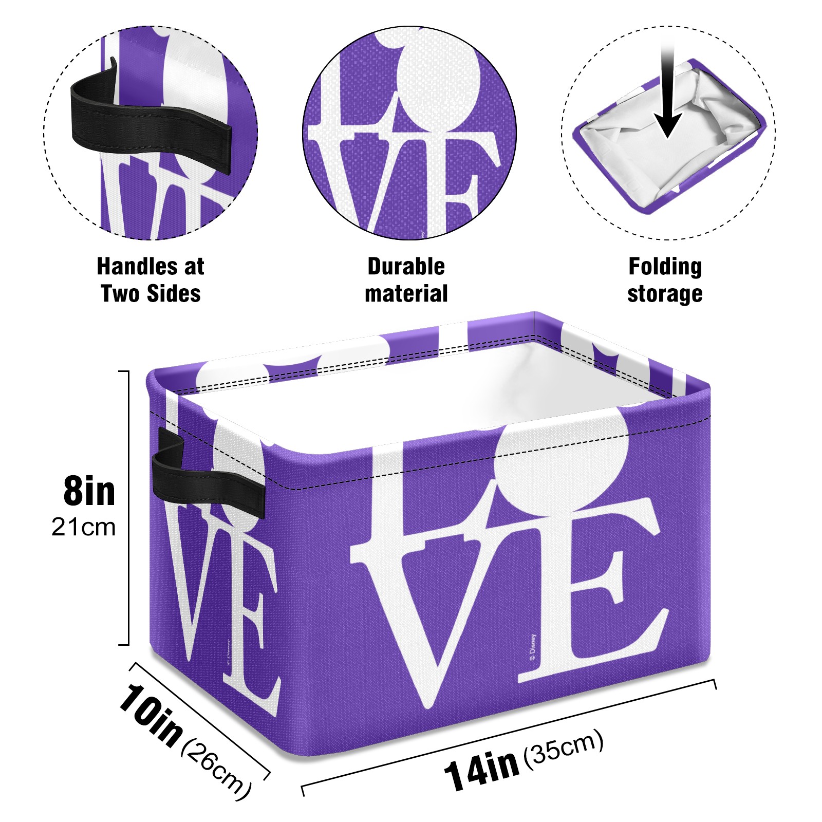 Foldable and Stackable Fabric Storage Basket for Home Organization with Handles, Decorative Closet Bins for Shelves and Laundry Storage( Mickey Mouse LOVE Valentine's Day Purple)