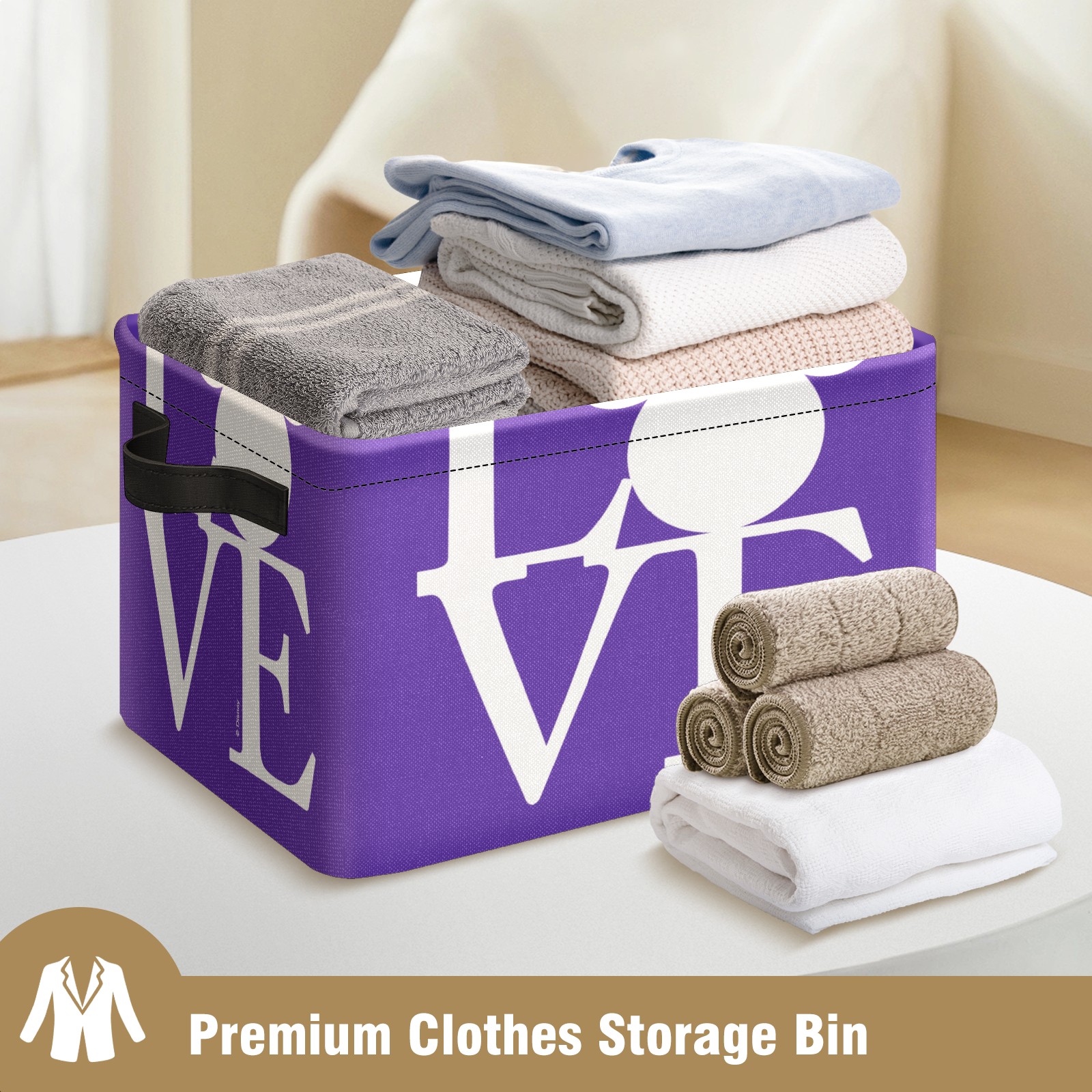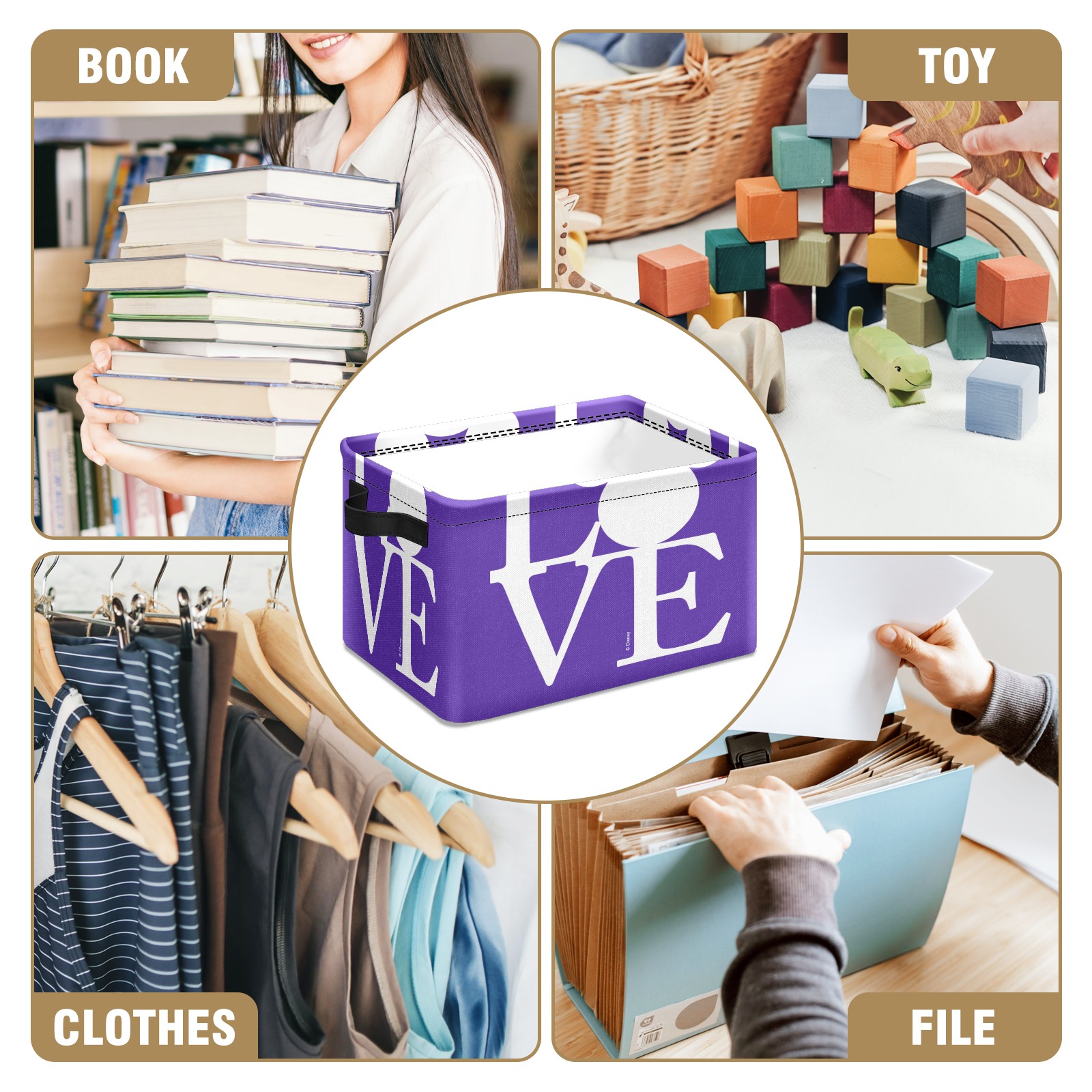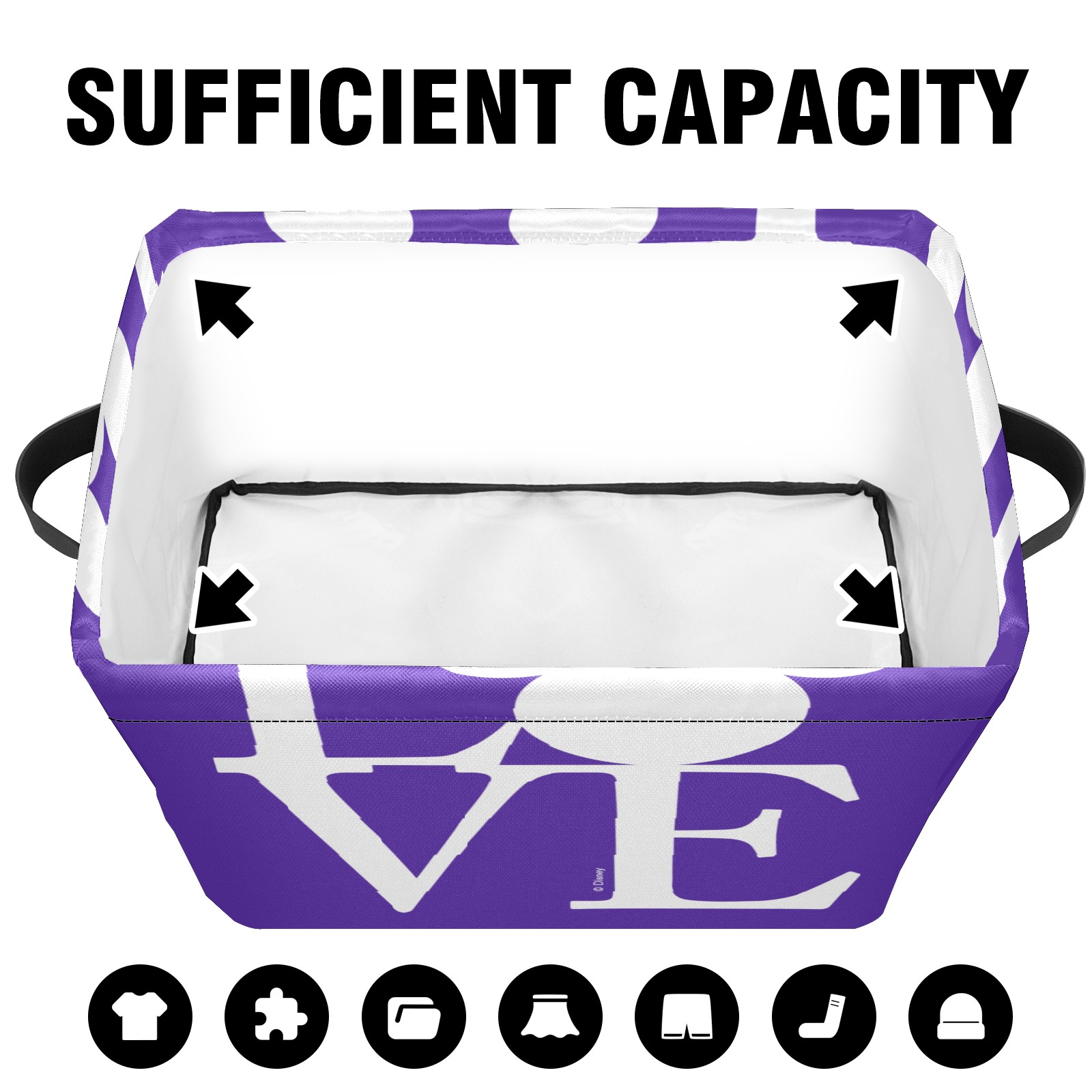 Foldable and Stackable Fabric Storage Basket for Home Organization with Handles, Decorative Closet Bins for Shelves and Laundry Storage( Mickey Mouse LOVE Valentine's Day Purple)