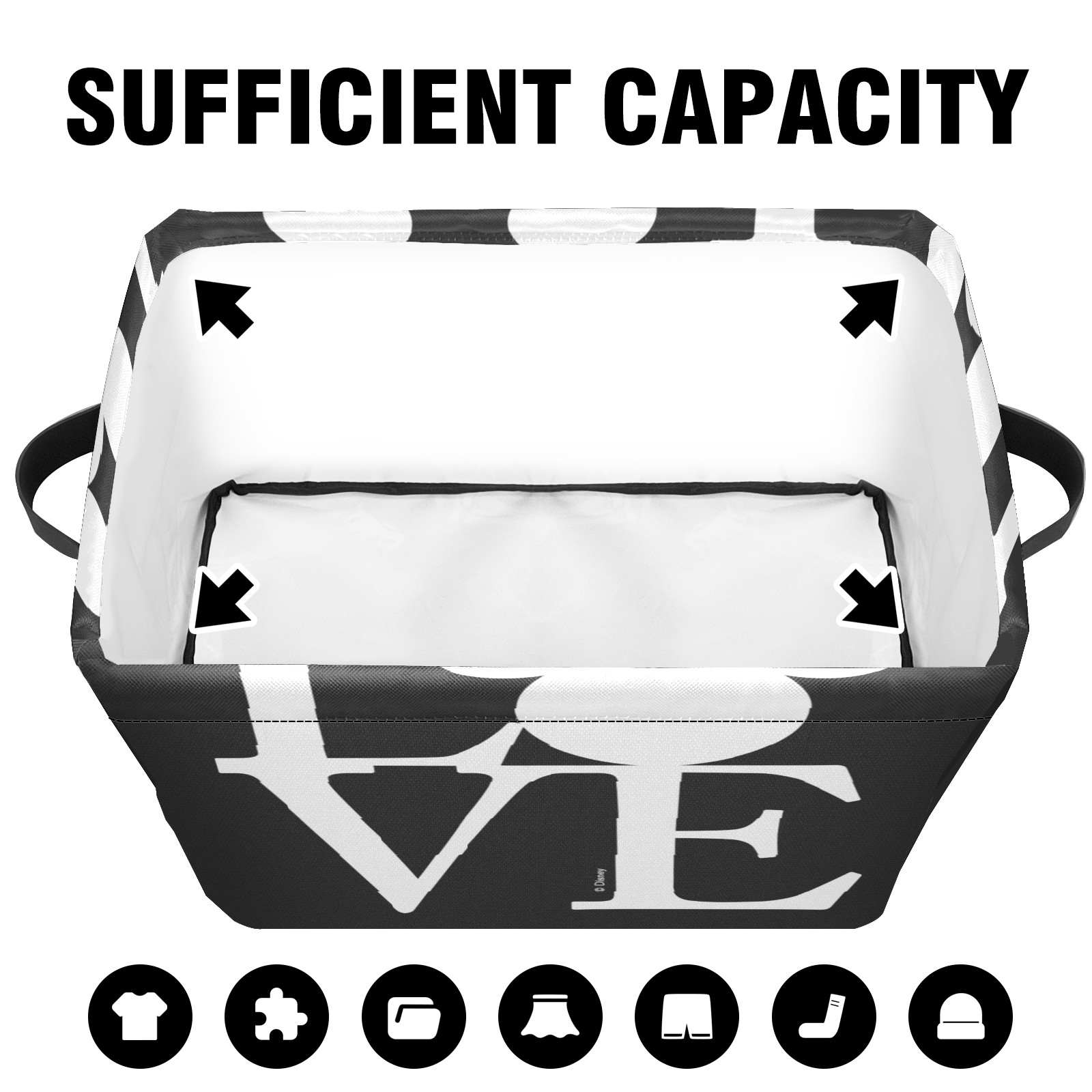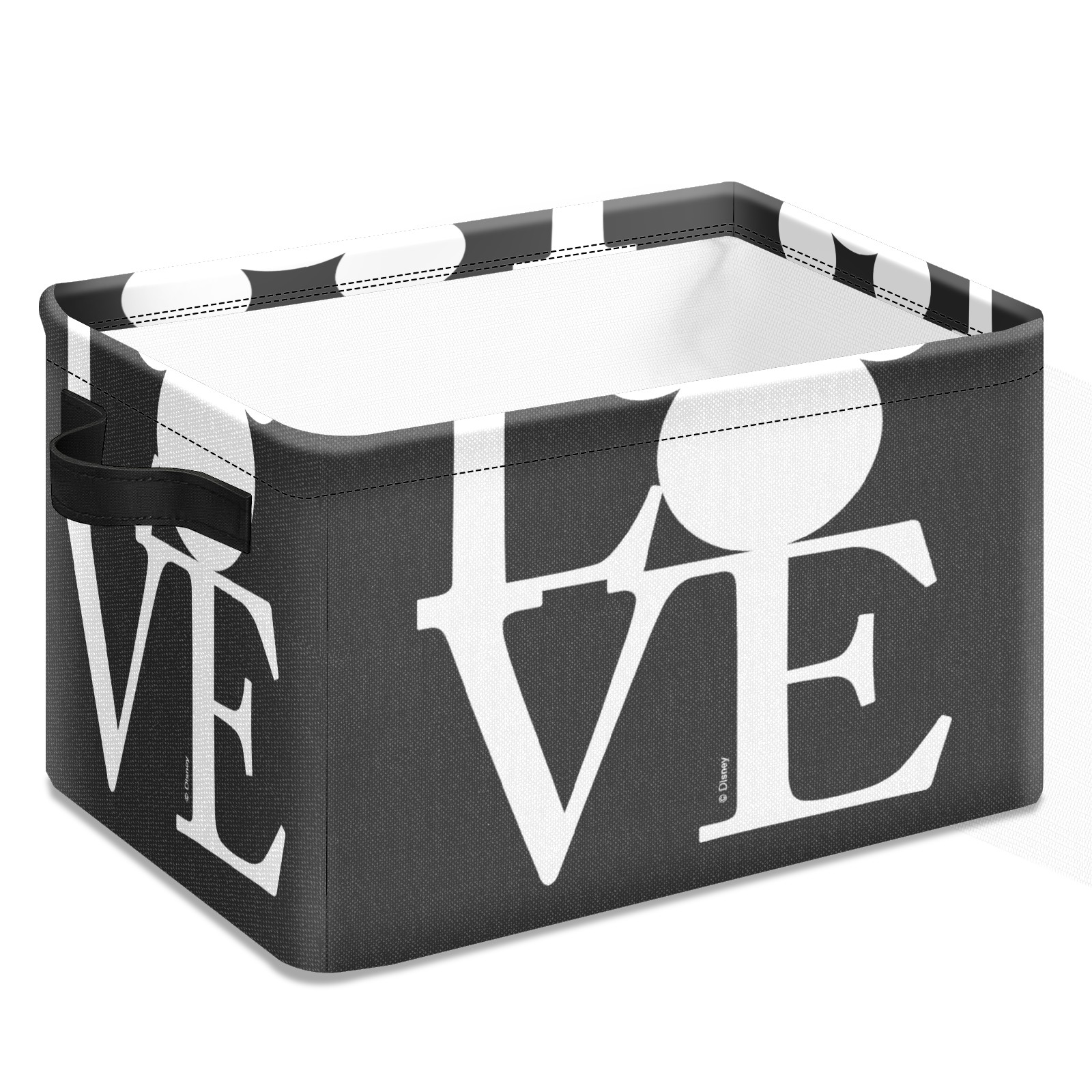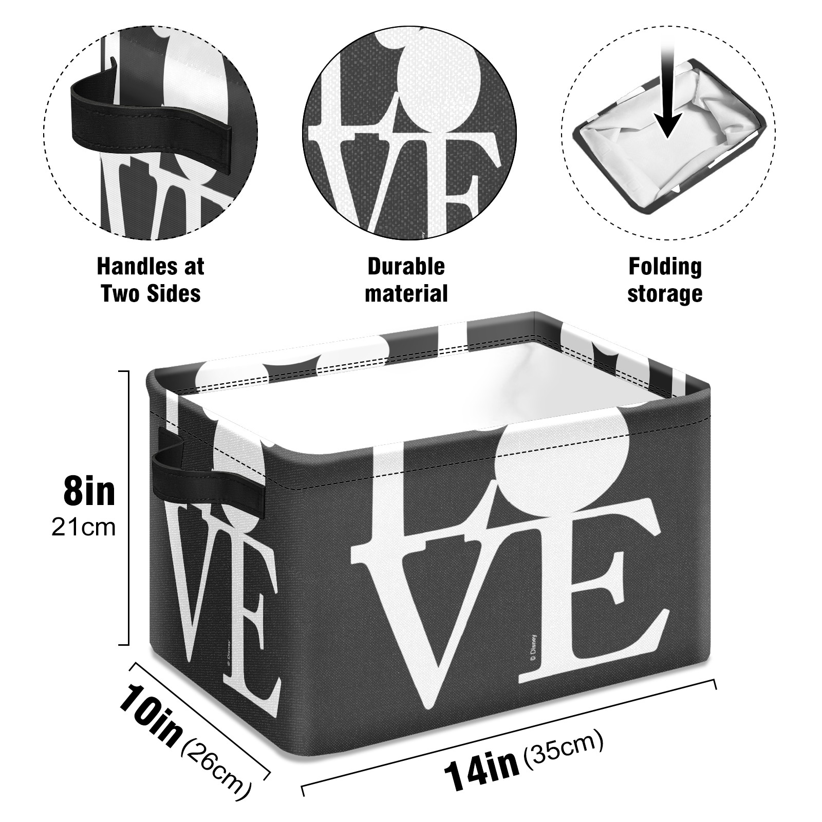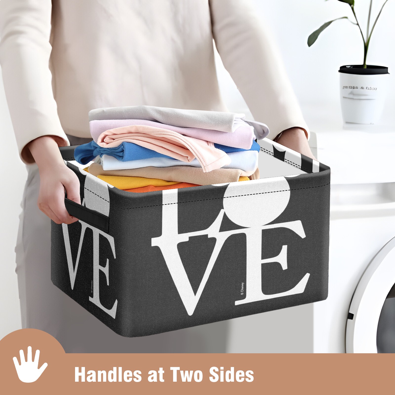 Foldable and Stackable Fabric Storage Basket for Home Organization with Handles, Decorative Closet Bins for Shelves and Laundry Storage( Mickey Mouse LOVE Valentine's Day Grey)