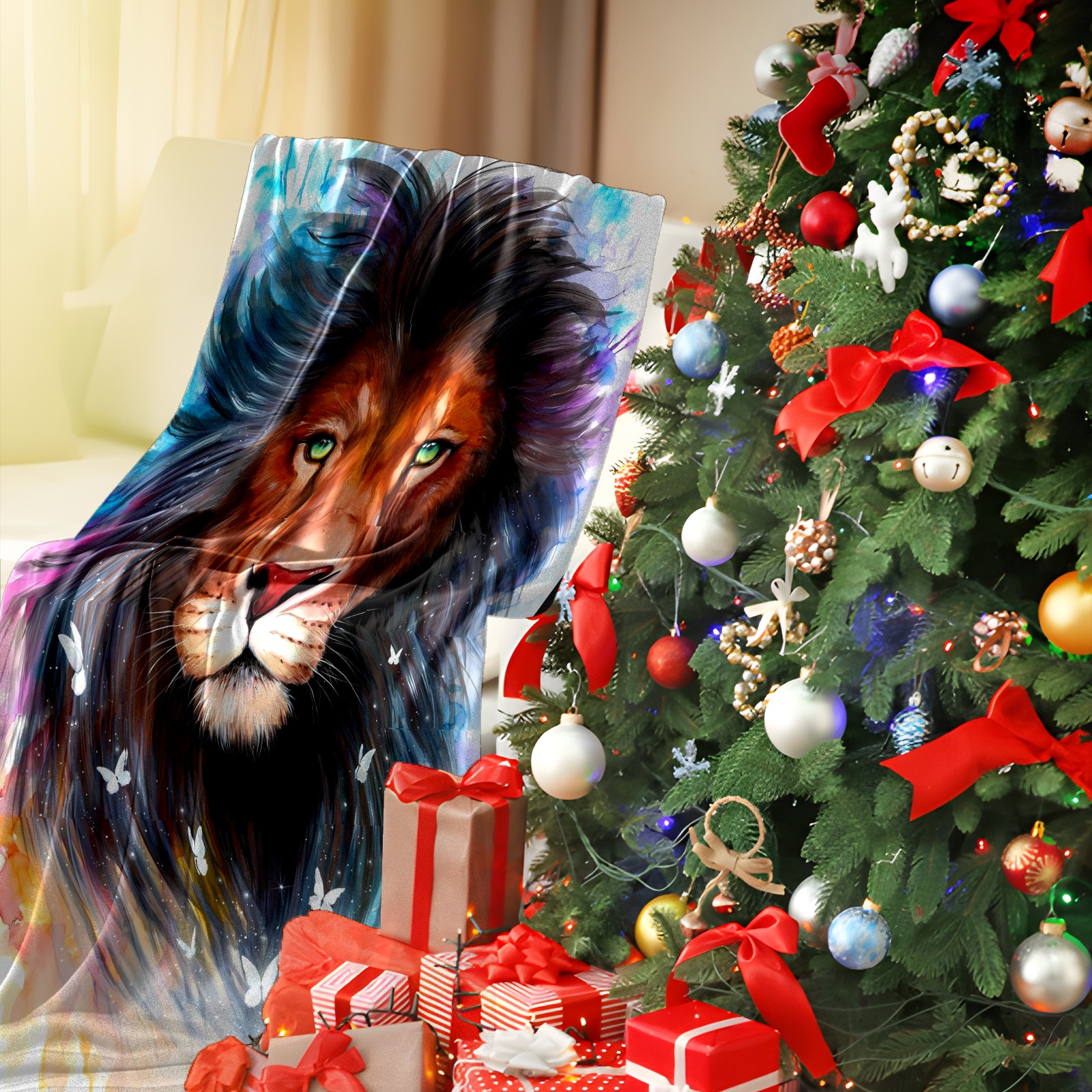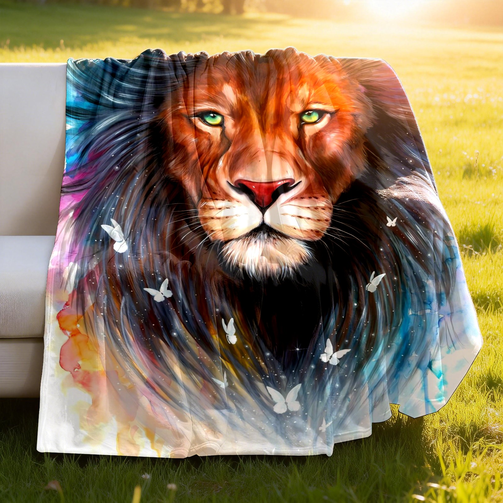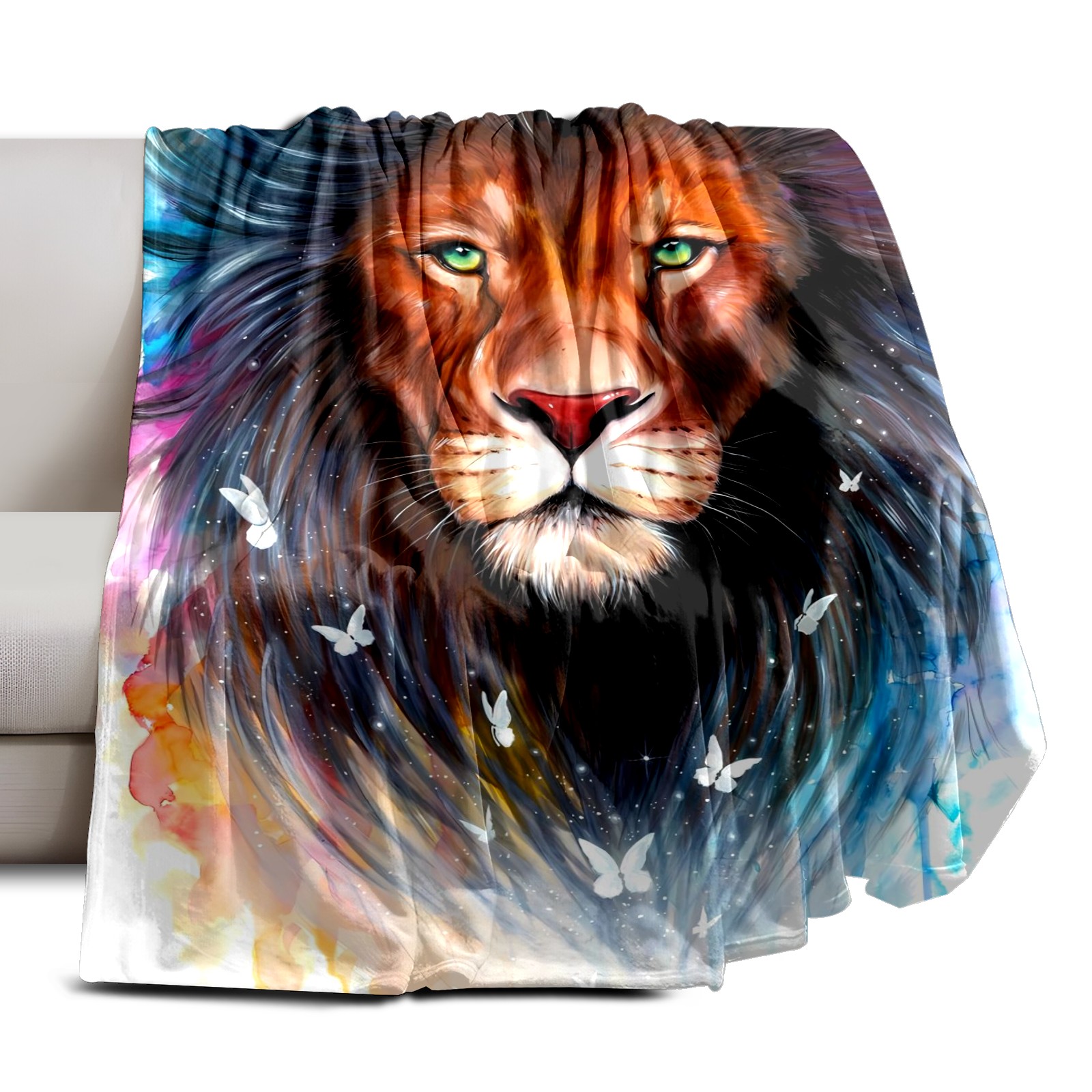 Counullo Flannel Throw Blanket, Ultra Soft Anti-Pilling Blanket for Couch & Bed, Lightweight Cozy Blanket for Travel, Home, Camping Gift - (30" x 39"), Lion (1)