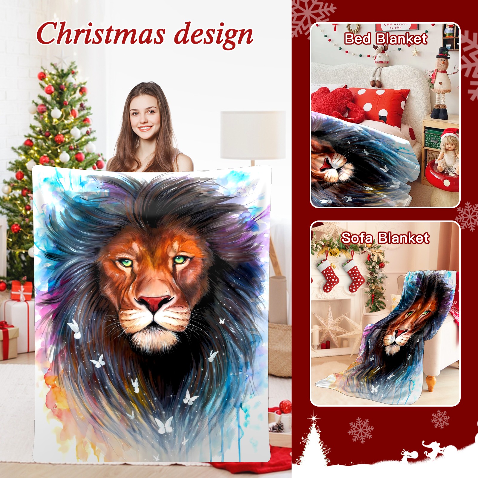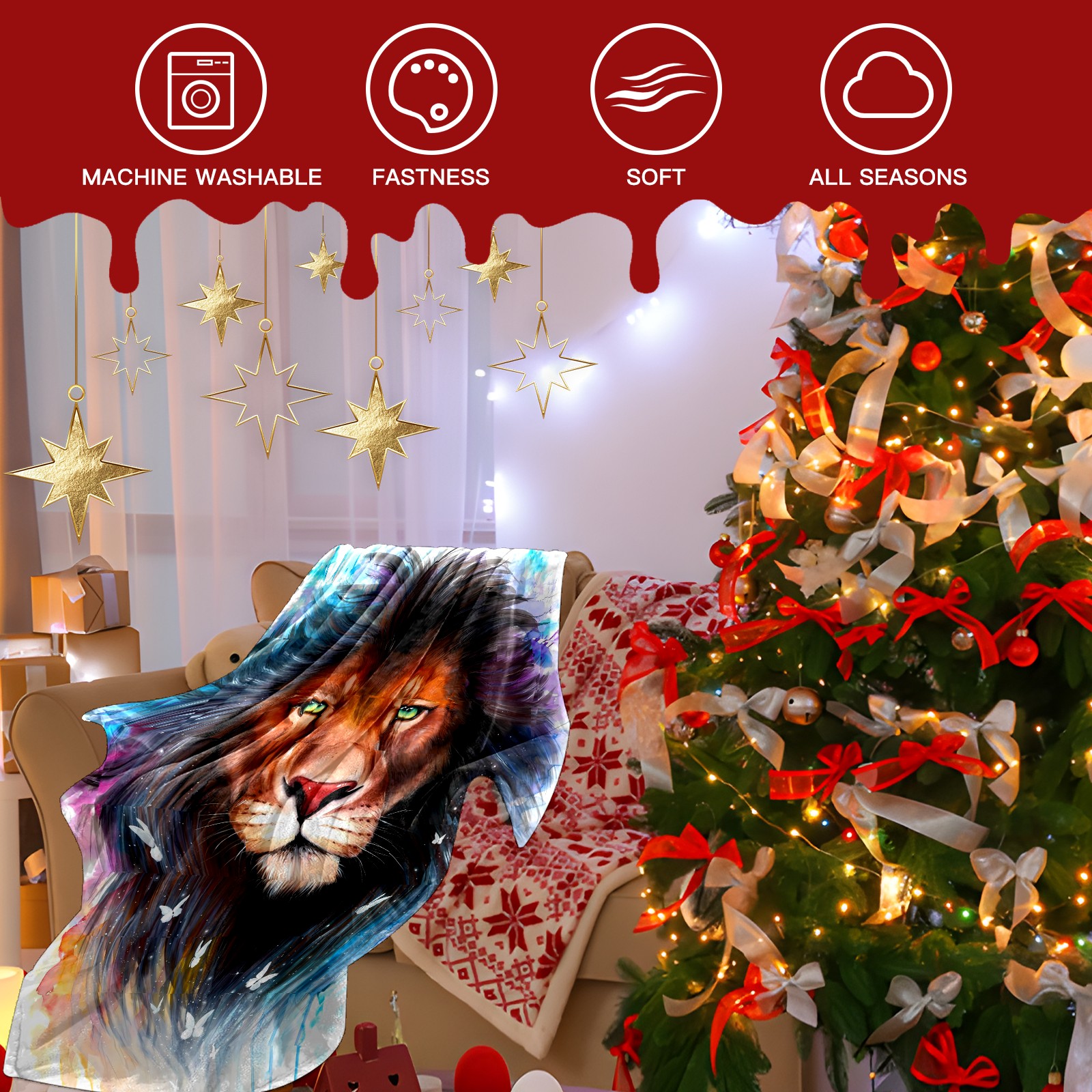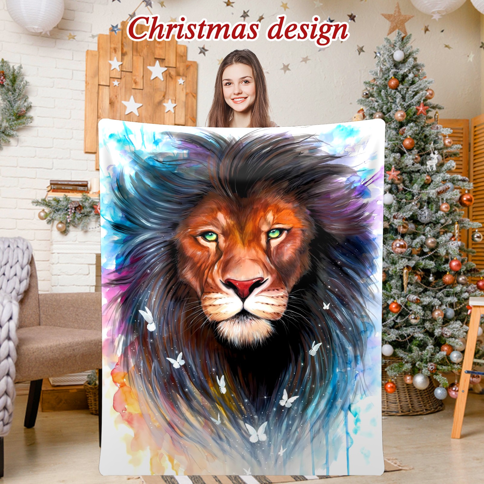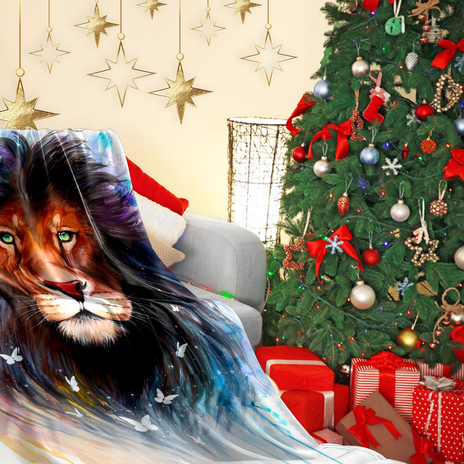 Counullo Flannel Throw Blanket, Ultra Soft Anti-Pilling Blanket for Couch & Bed, Lightweight Cozy Blanket for Travel, Home, Camping Gift - (30" x 39"), Lion (1)