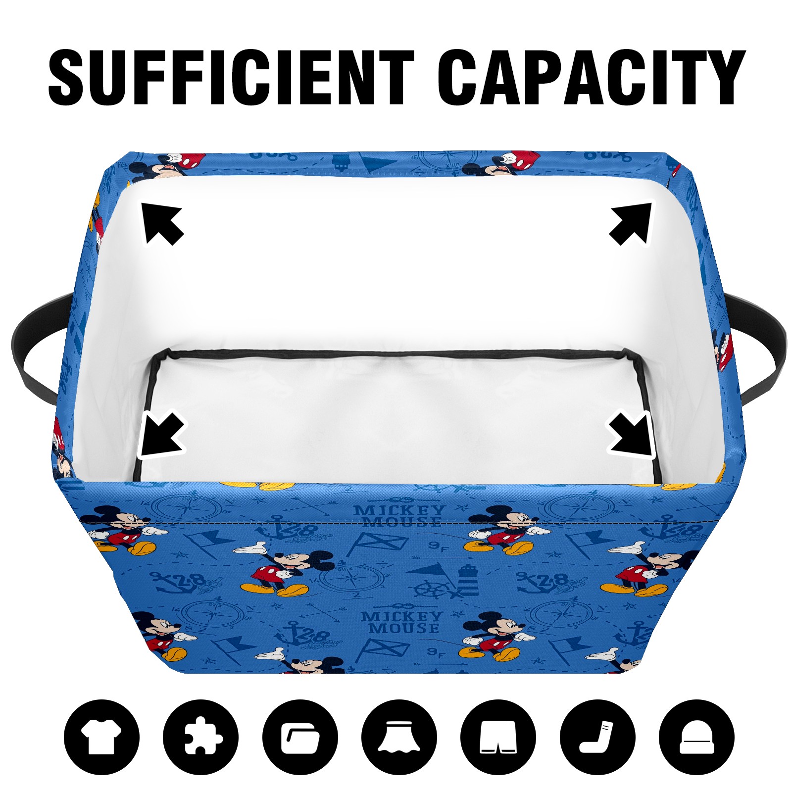 Foldable and Stackable Fabric Storage Basket for Home Organization with Handles, Decorative Closet Bins for Shelves and Laundry Storage( Mickey Mouse Captain)