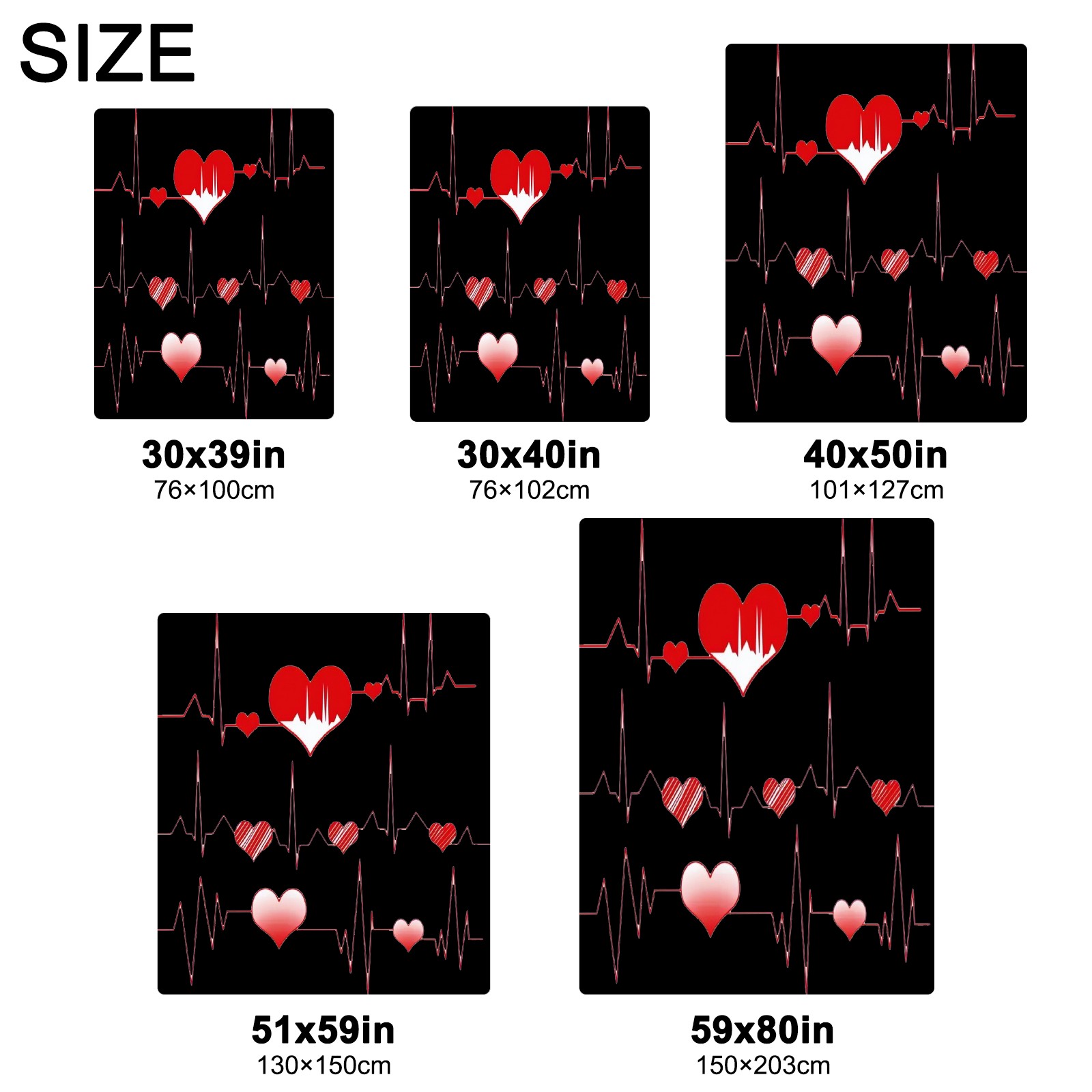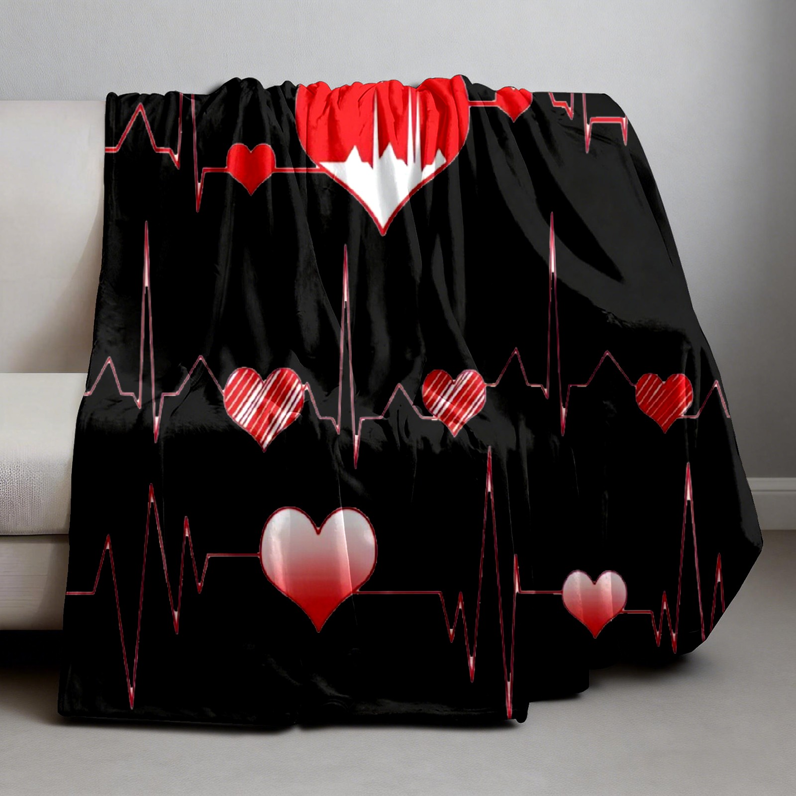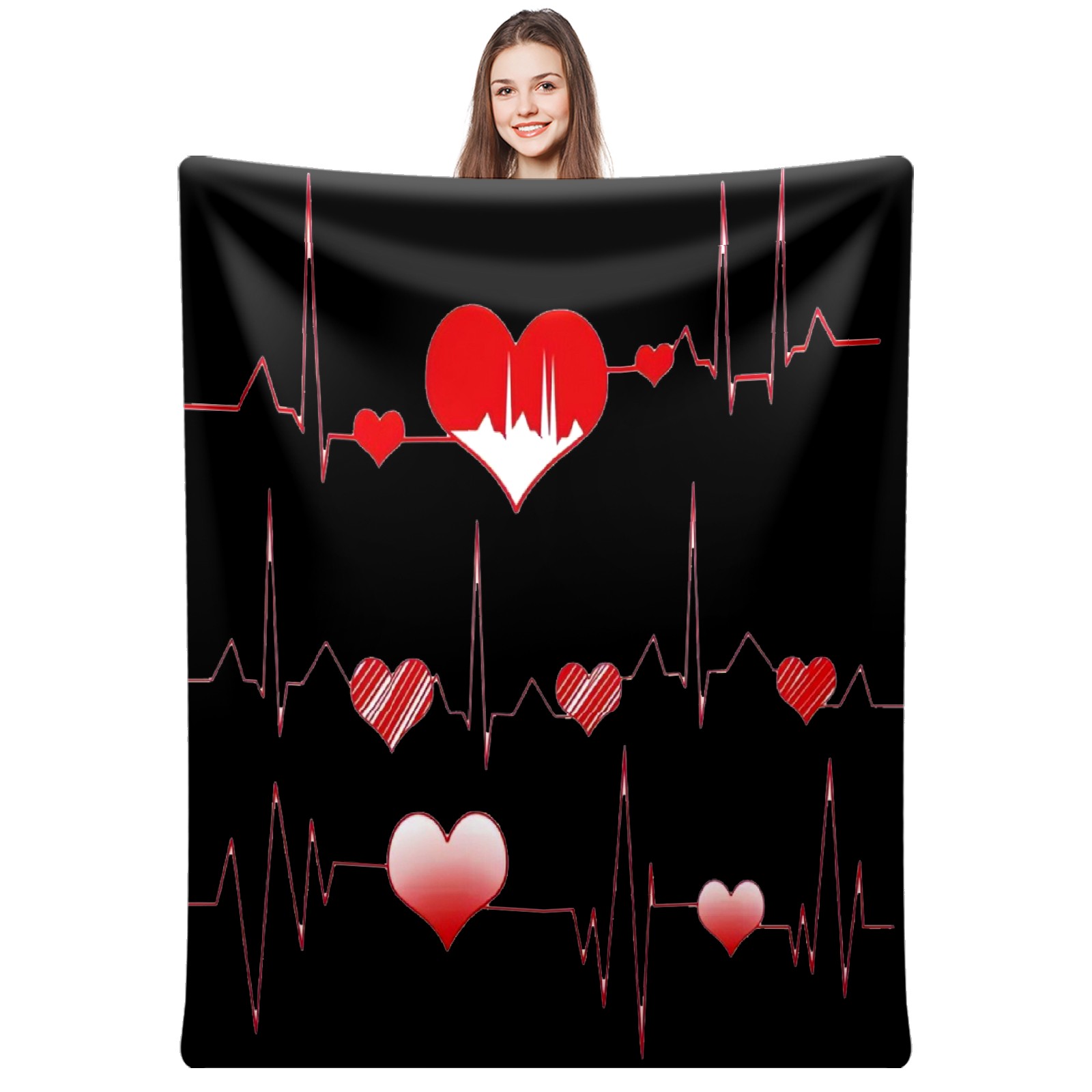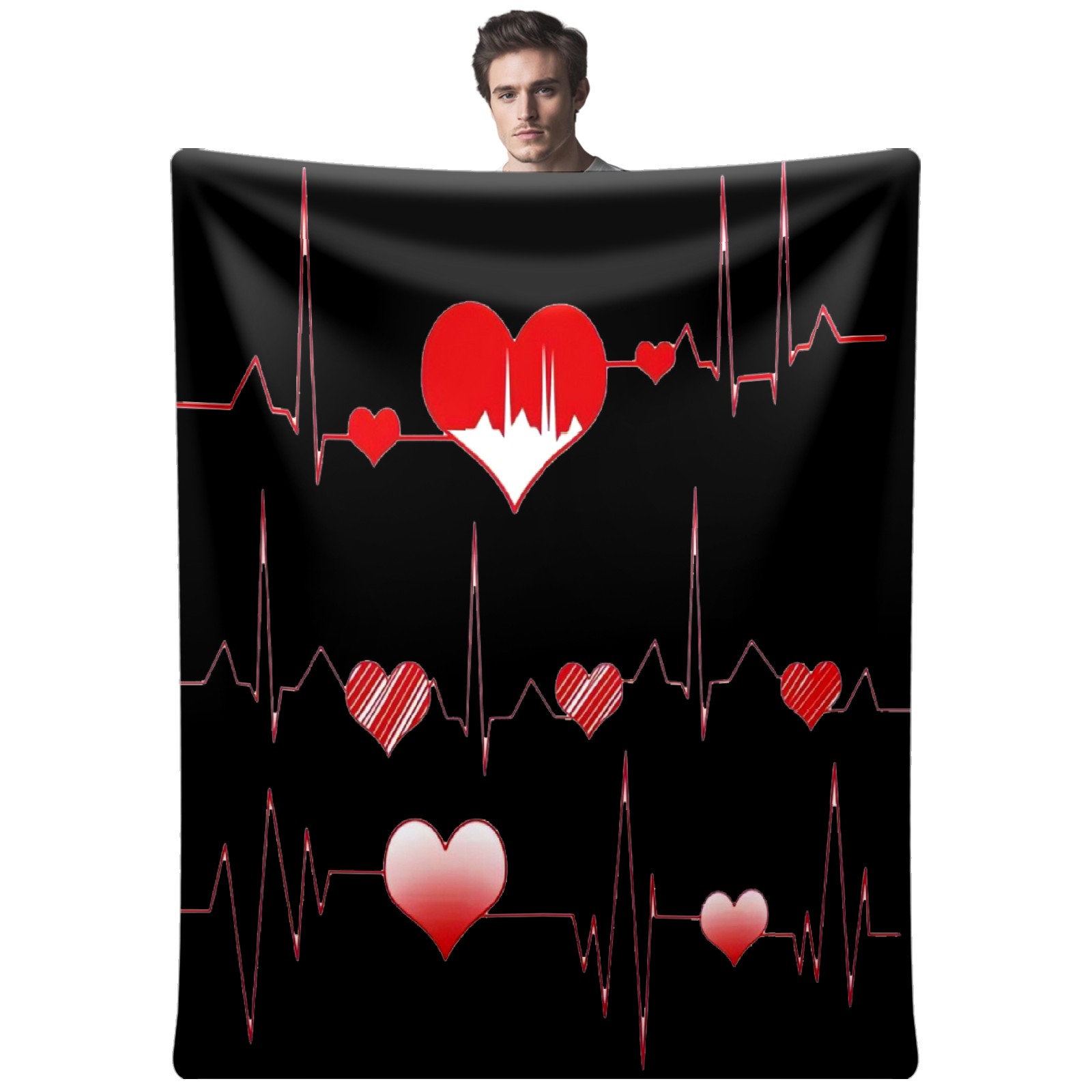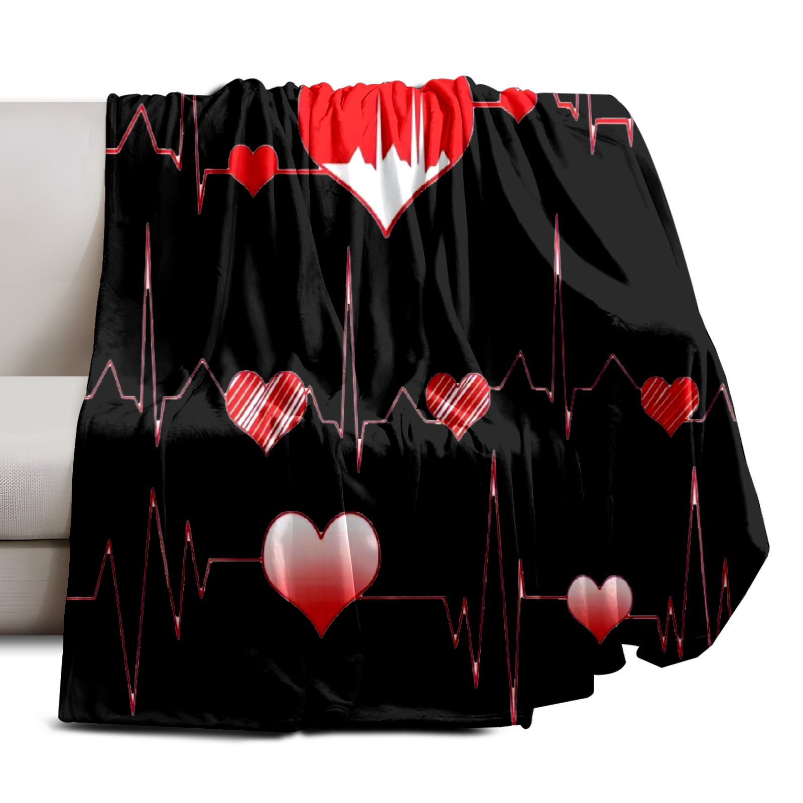 Counullo Flannel Throw Blanket, Ultra Soft Anti-Pilling Blanket for Couch & Bed, Lightweight Cozy Blanket for Travel, Home, Camping Gift - (30" x 39"), Red Heartbeated ECG Curve Black Background