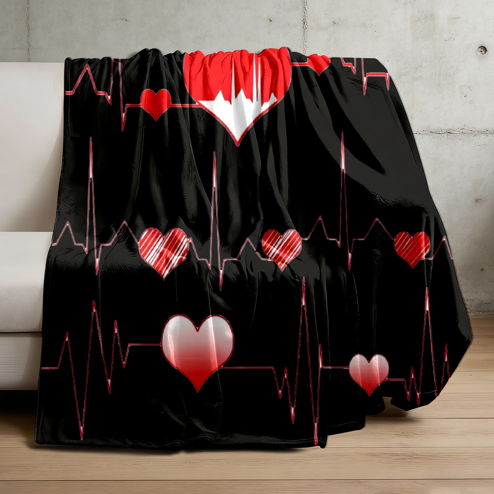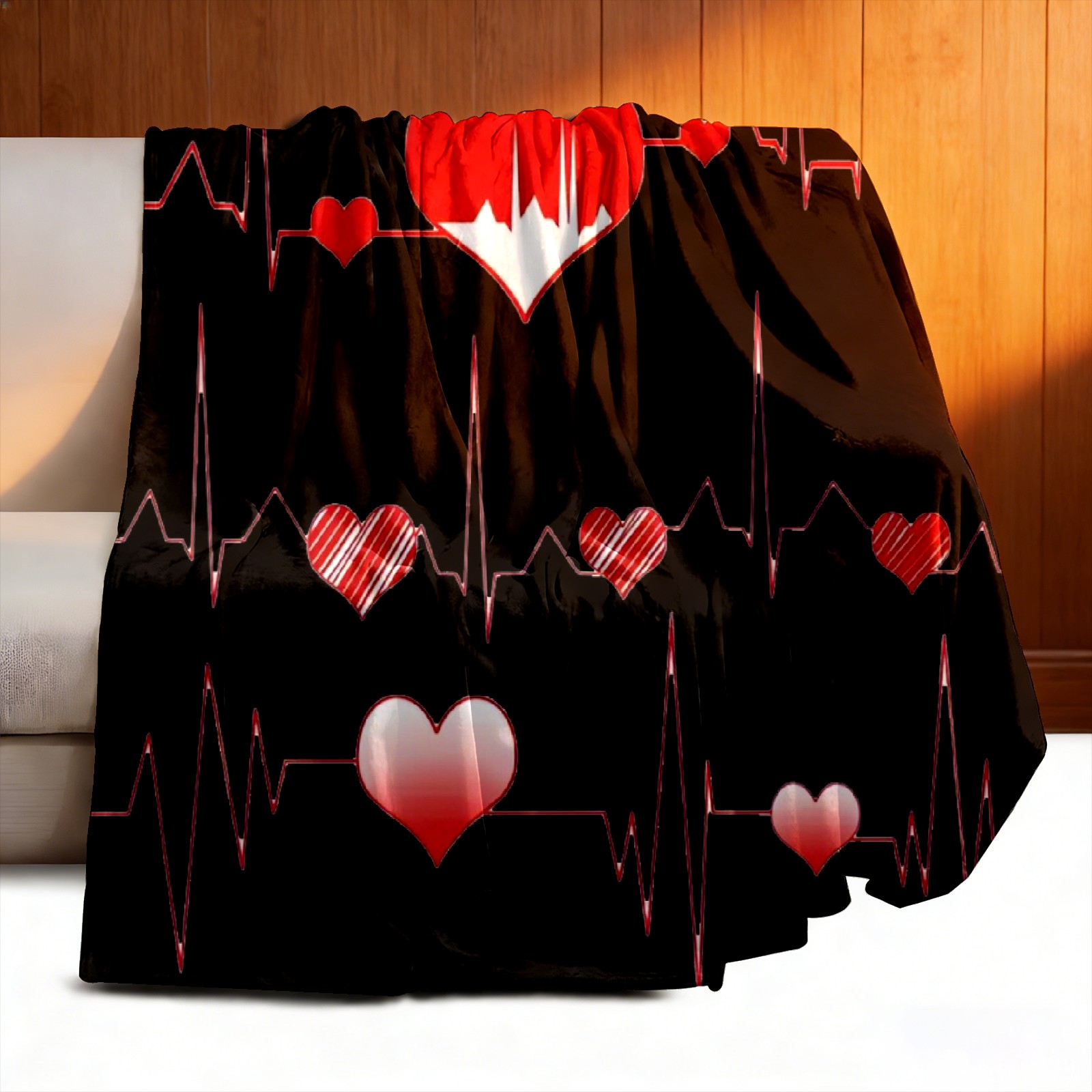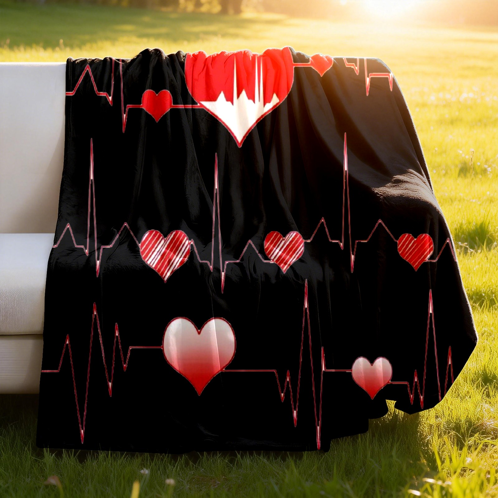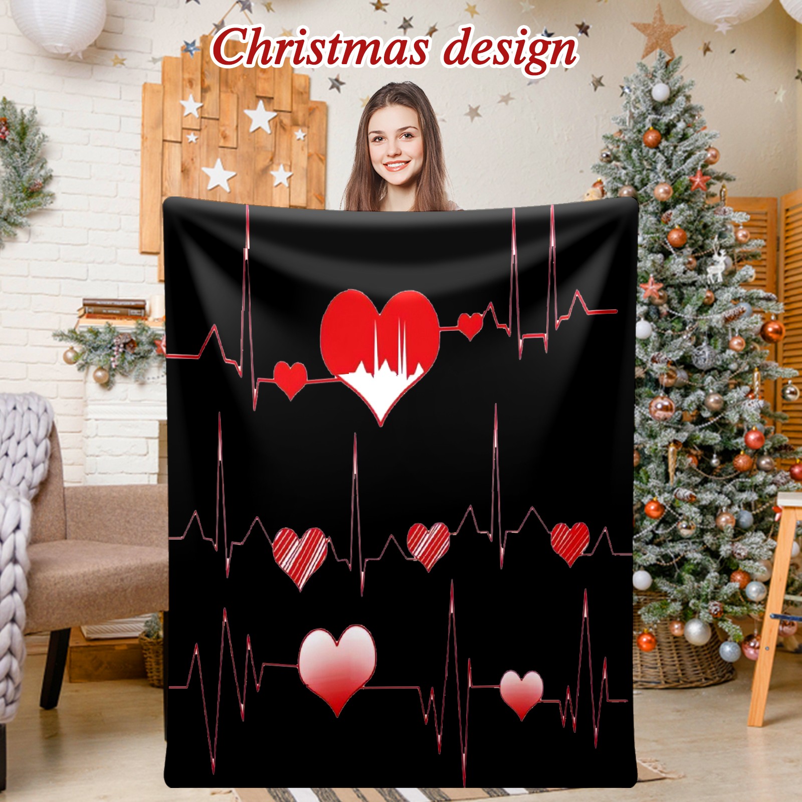 Counullo Flannel Throw Blanket, Ultra Soft Anti-Pilling Blanket for Couch & Bed, Lightweight Cozy Blanket for Travel, Home, Camping Gift - (30" x 39"), Red Heartbeated ECG Curve Black Background