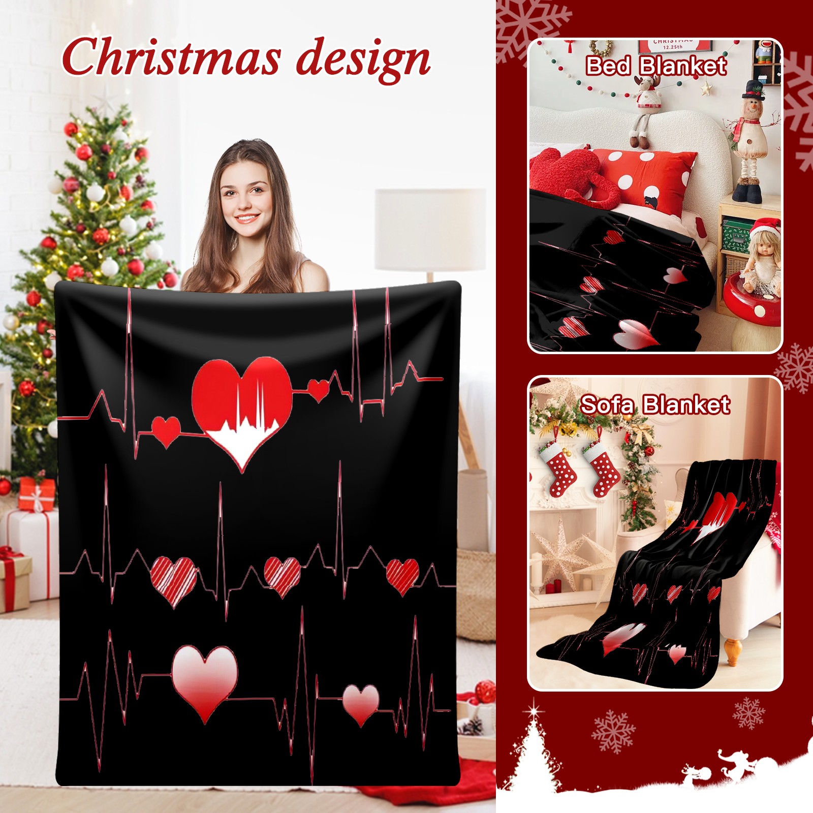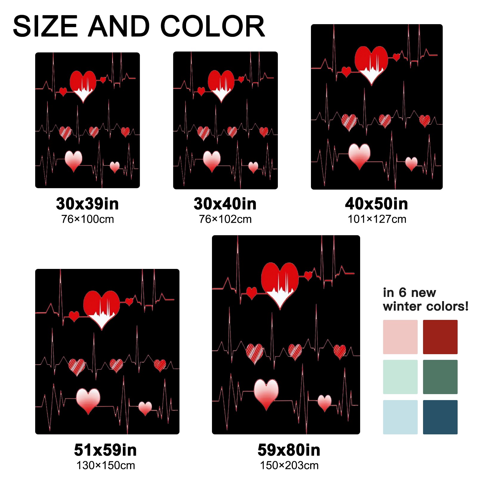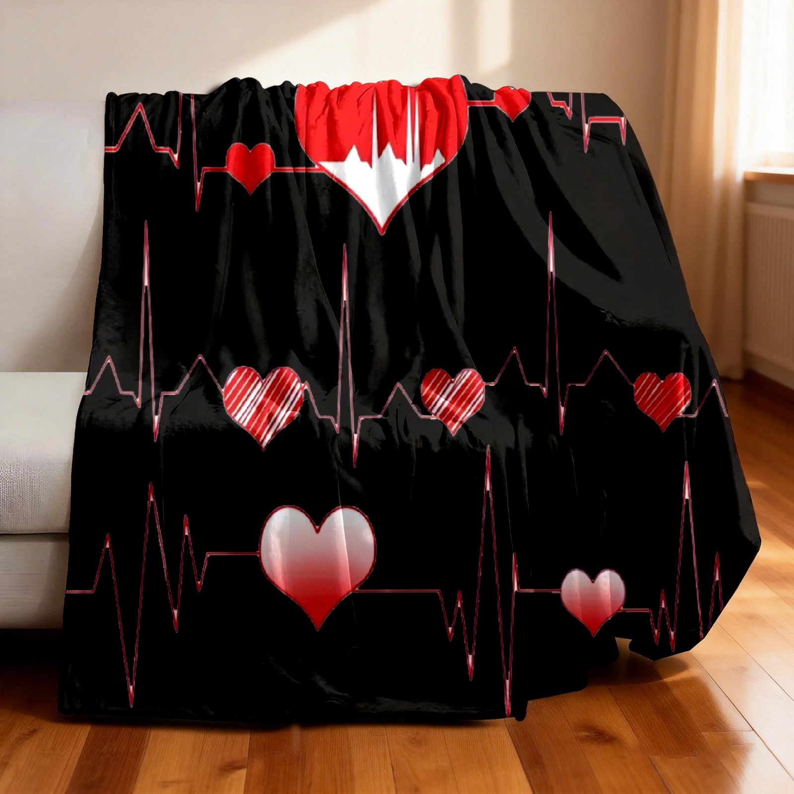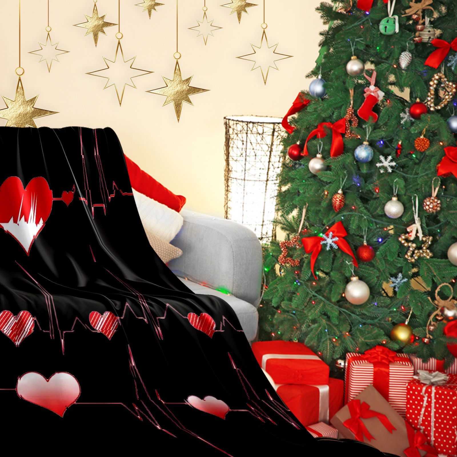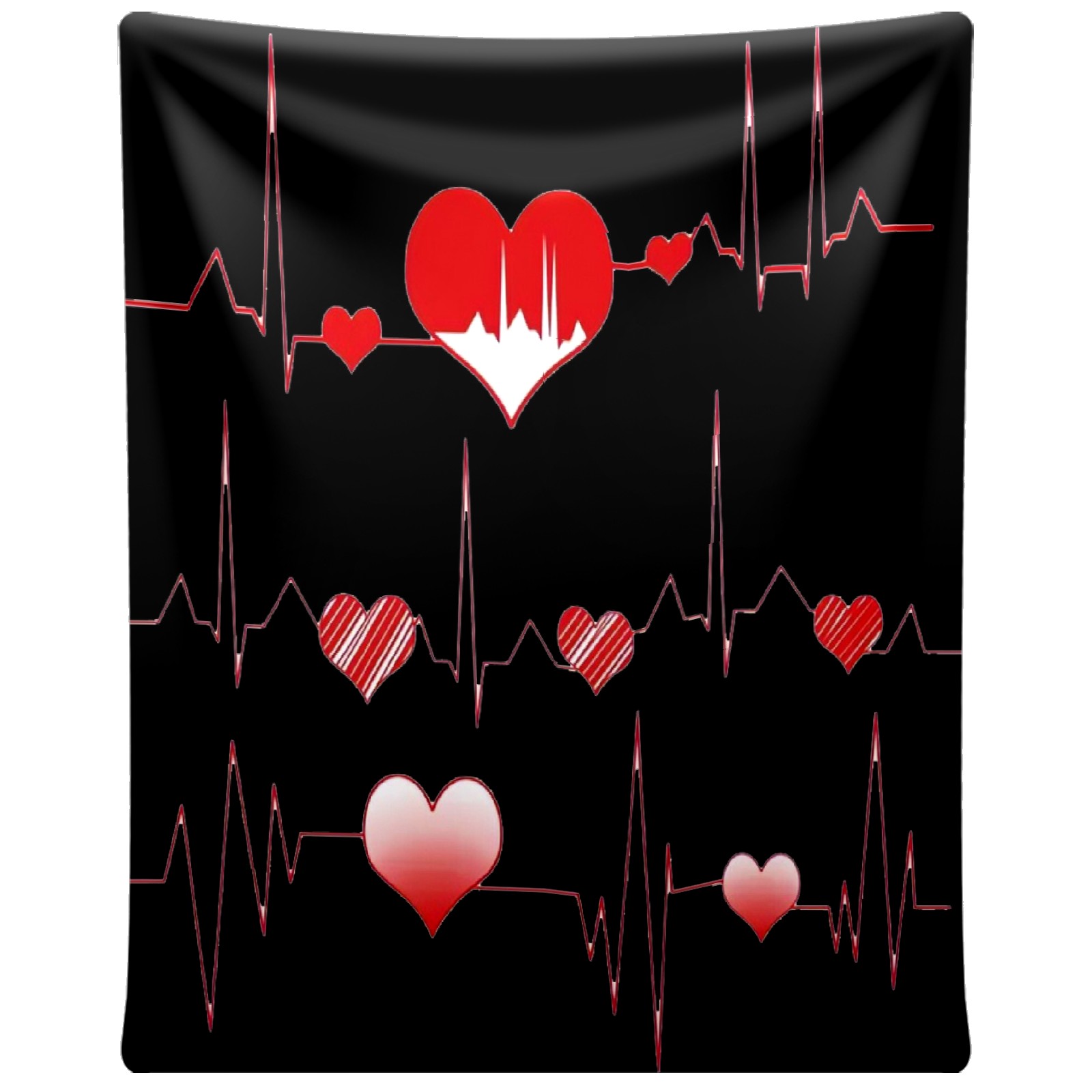 Counullo Flannel Throw Blanket, Ultra Soft Anti-Pilling Blanket for Couch & Bed, Lightweight Cozy Blanket for Travel, Home, Camping Gift - (30" x 39"), Red Heartbeated ECG Curve Black Background