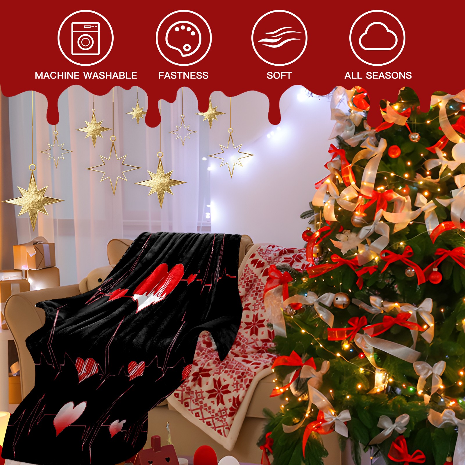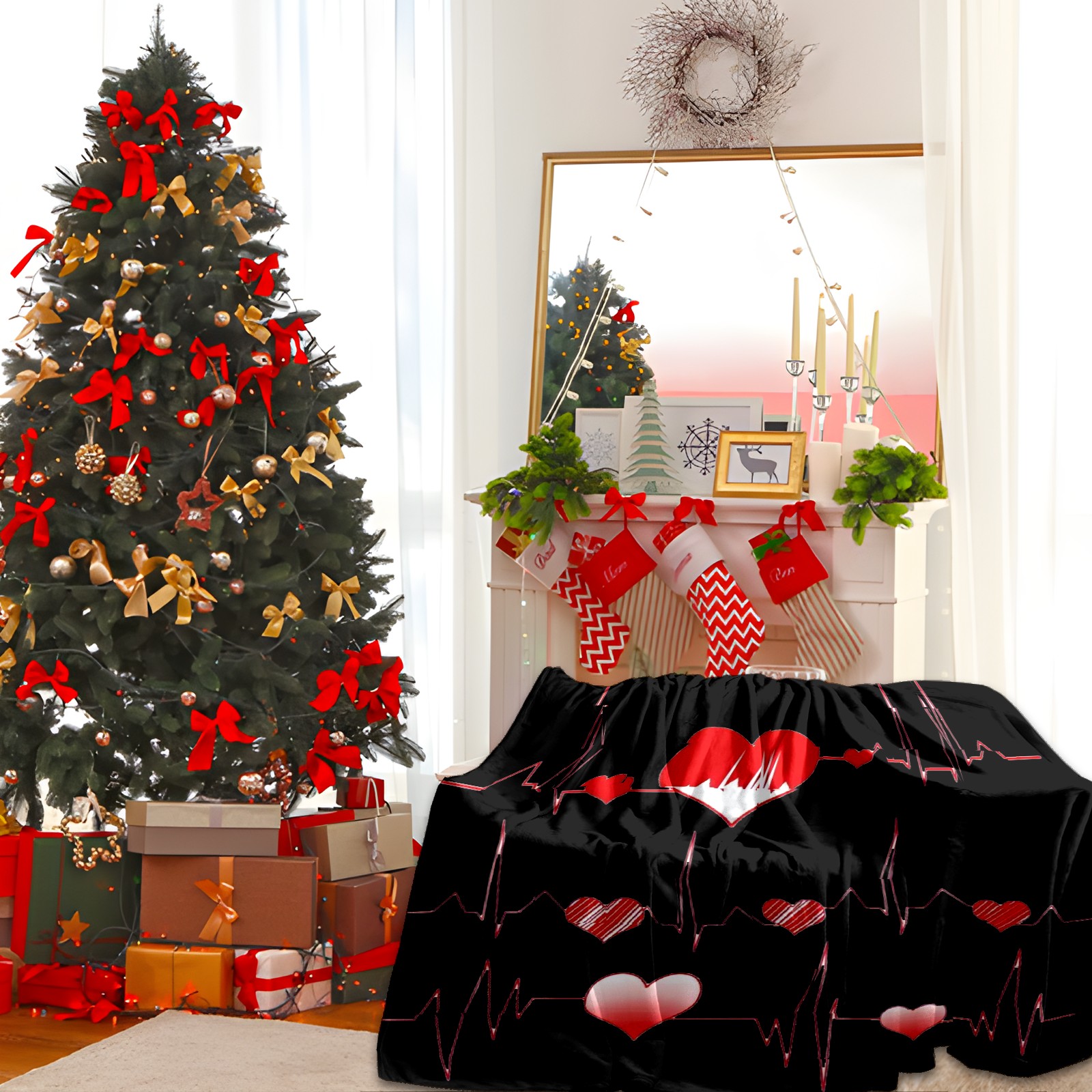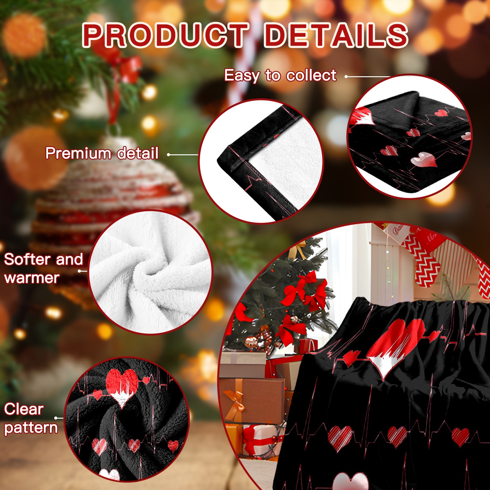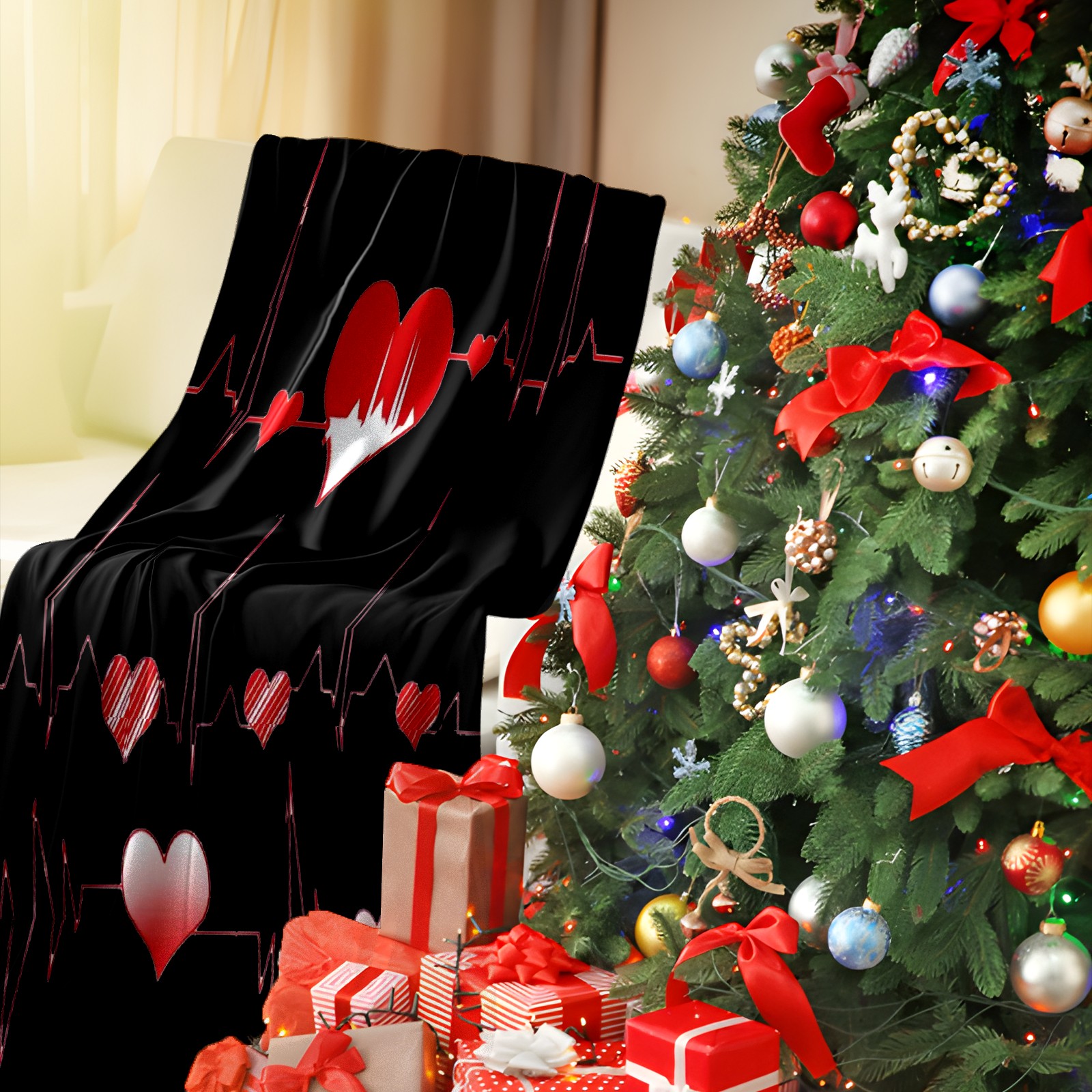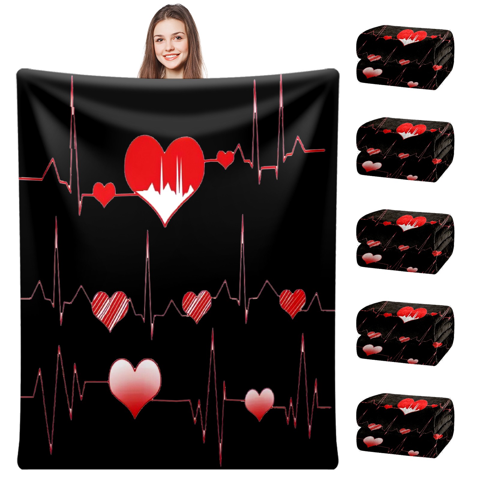 Counullo Flannel Throw Blanket, Ultra Soft Anti-Pilling Blanket for Couch & Bed, Lightweight Cozy Blanket for Travel, Home, Camping Gift - (30" x 39"), Red Heartbeated ECG Curve Black Background