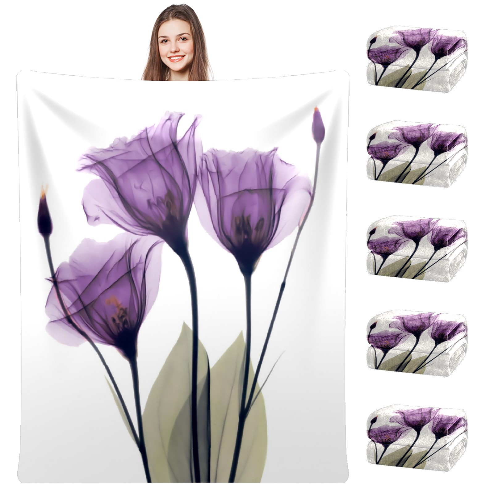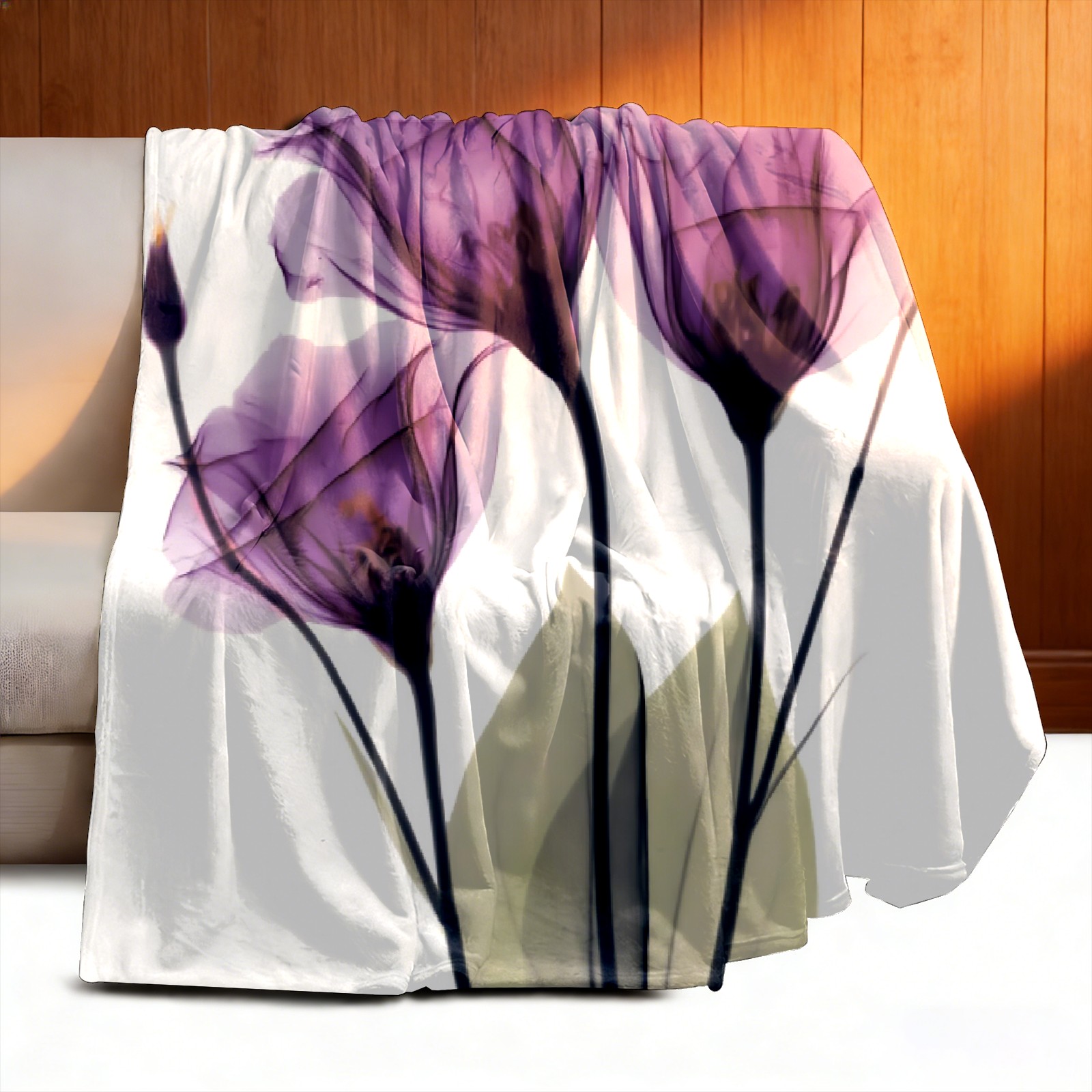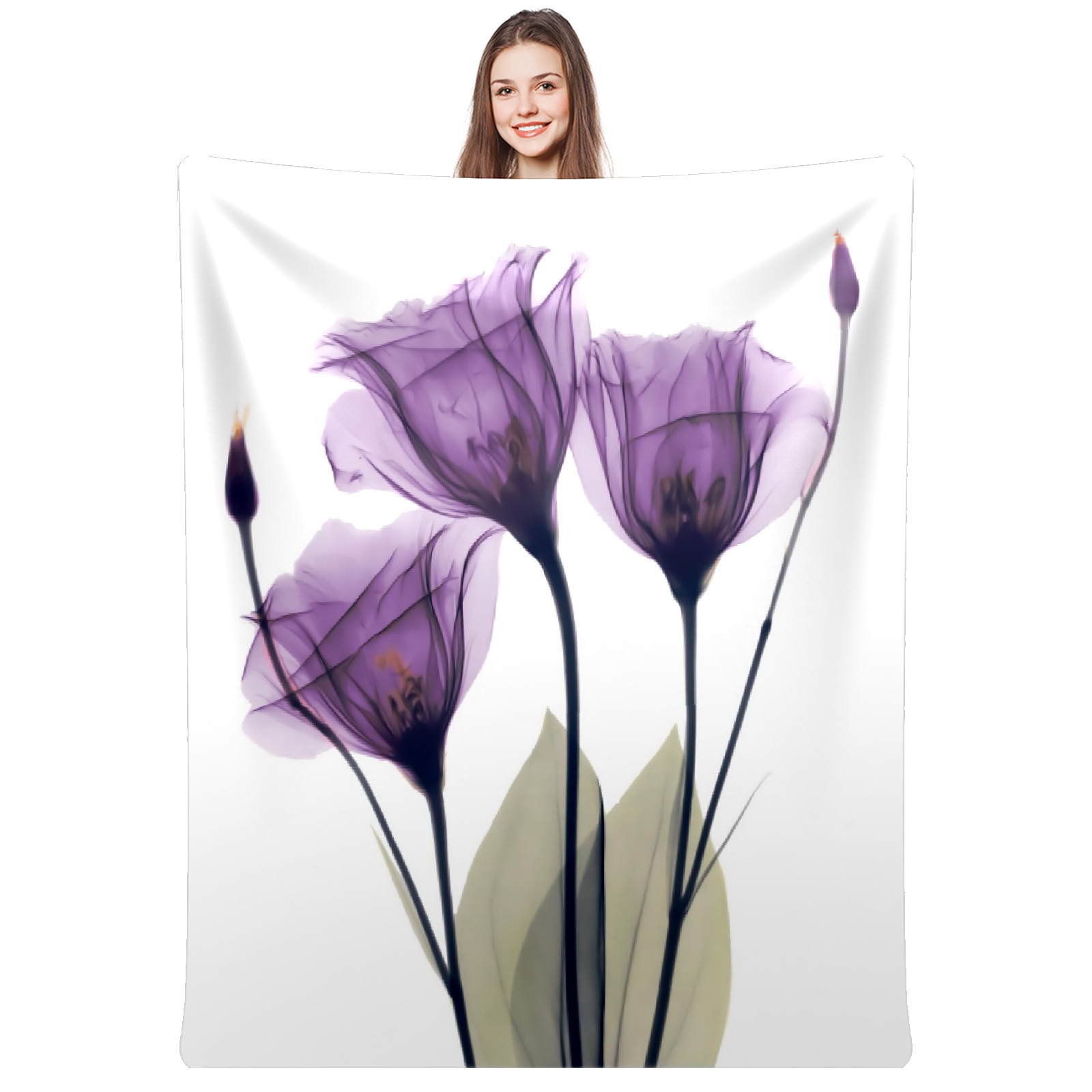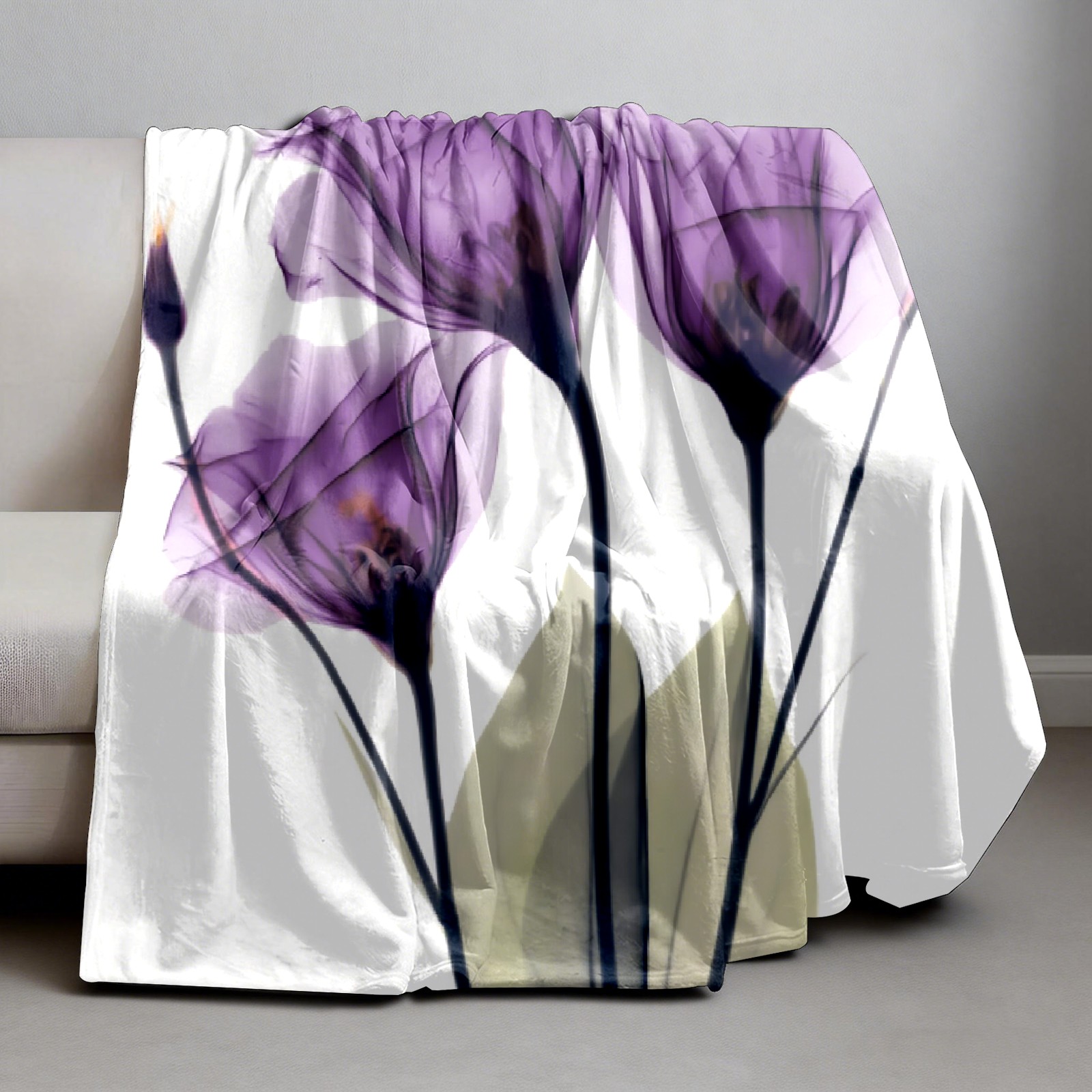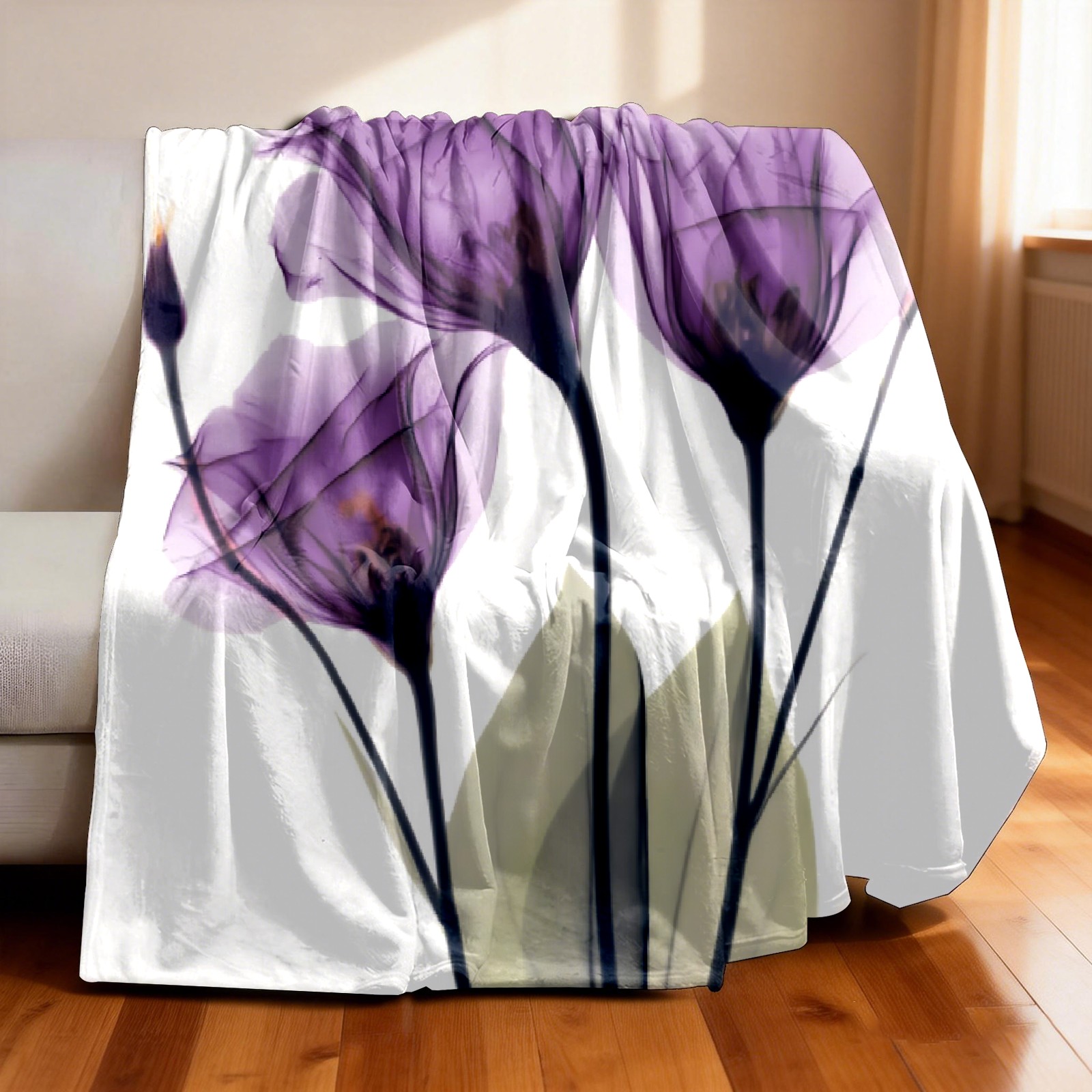 Counullo Flannel Throw Blanket, Ultra Soft Anti-Pilling Blanket for Couch & Bed, Lightweight Cozy Blanket for Travel, Home, Camping Gift - (30" x 39"), Elegant Tulip Purple Hope Flowers
