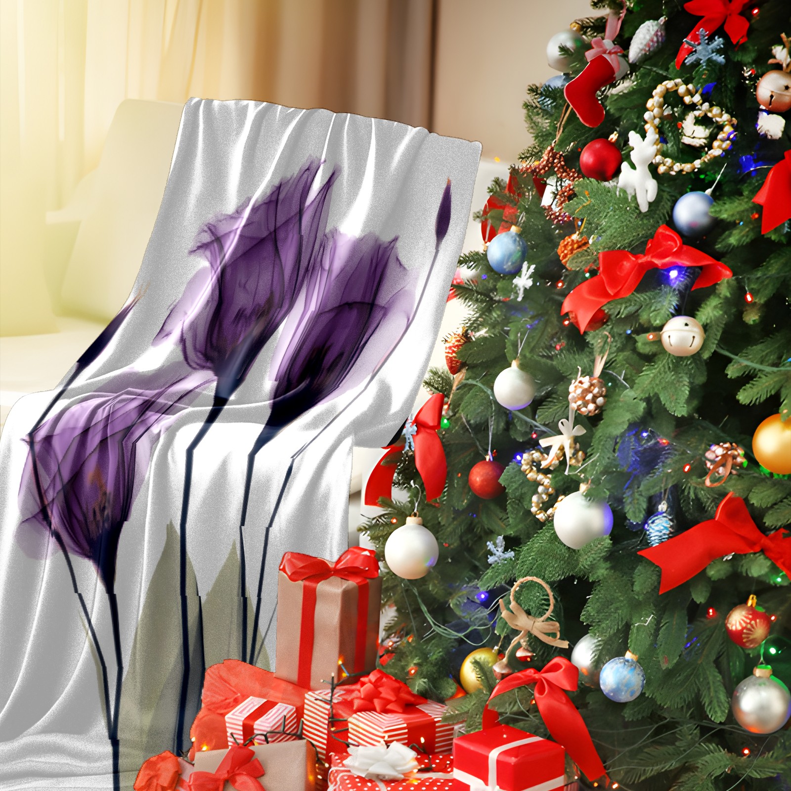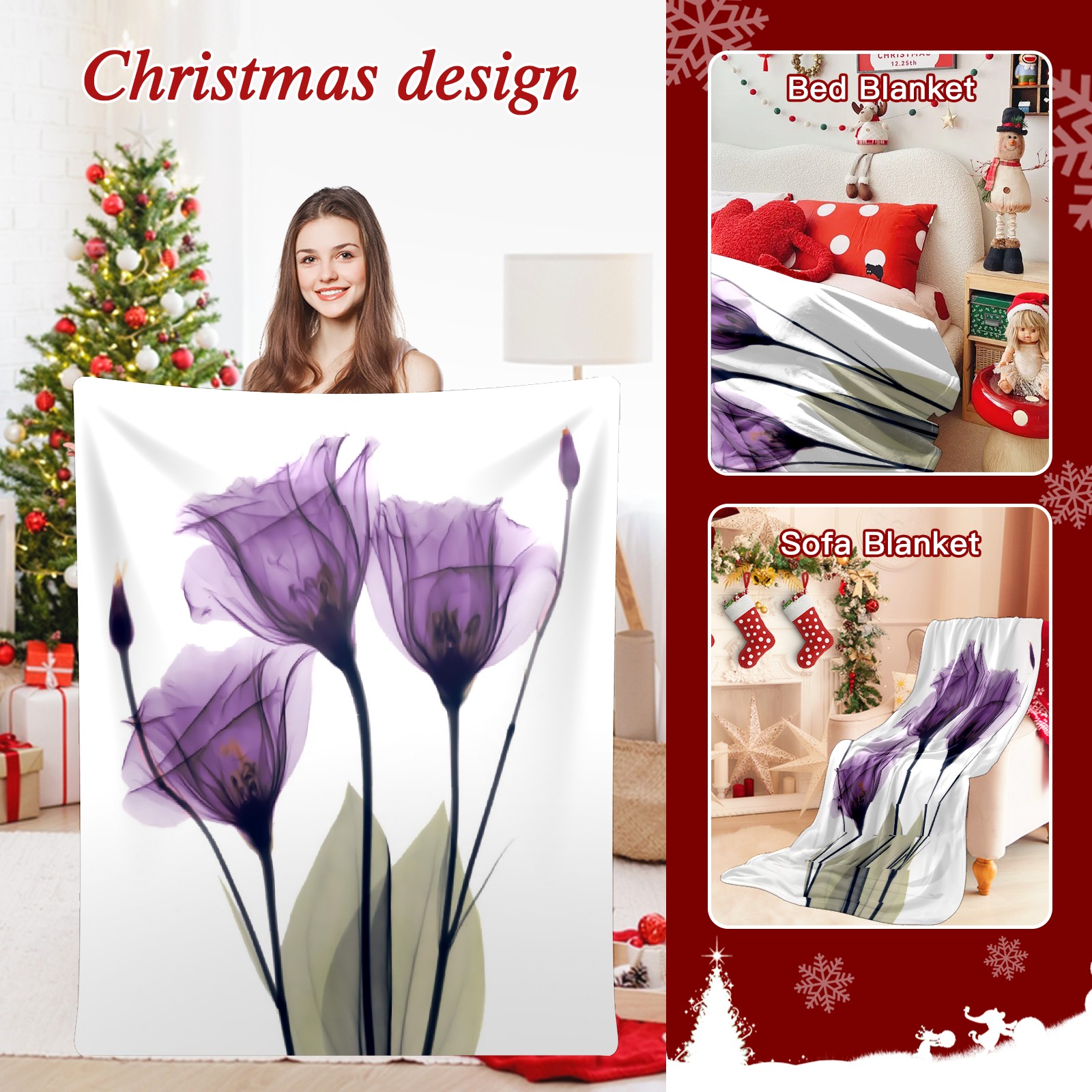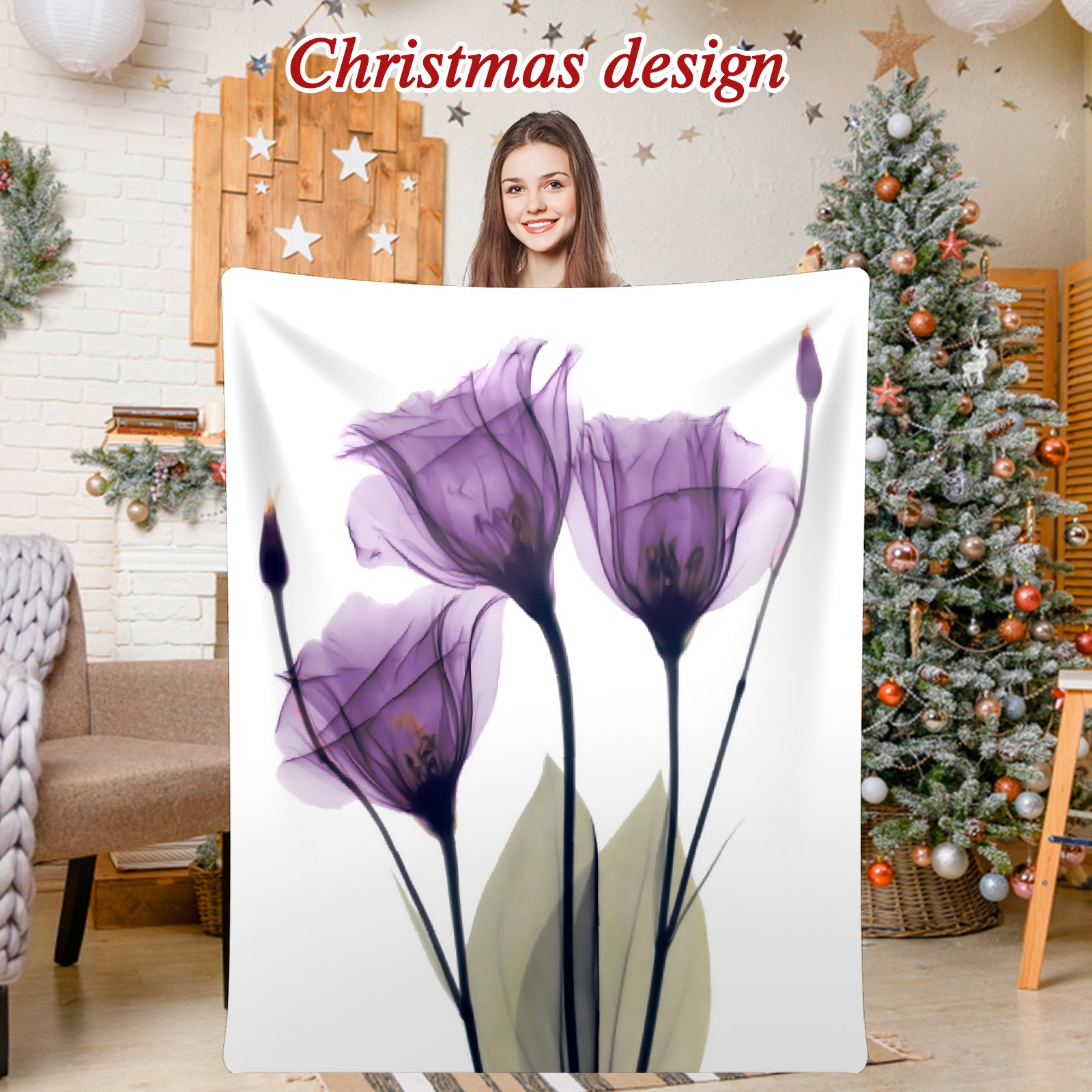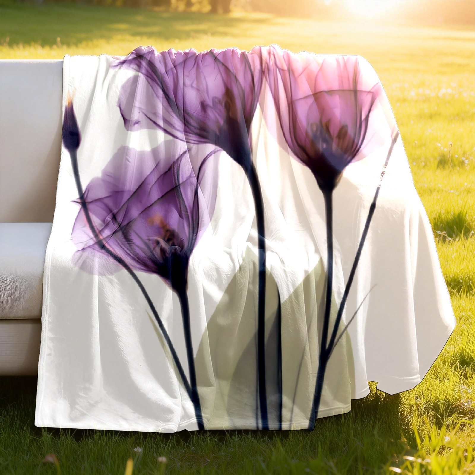 Counullo Flannel Throw Blanket, Ultra Soft Anti-Pilling Blanket for Couch & Bed, Lightweight Cozy Blanket for Travel, Home, Camping Gift - (30" x 39"), Elegant Tulip Purple Hope Flowers