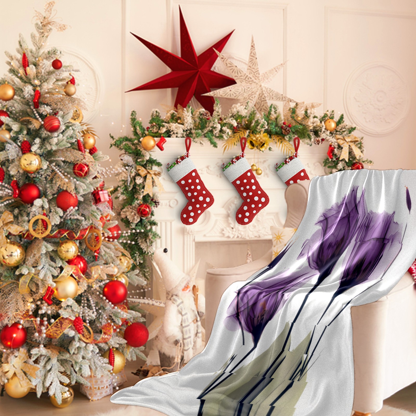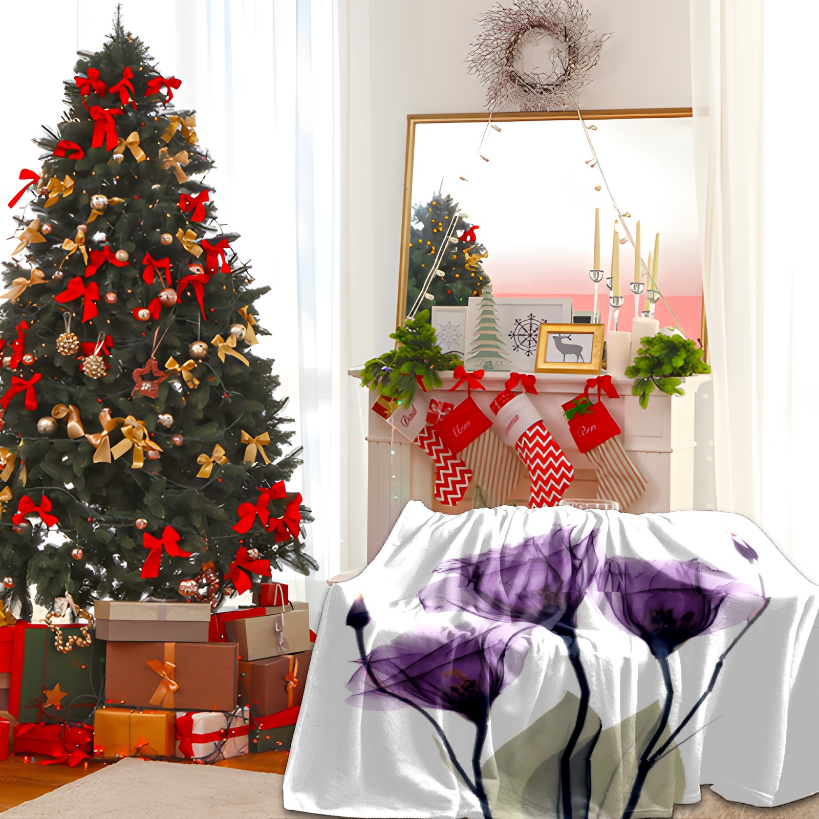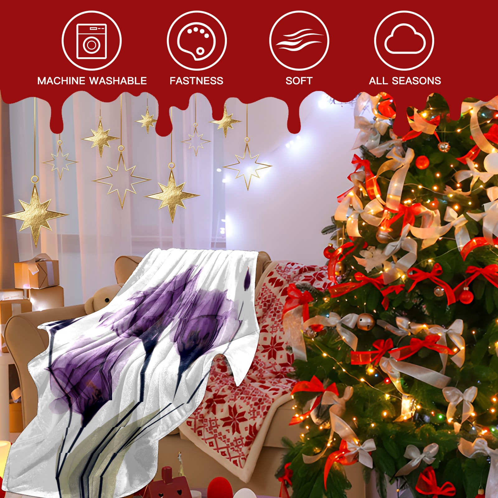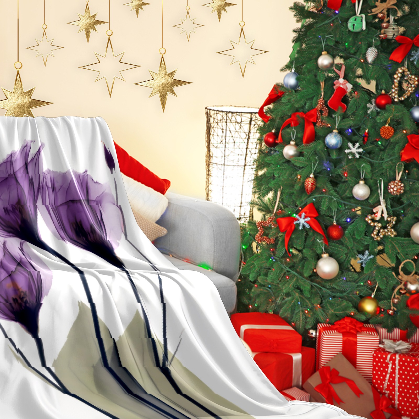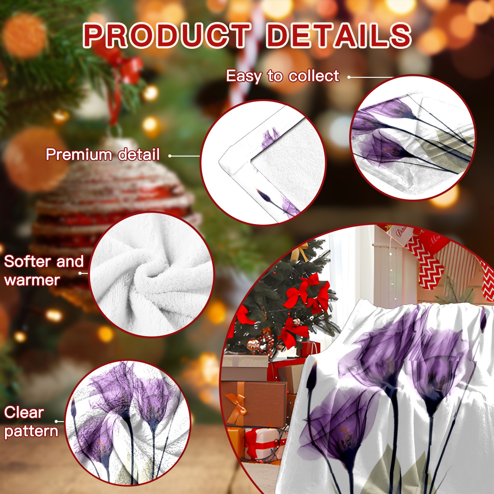 Counullo Flannel Throw Blanket, Ultra Soft Anti-Pilling Blanket for Couch & Bed, Lightweight Cozy Blanket for Travel, Home, Camping Gift - (30" x 39"), Elegant Tulip Purple Hope Flowers