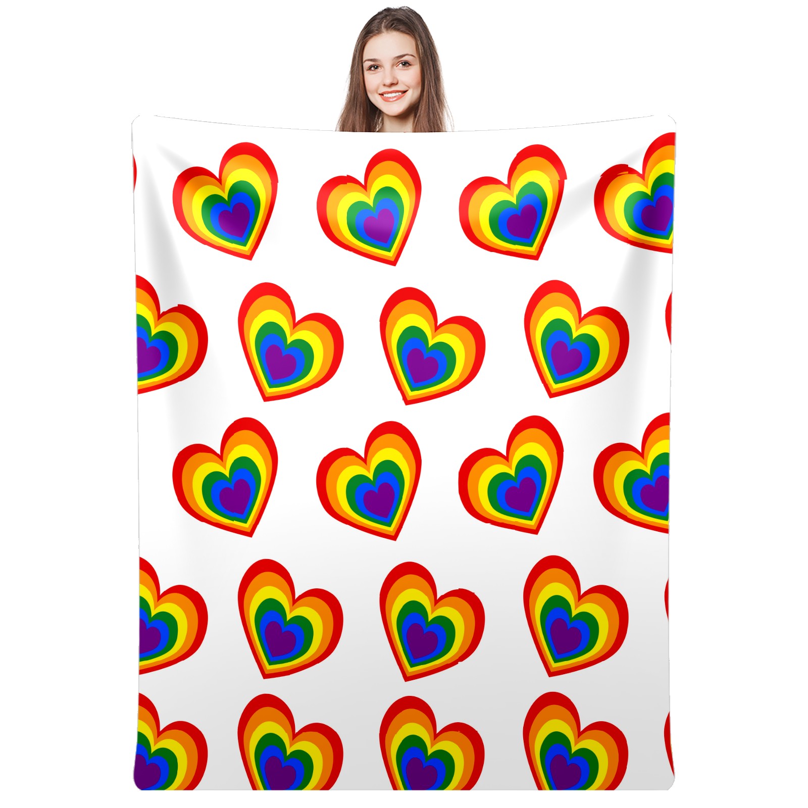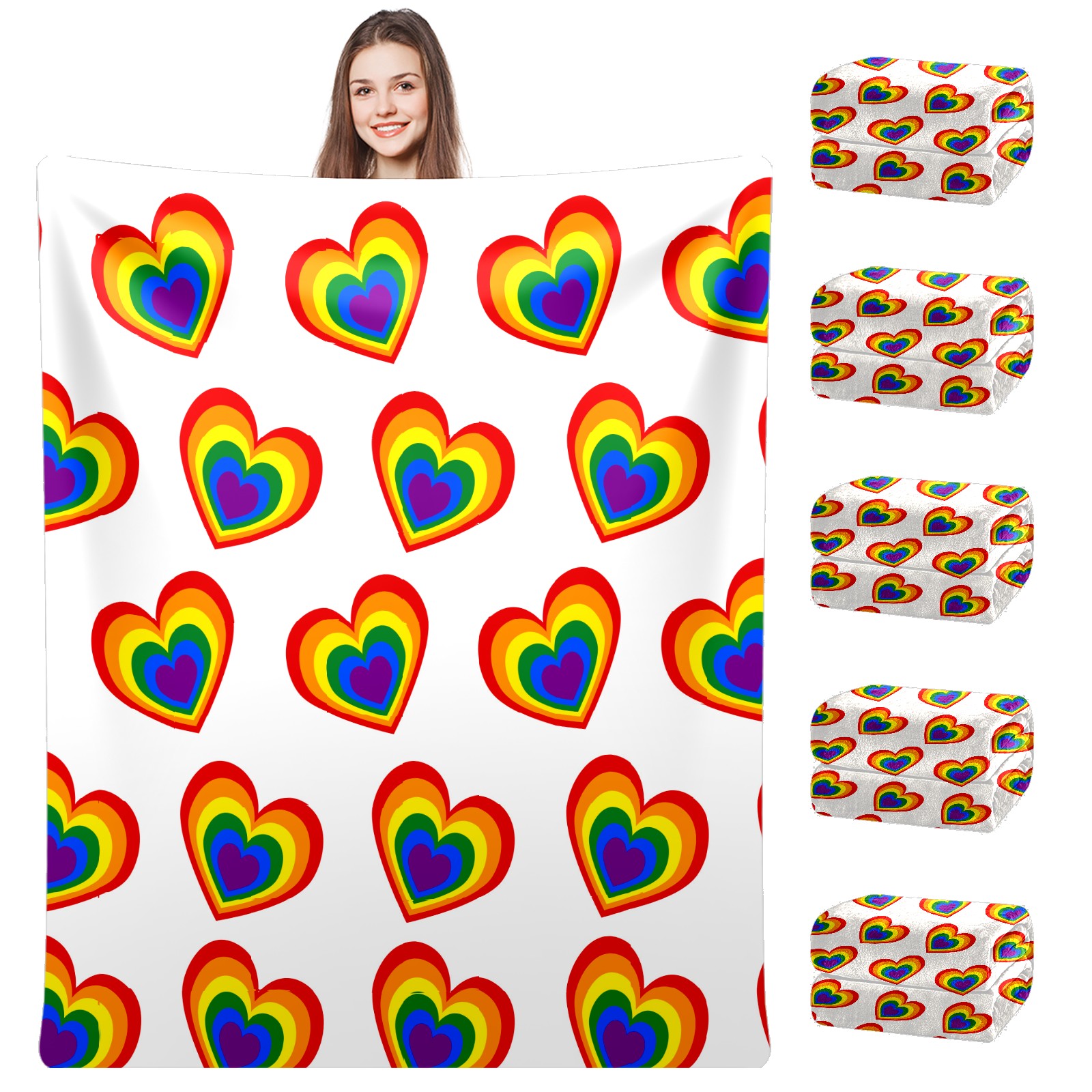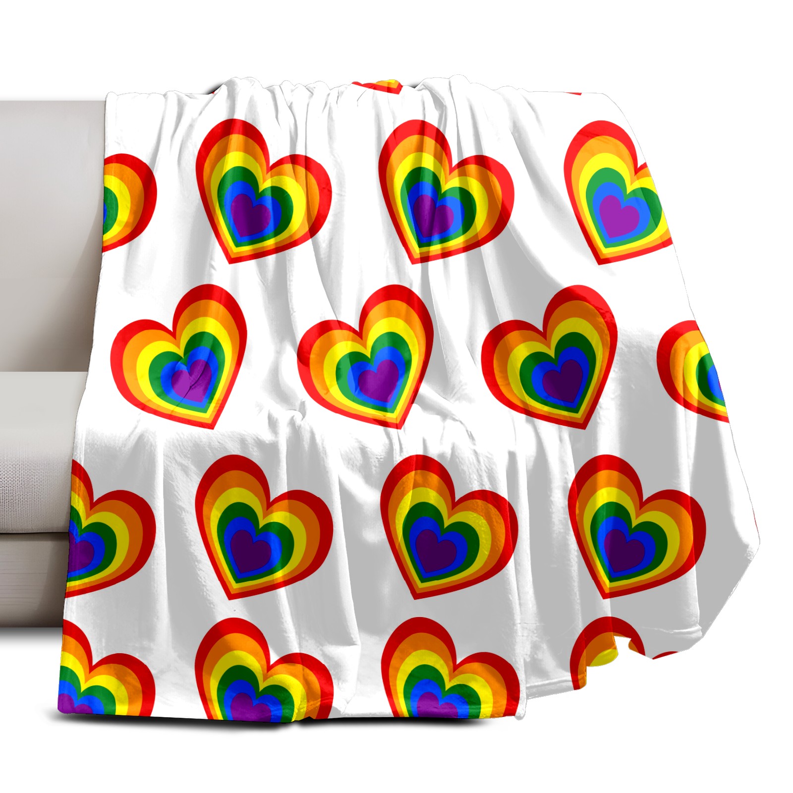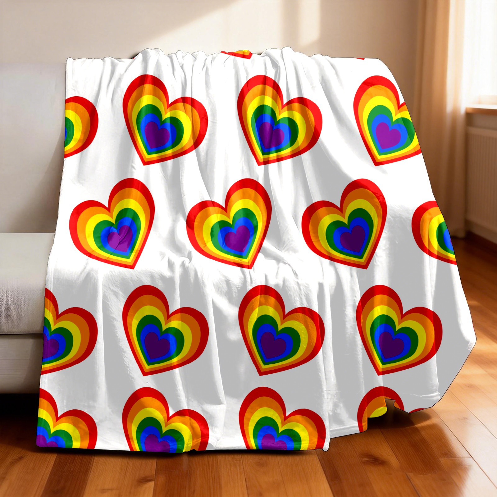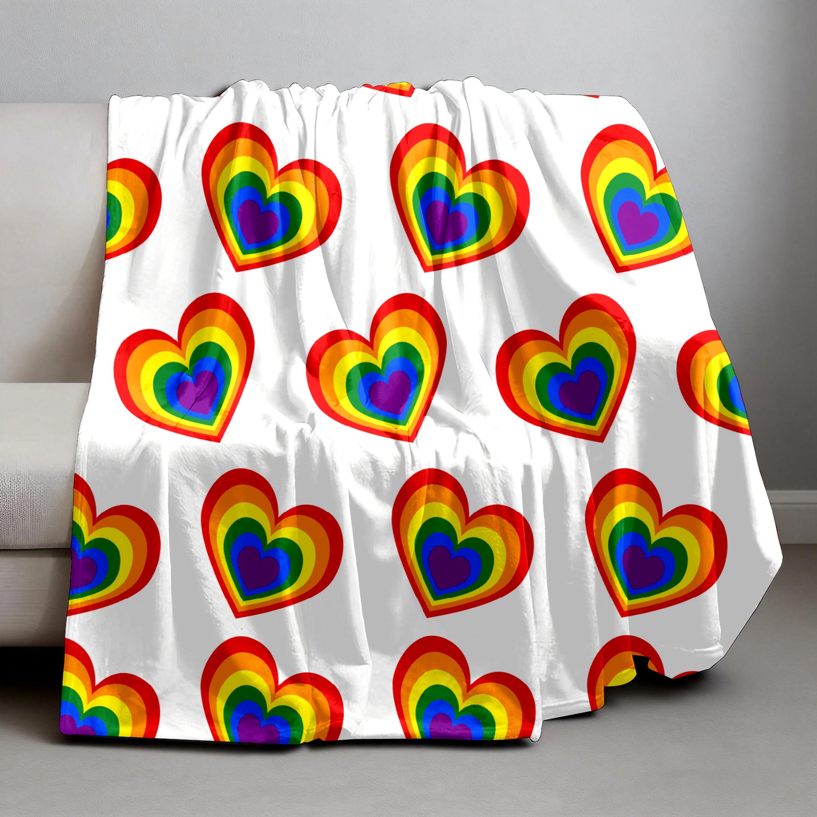 Counullo Flannel Throw Blanket, Ultra Soft Anti-Pilling Blanket for Couch & Bed, Lightweight Cozy Blanket for Travel, Home, Camping Gift - (30" x 39"), Valentine's Day Rainbow Heart
