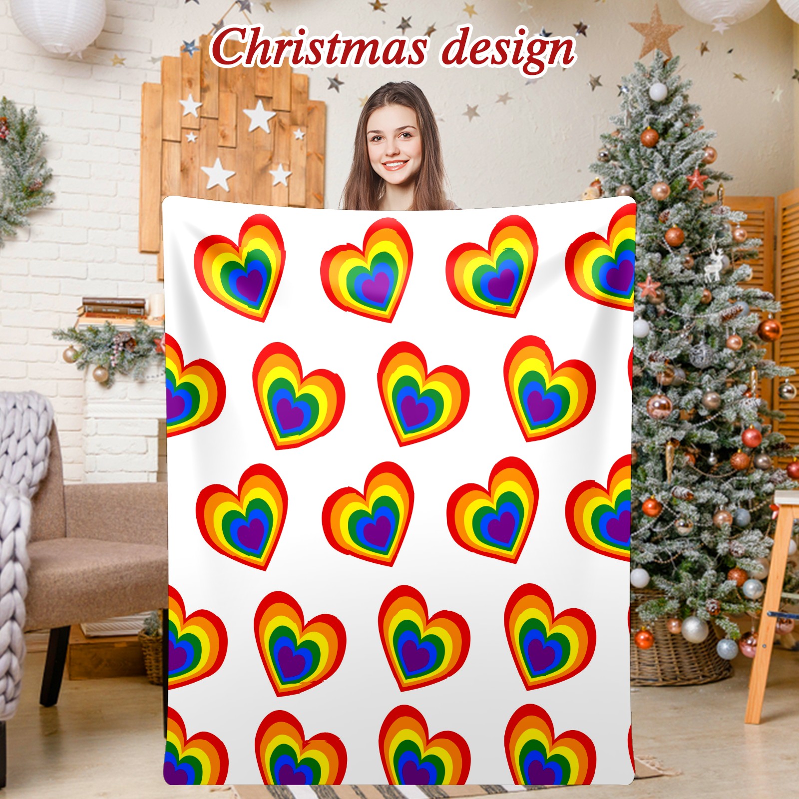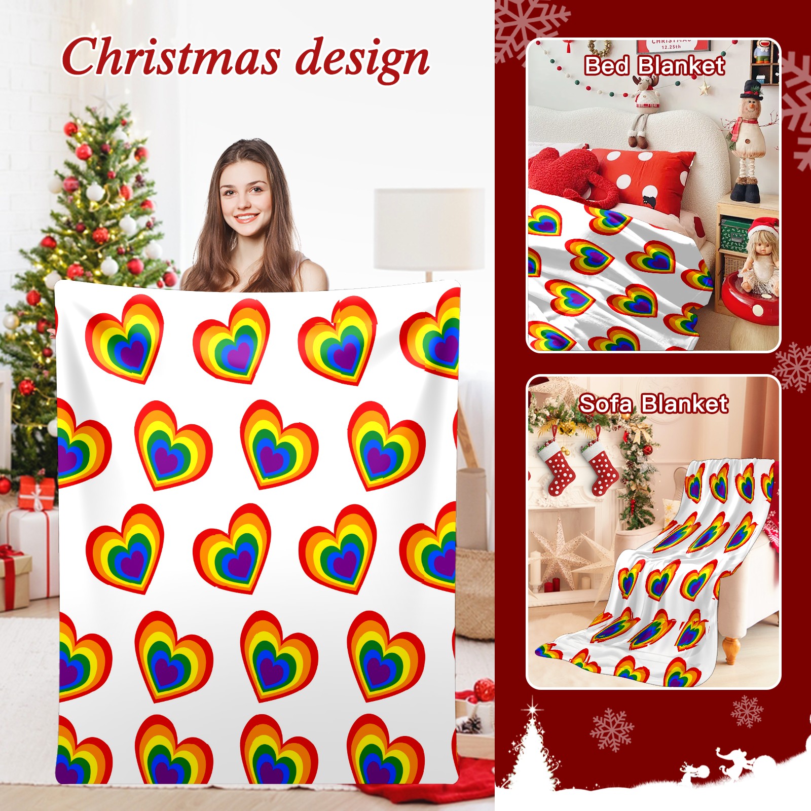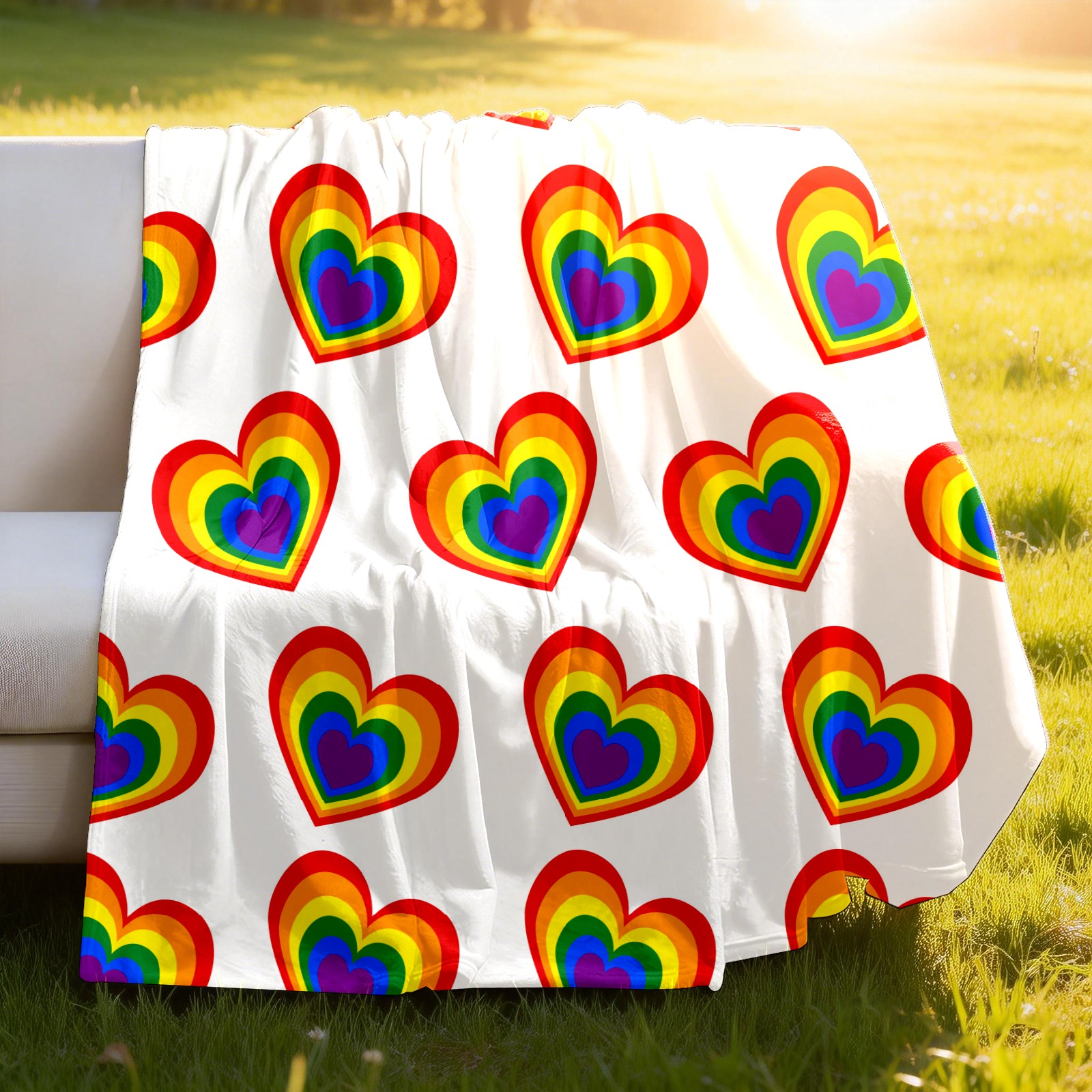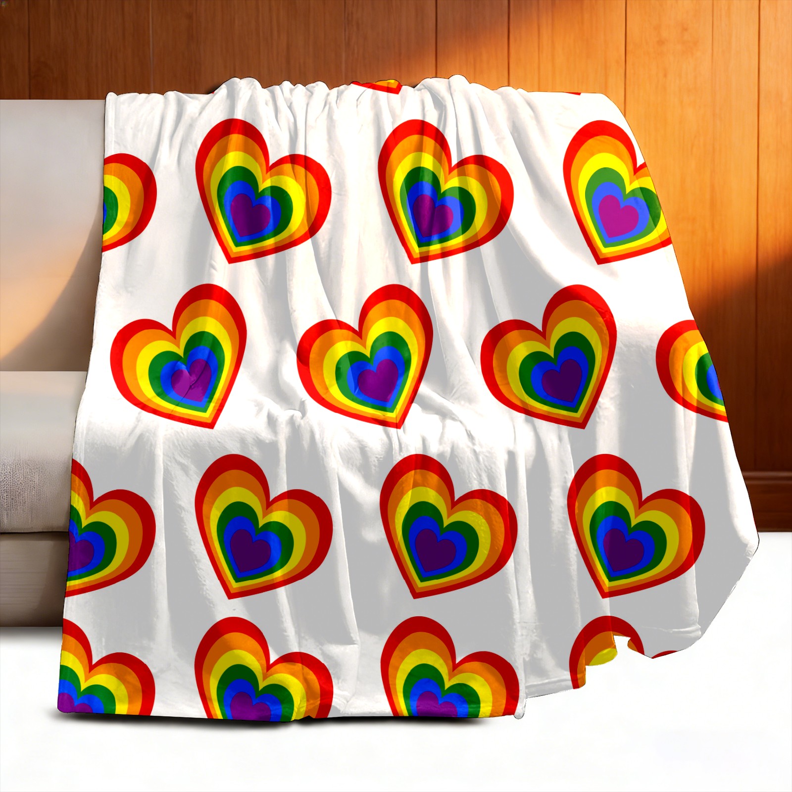 Counullo Flannel Throw Blanket, Ultra Soft Anti-Pilling Blanket for Couch & Bed, Lightweight Cozy Blanket for Travel, Home, Camping Gift - (30" x 39"), Valentine's Day Rainbow Heart