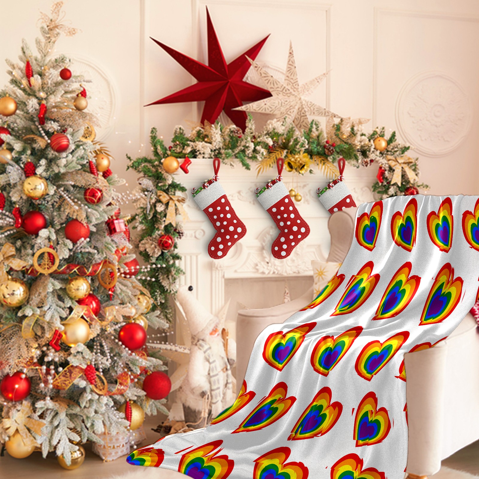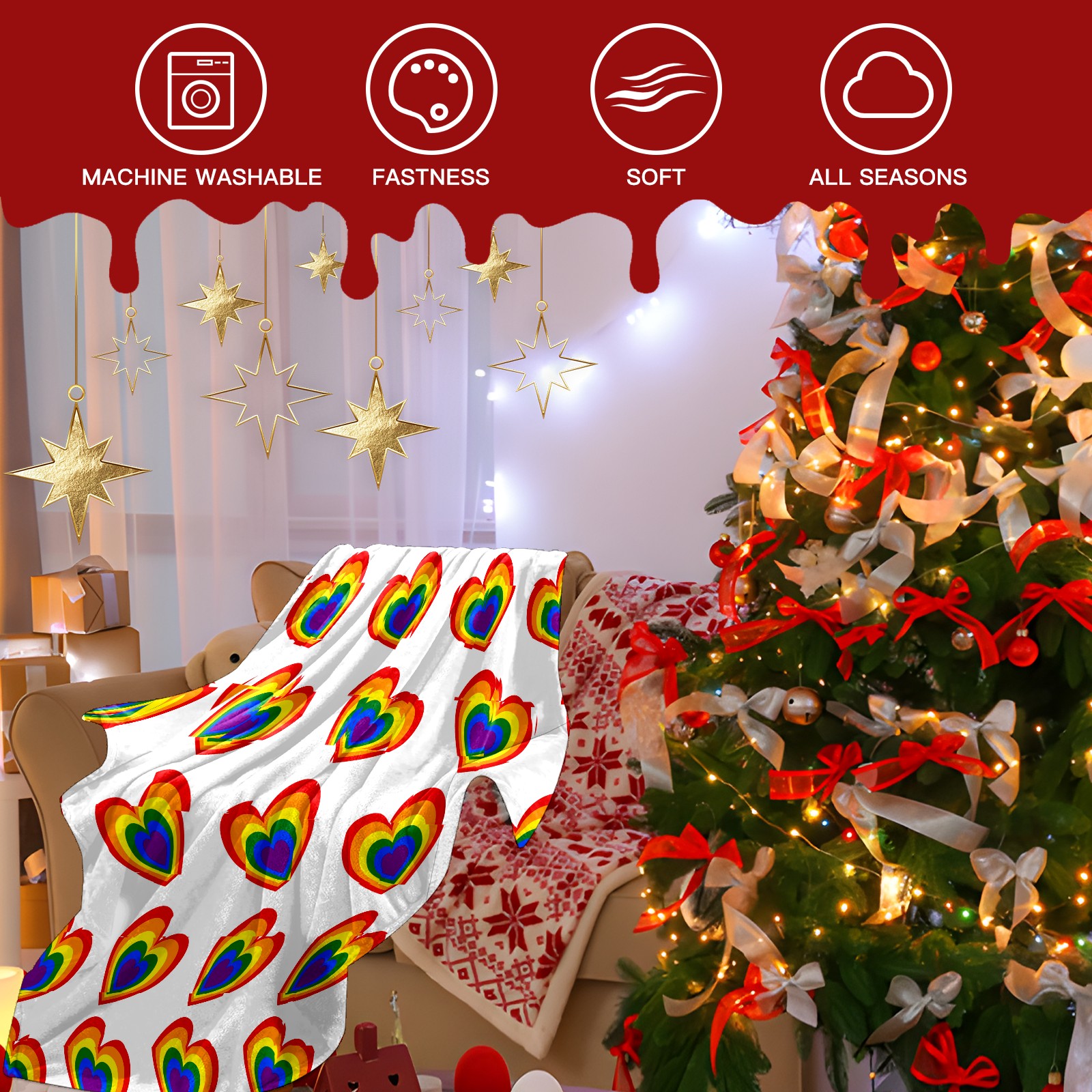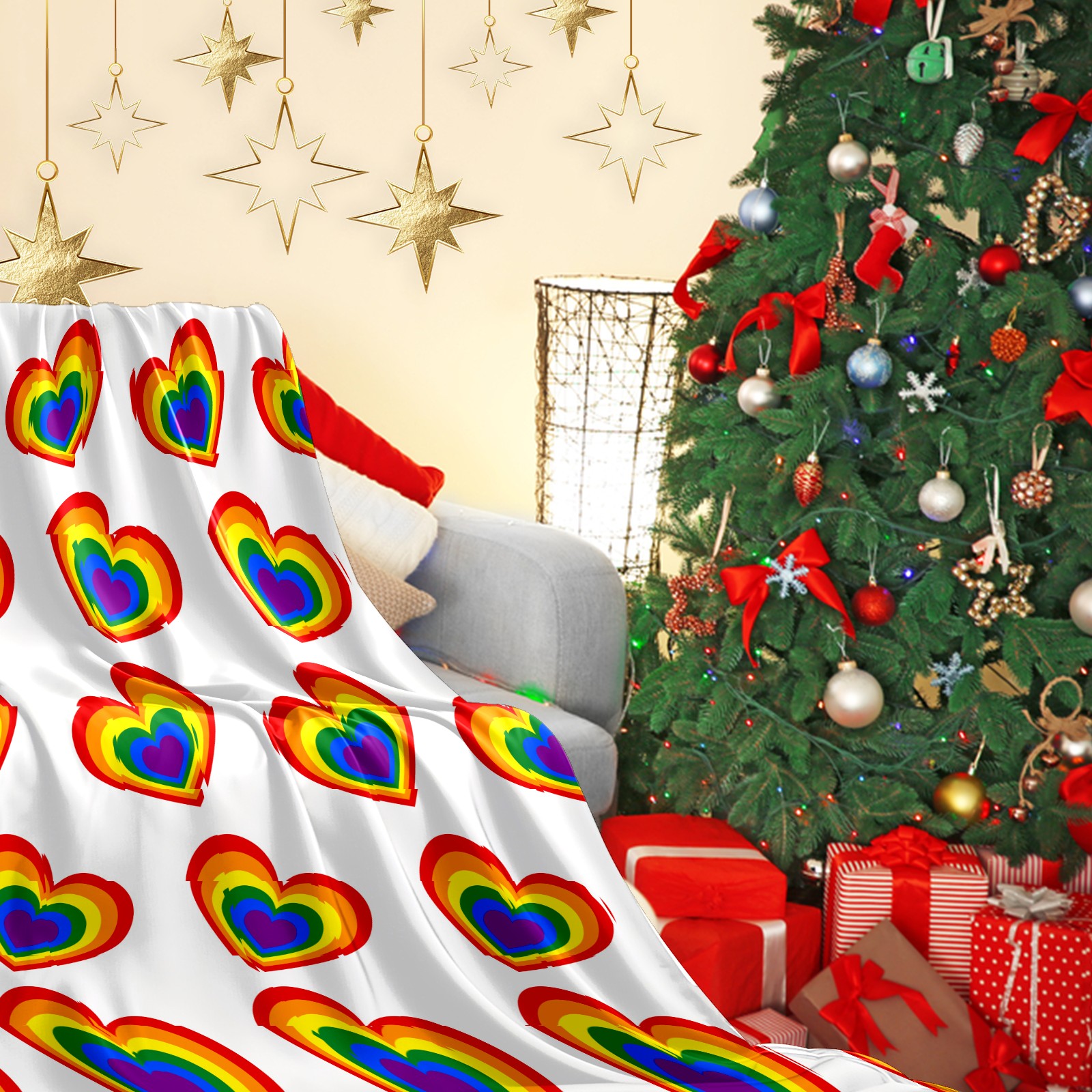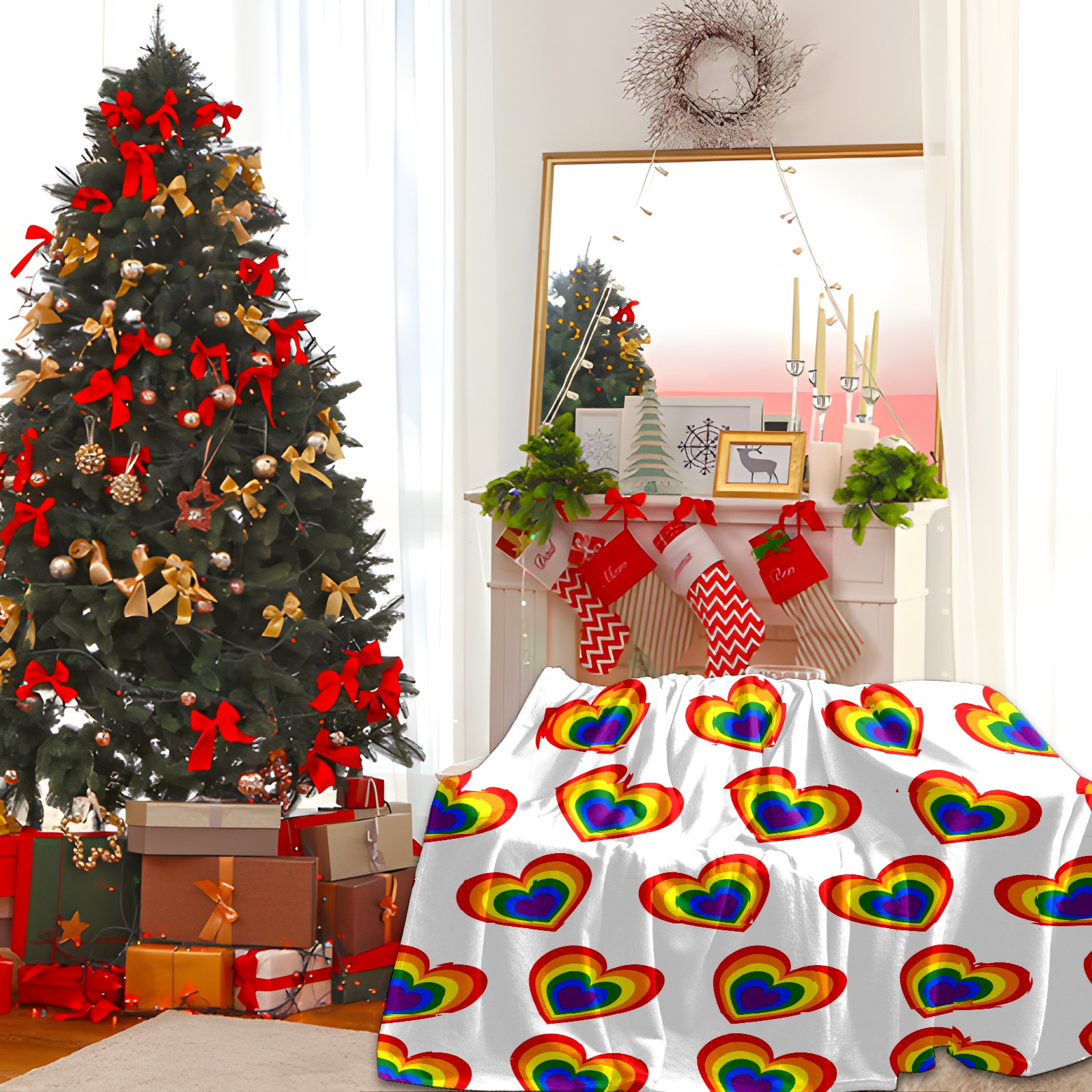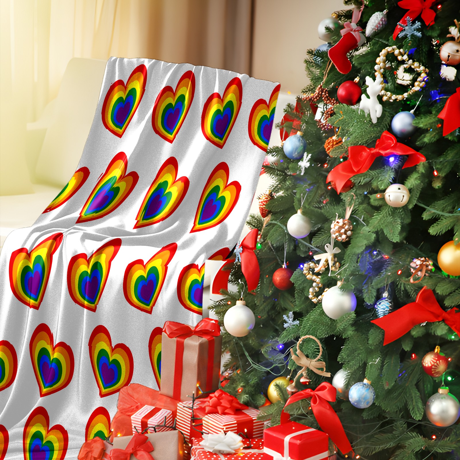 Counullo Flannel Throw Blanket, Ultra Soft Anti-Pilling Blanket for Couch & Bed, Lightweight Cozy Blanket for Travel, Home, Camping Gift - (30" x 39"), Valentine's Day Rainbow Heart