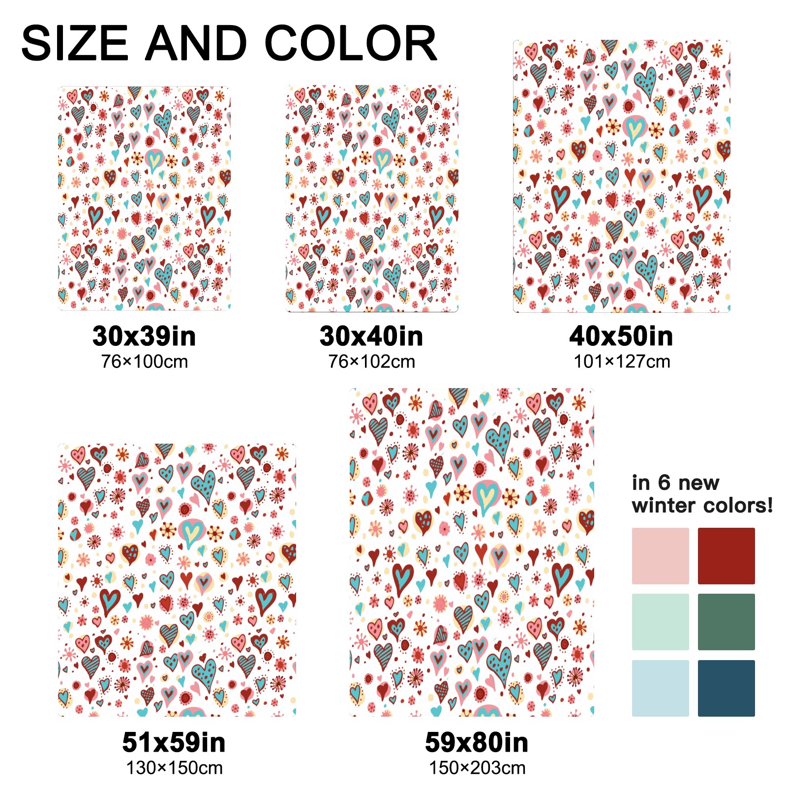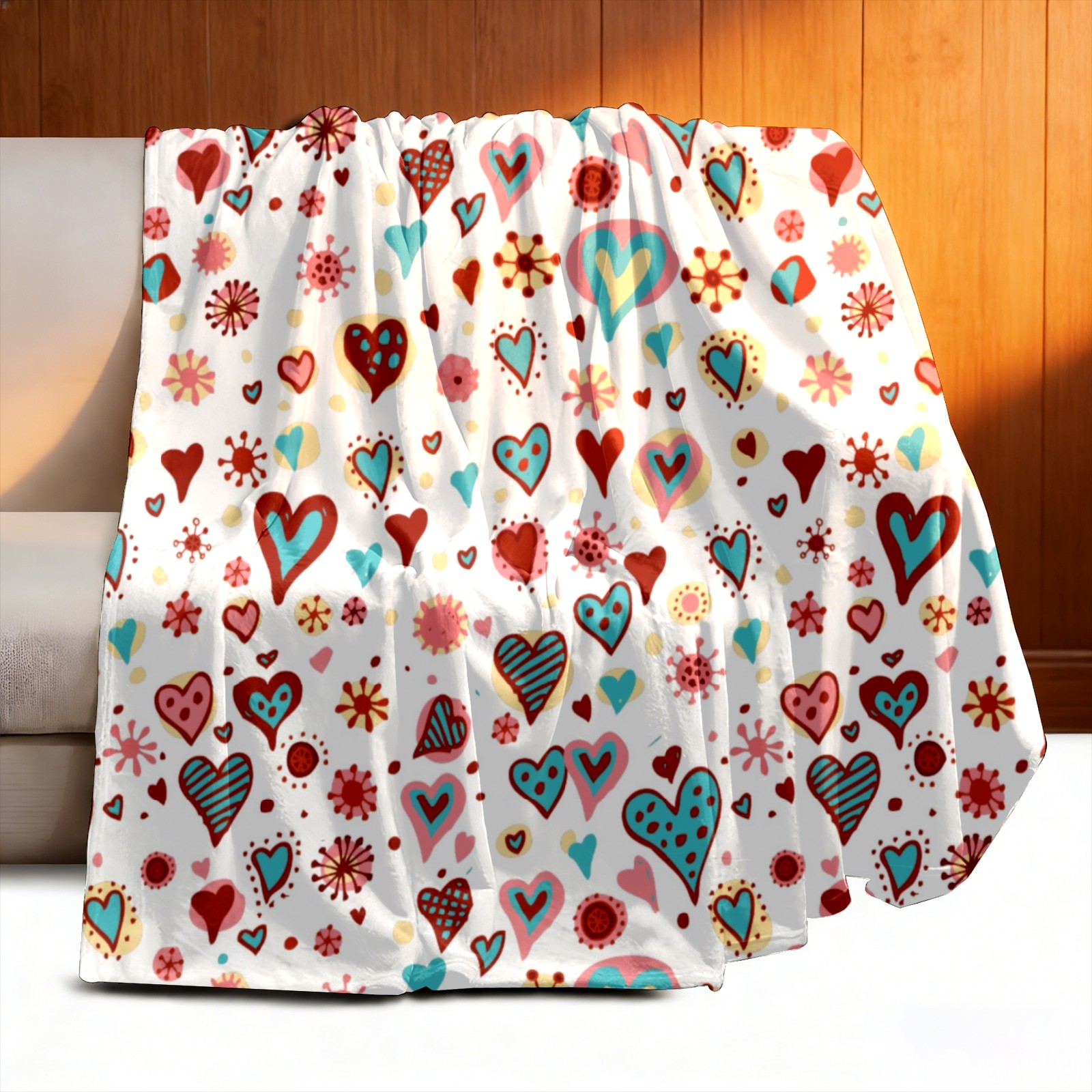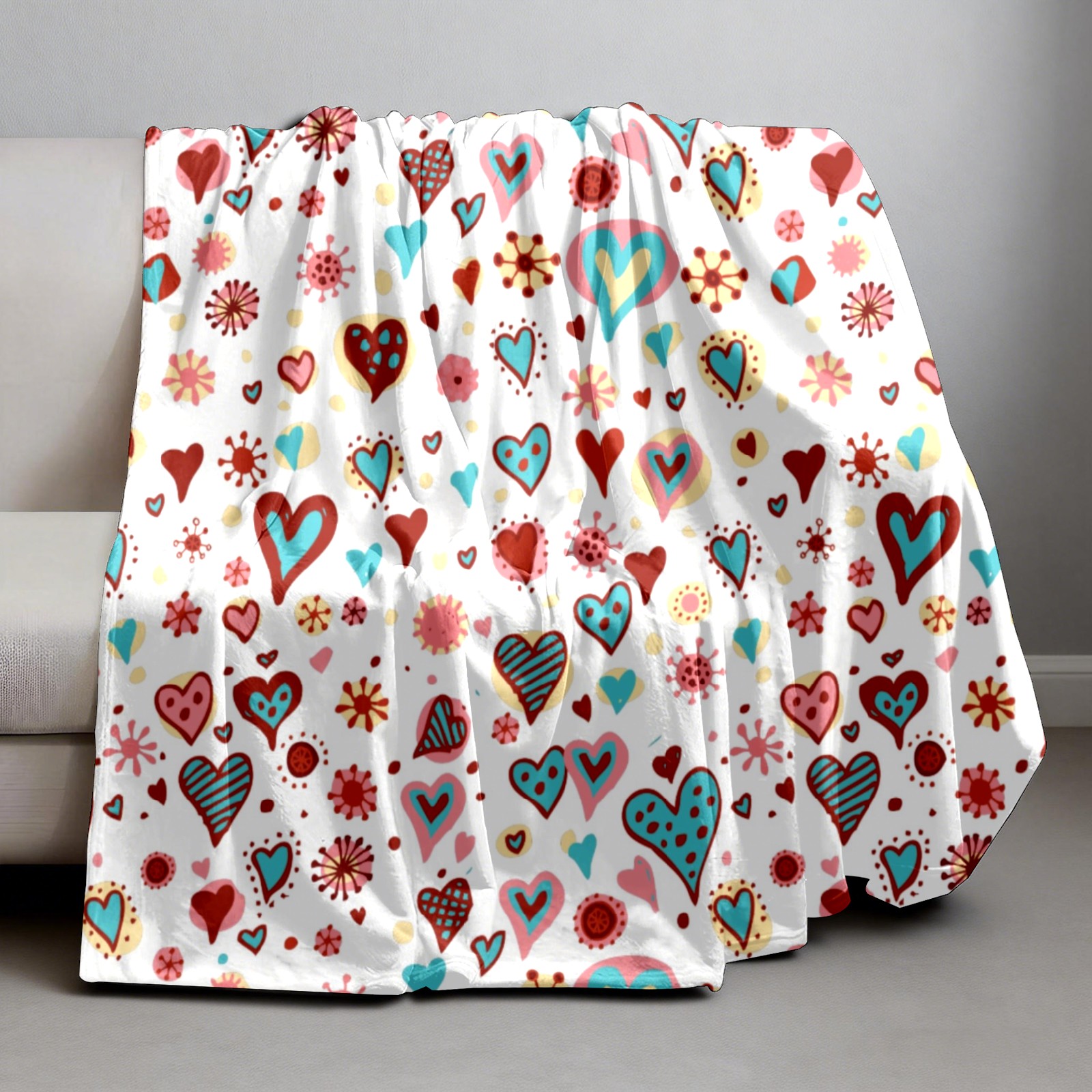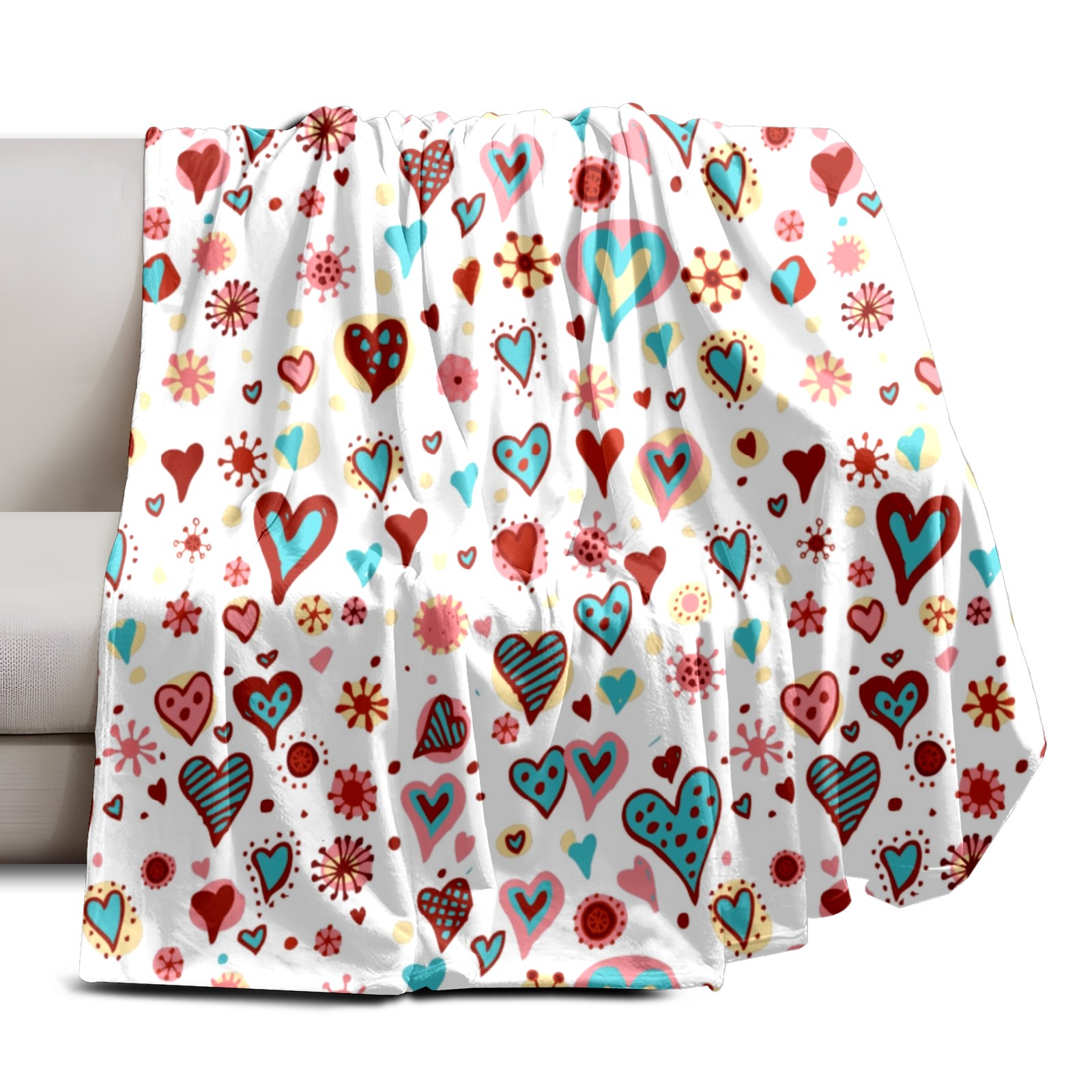 Counullo Flannel Throw Blanket, Ultra Soft Anti-Pilling Blanket for Couch & Bed, Lightweight Cozy Blanket for Travel, Home, Camping Gift - (30" x 39"), Cute Cartoon Colorful Valentines Hearts Pattern