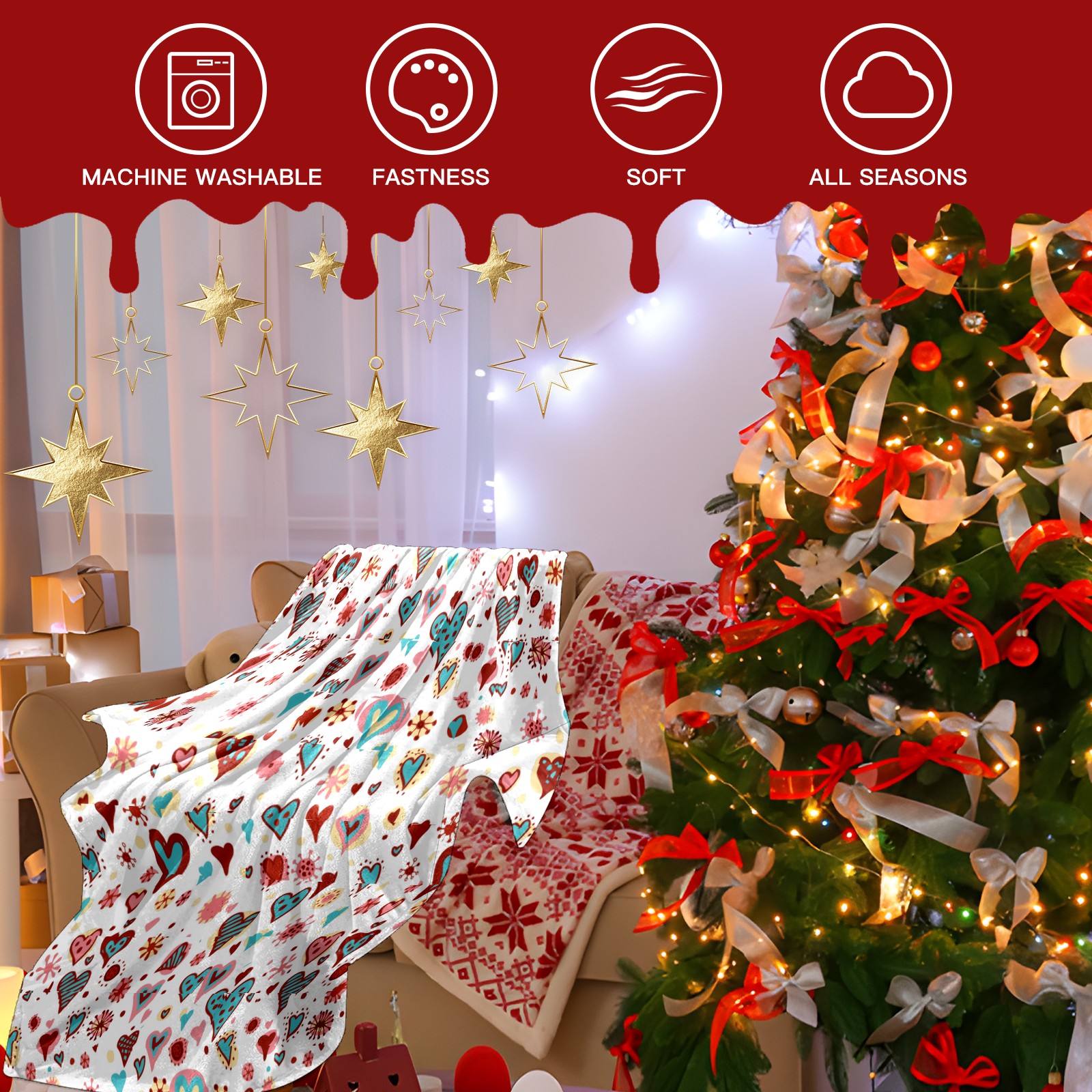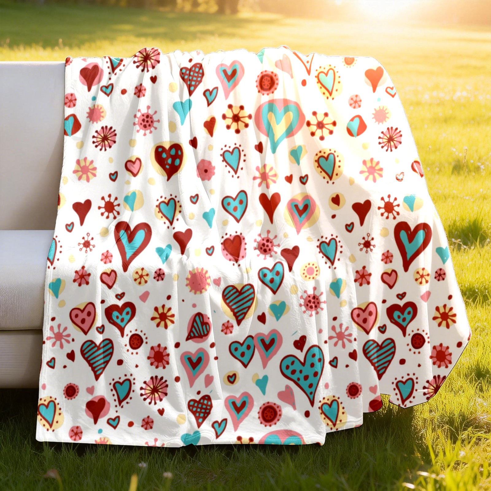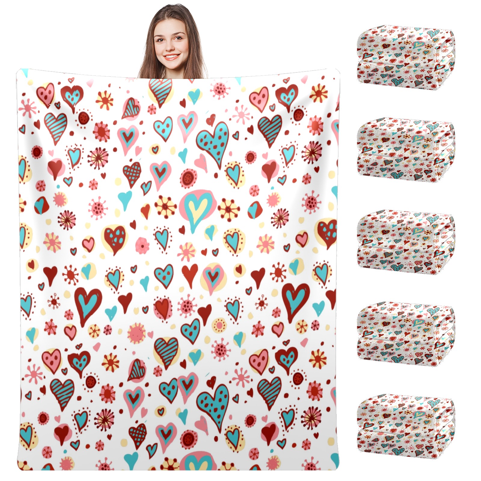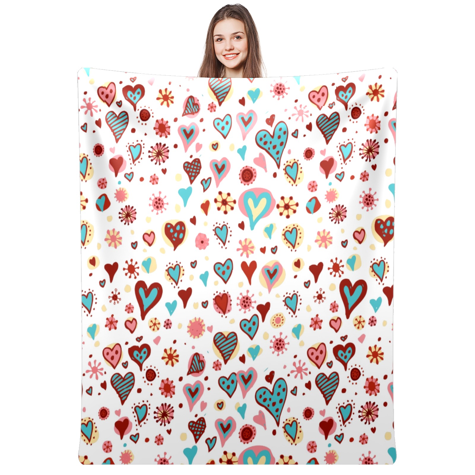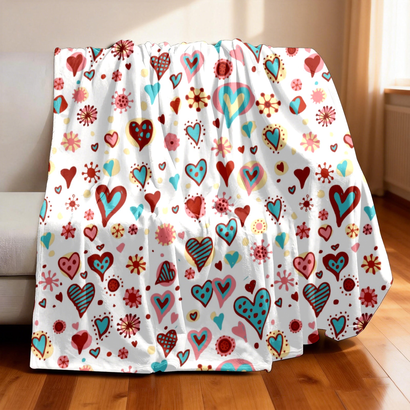 Counullo Flannel Throw Blanket, Ultra Soft Anti-Pilling Blanket for Couch & Bed, Lightweight Cozy Blanket for Travel, Home, Camping Gift - (30" x 39"), Cute Cartoon Colorful Valentines Hearts Pattern