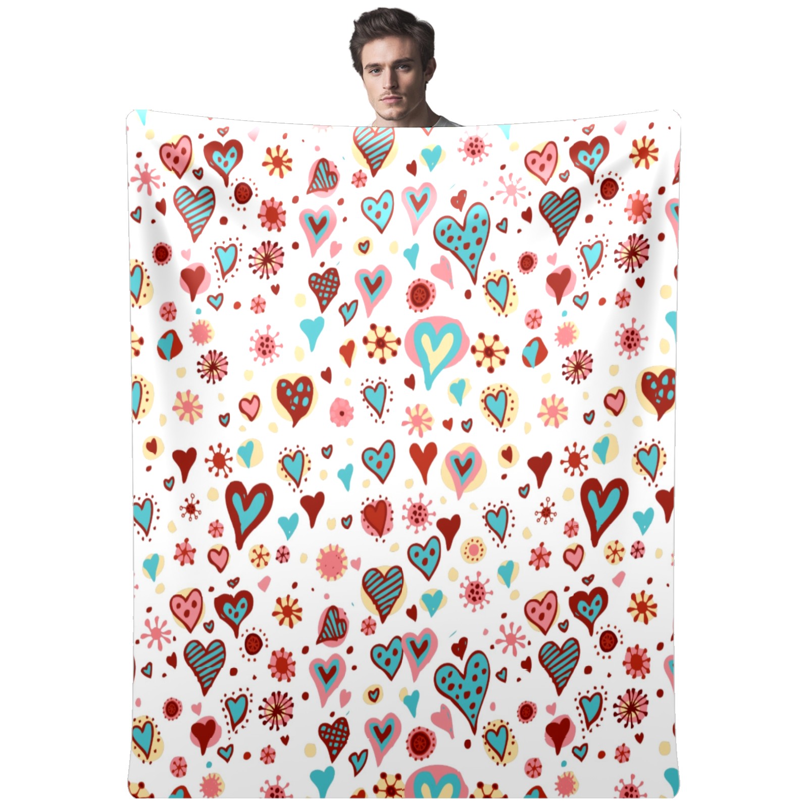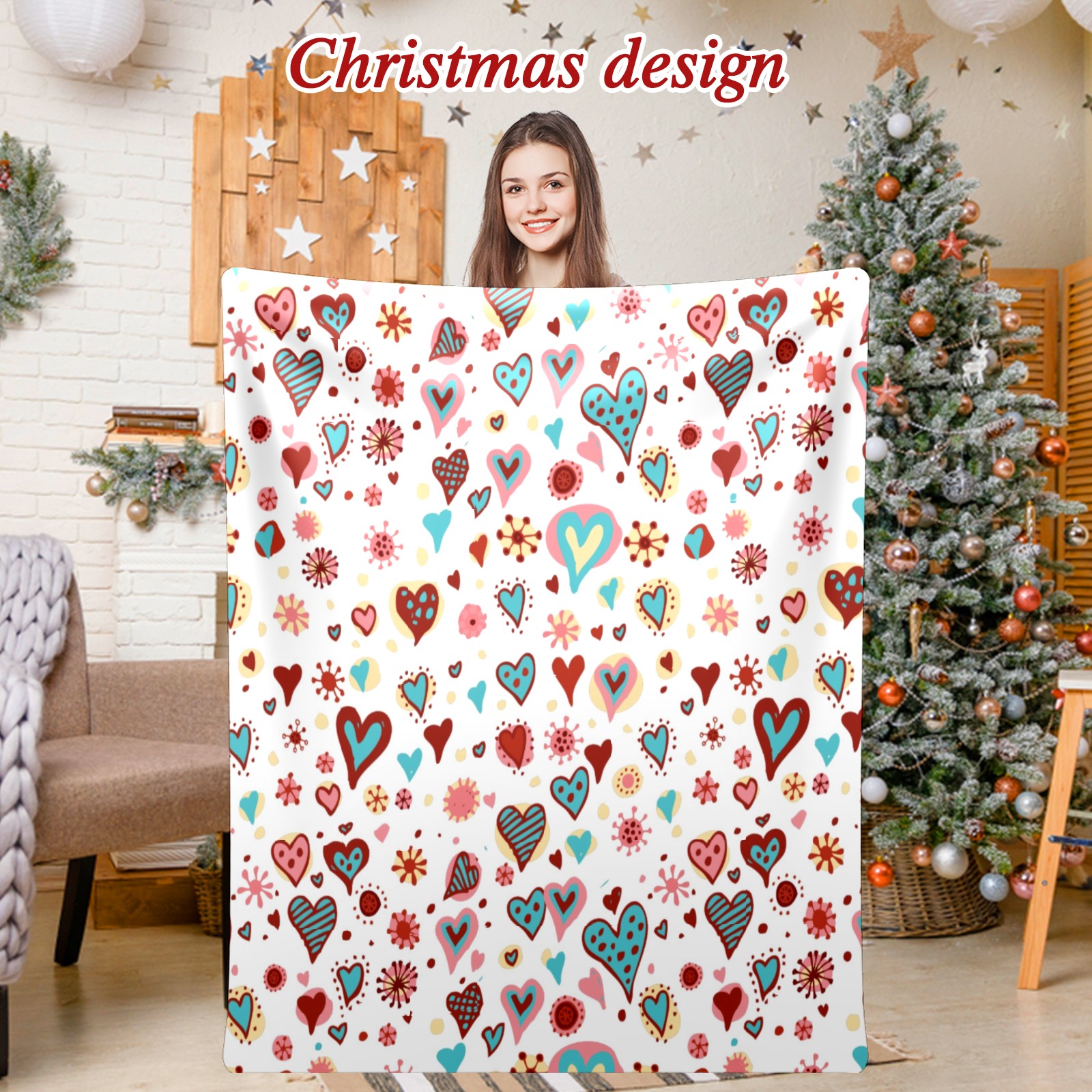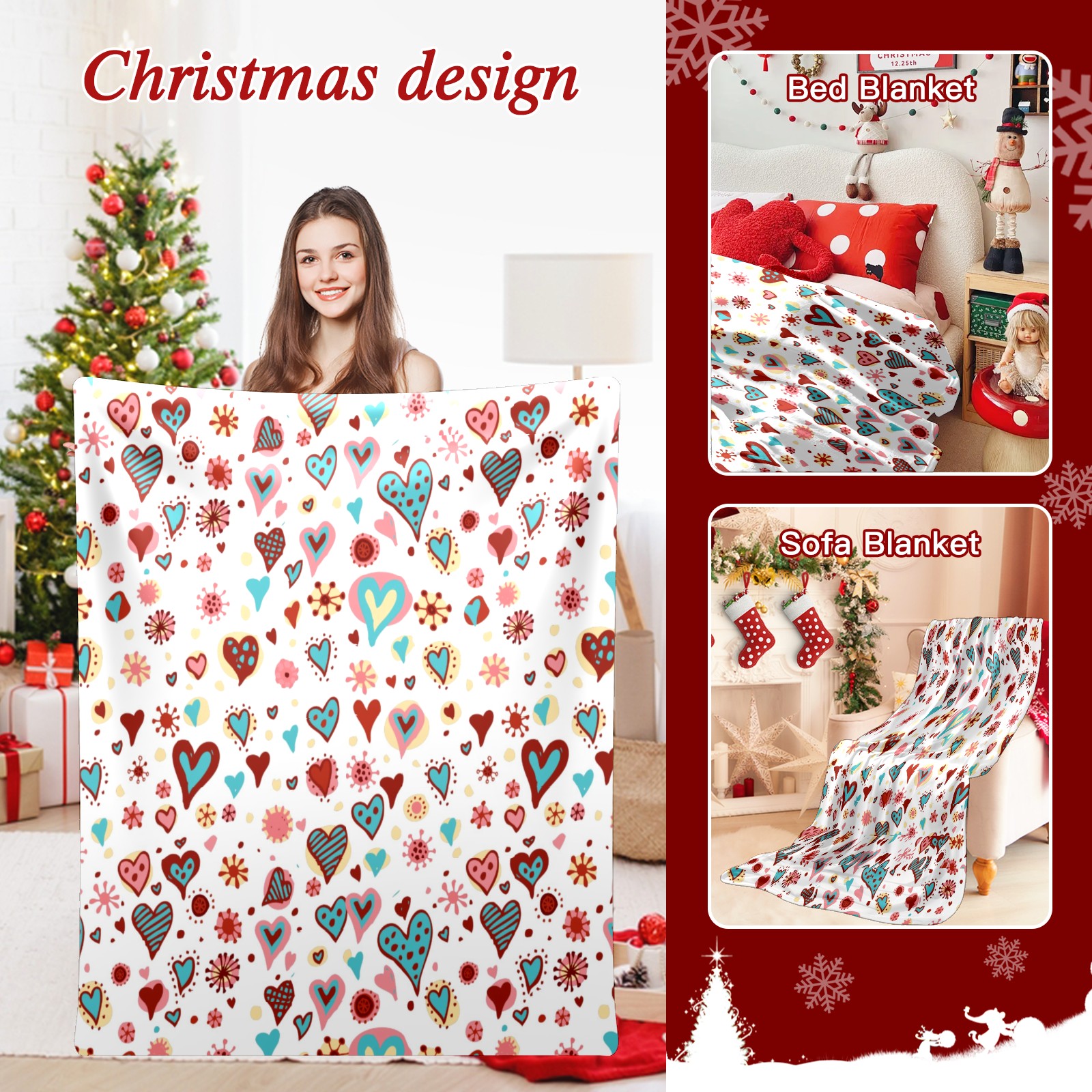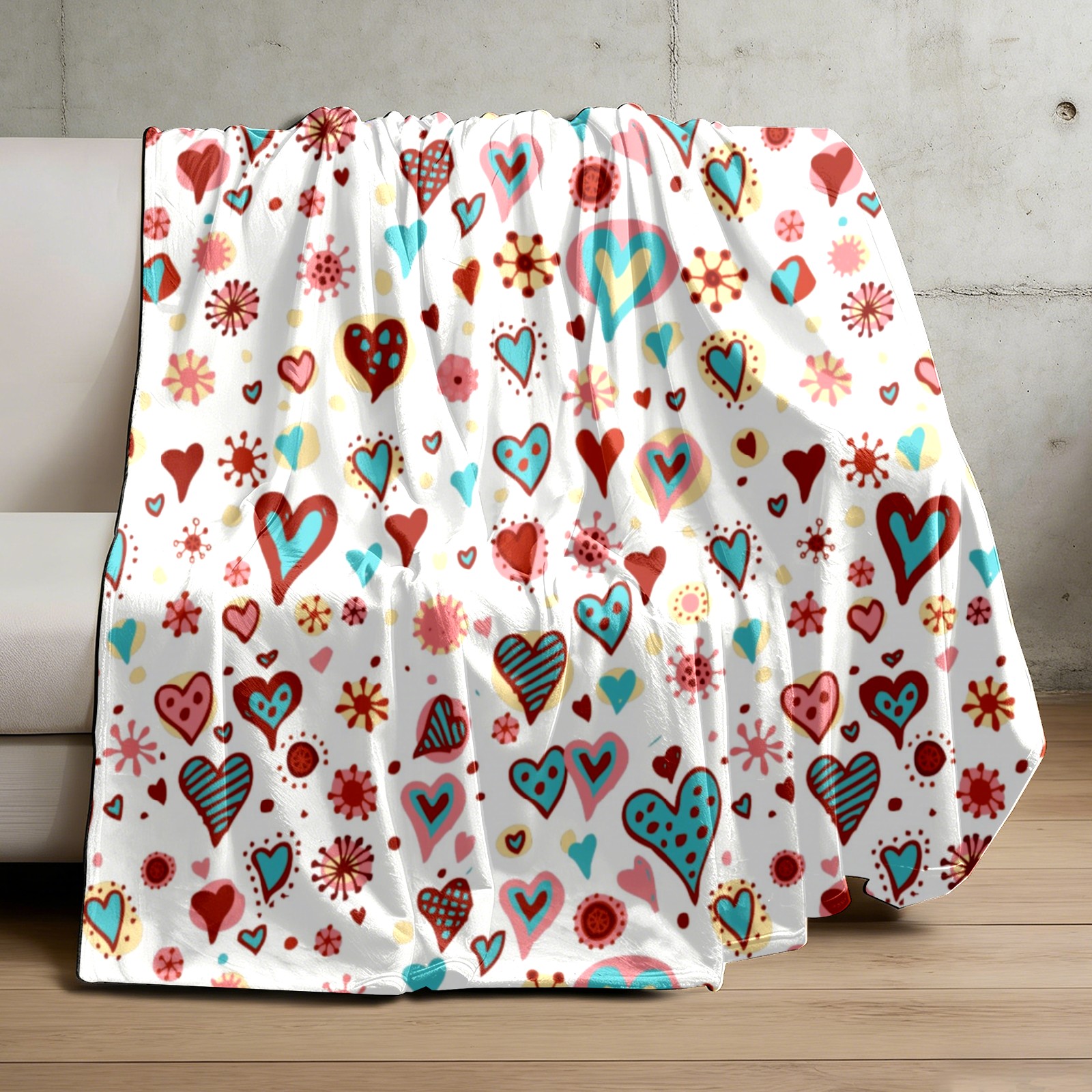 Counullo Flannel Throw Blanket, Ultra Soft Anti-Pilling Blanket for Couch & Bed, Lightweight Cozy Blanket for Travel, Home, Camping Gift - (30" x 39"), Cute Cartoon Colorful Valentines Hearts Pattern