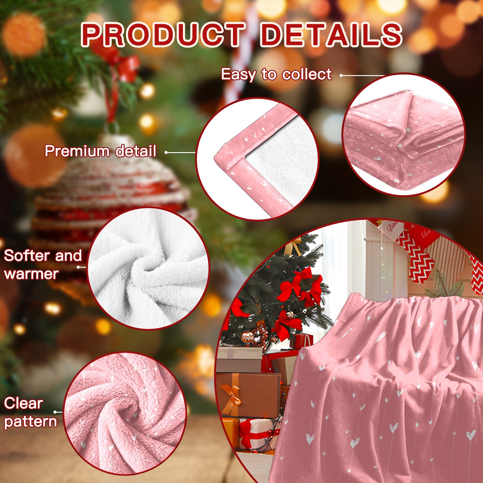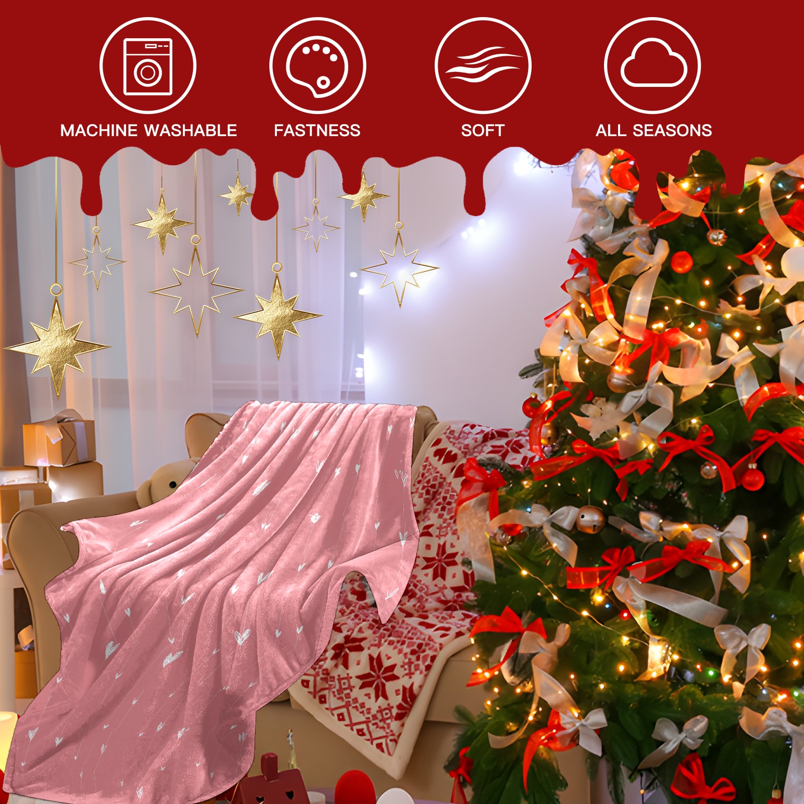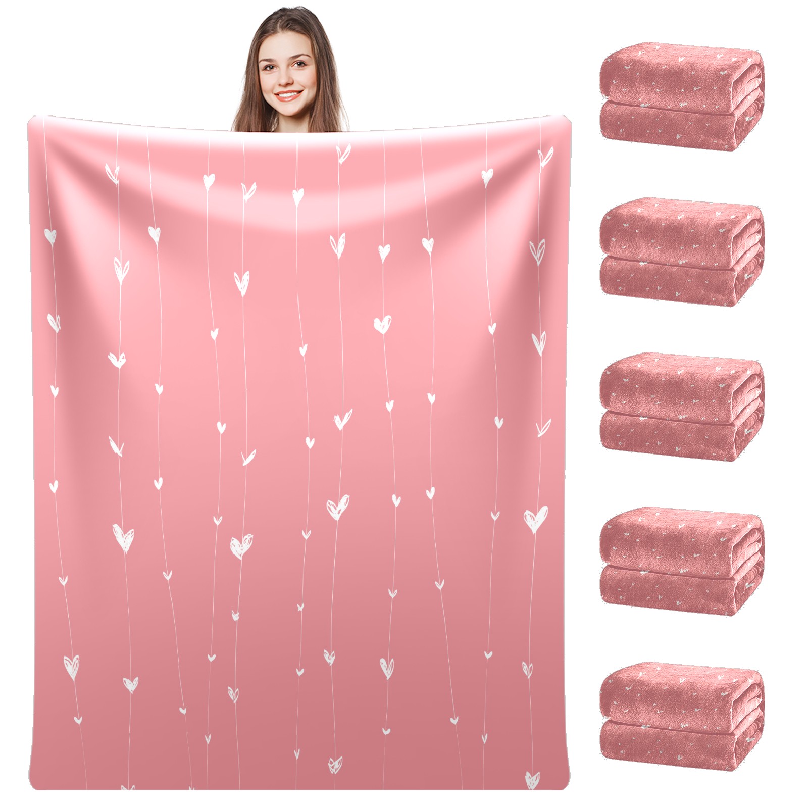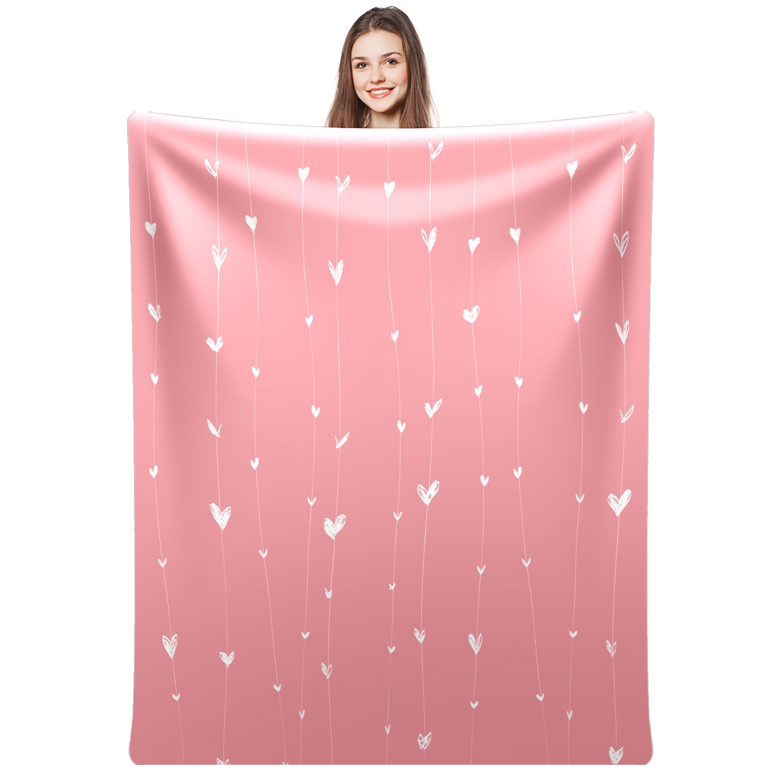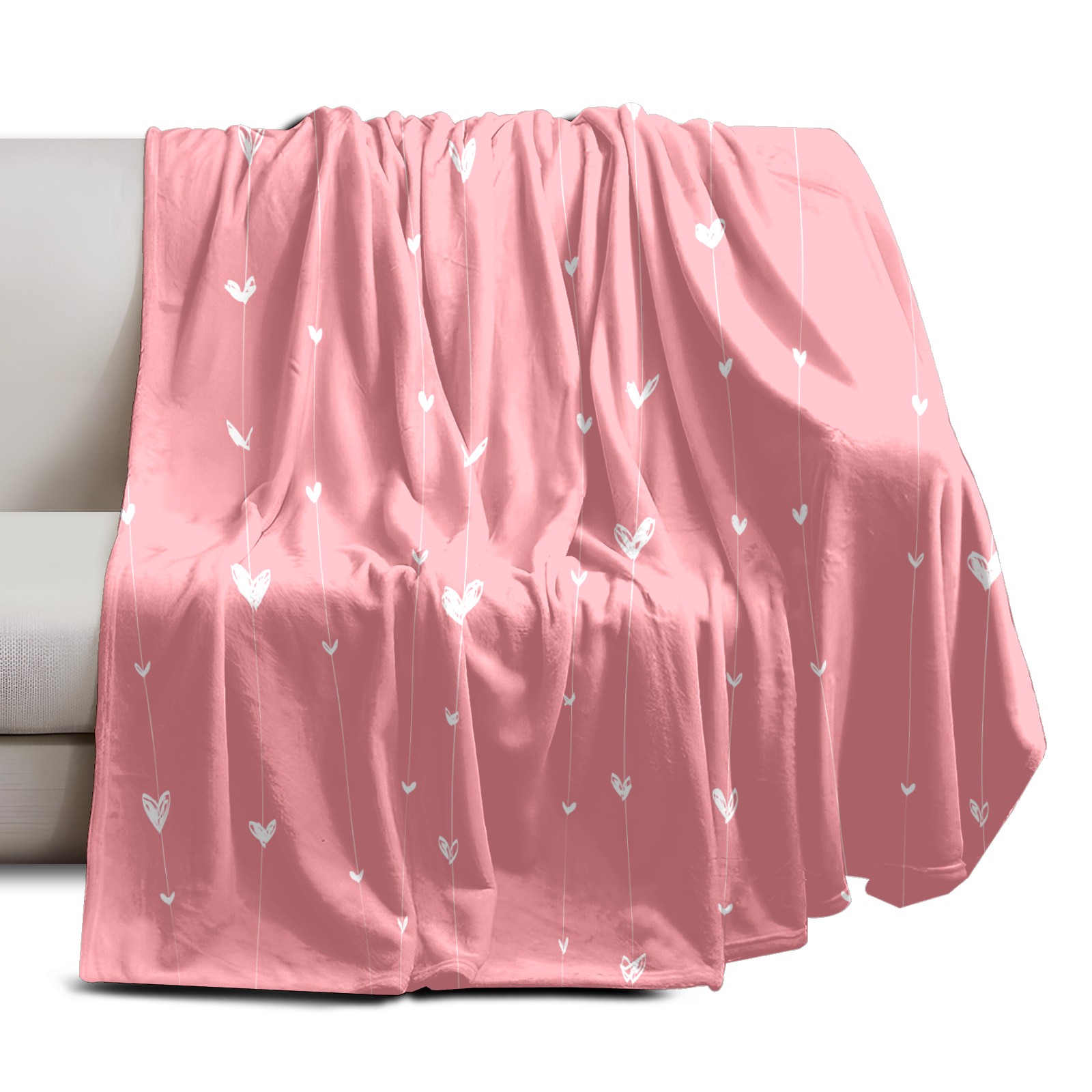 Counullo Flannel Throw Blanket, Ultra Soft Anti-Pilling Blanket for Couch & Bed, Lightweight Cozy Blanket for Travel, Home, Camping Gift - (30" x 39"), Pink White Hearts Lines