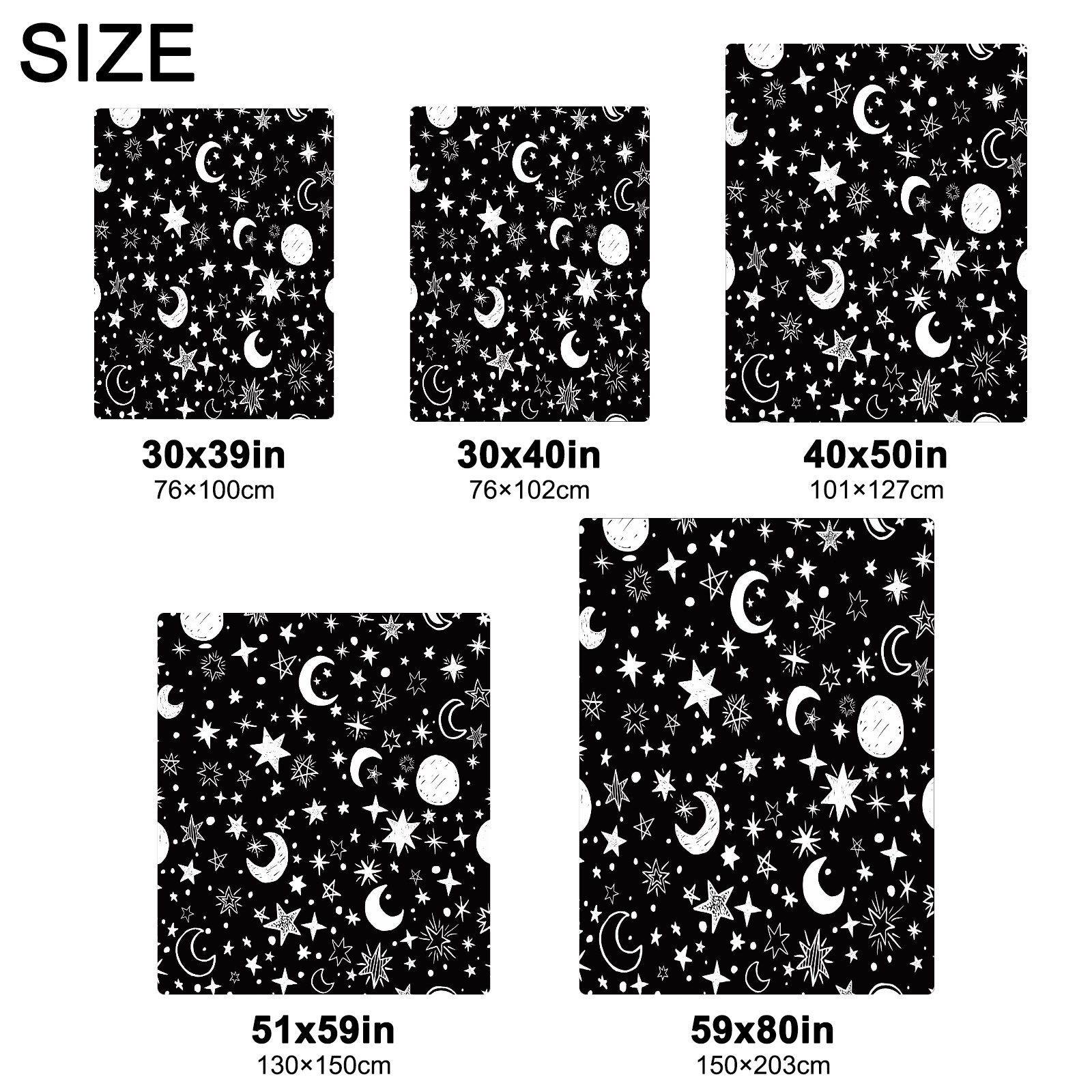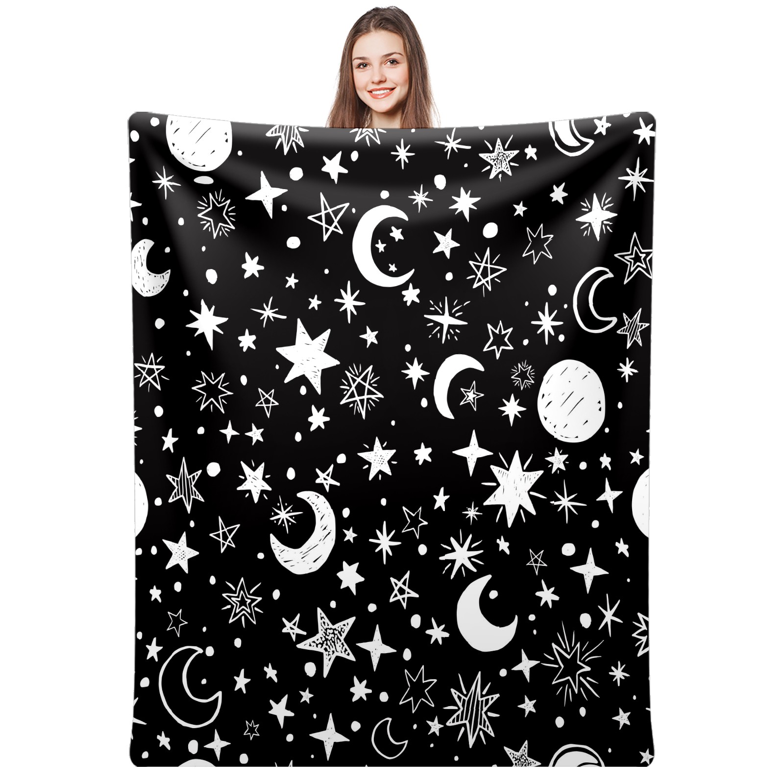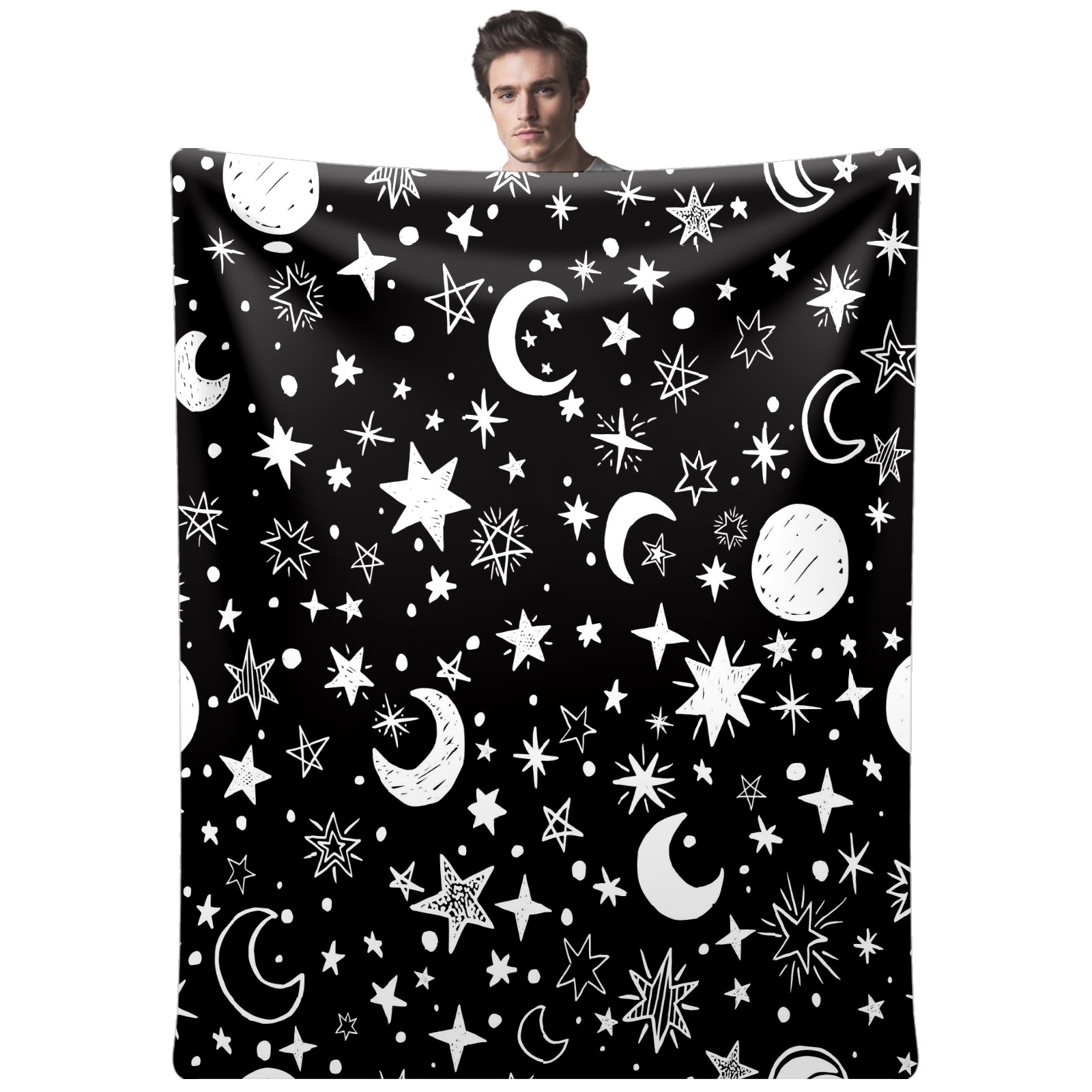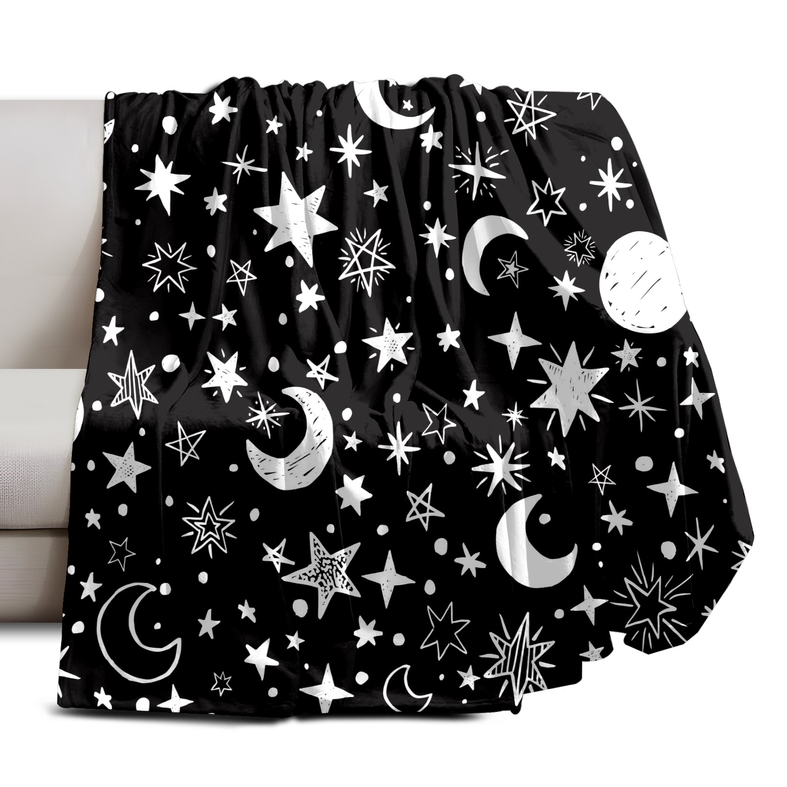 Counullo Flannel Throw Blanket, Ultra Soft Anti-Pilling Blanket for Couch & Bed, Lightweight Cozy Blanket for Travel, Home, Camping Gift - (30" x 39"), Moons Stars Black White Background Doodle