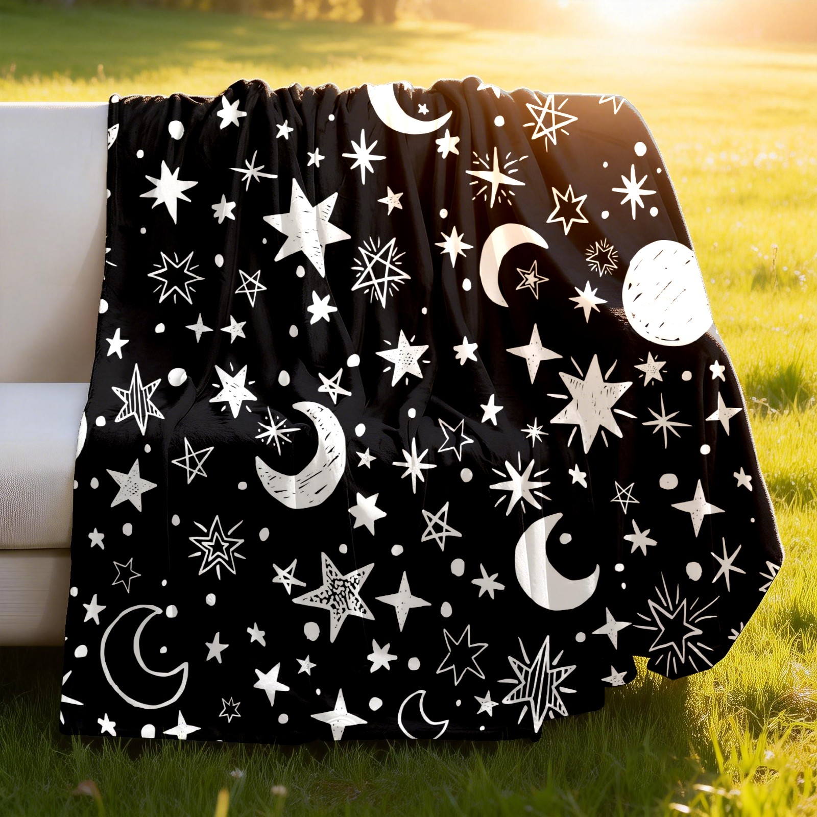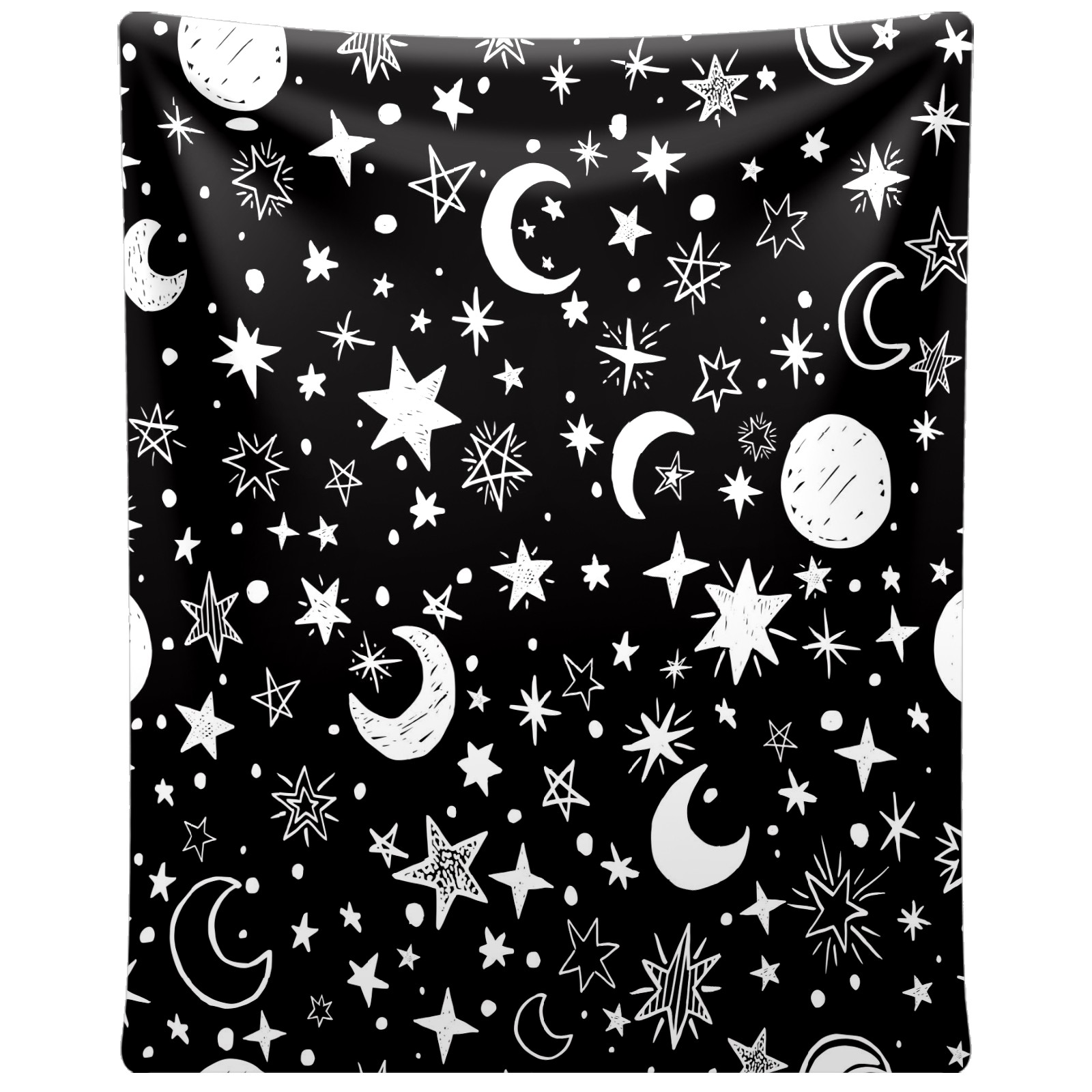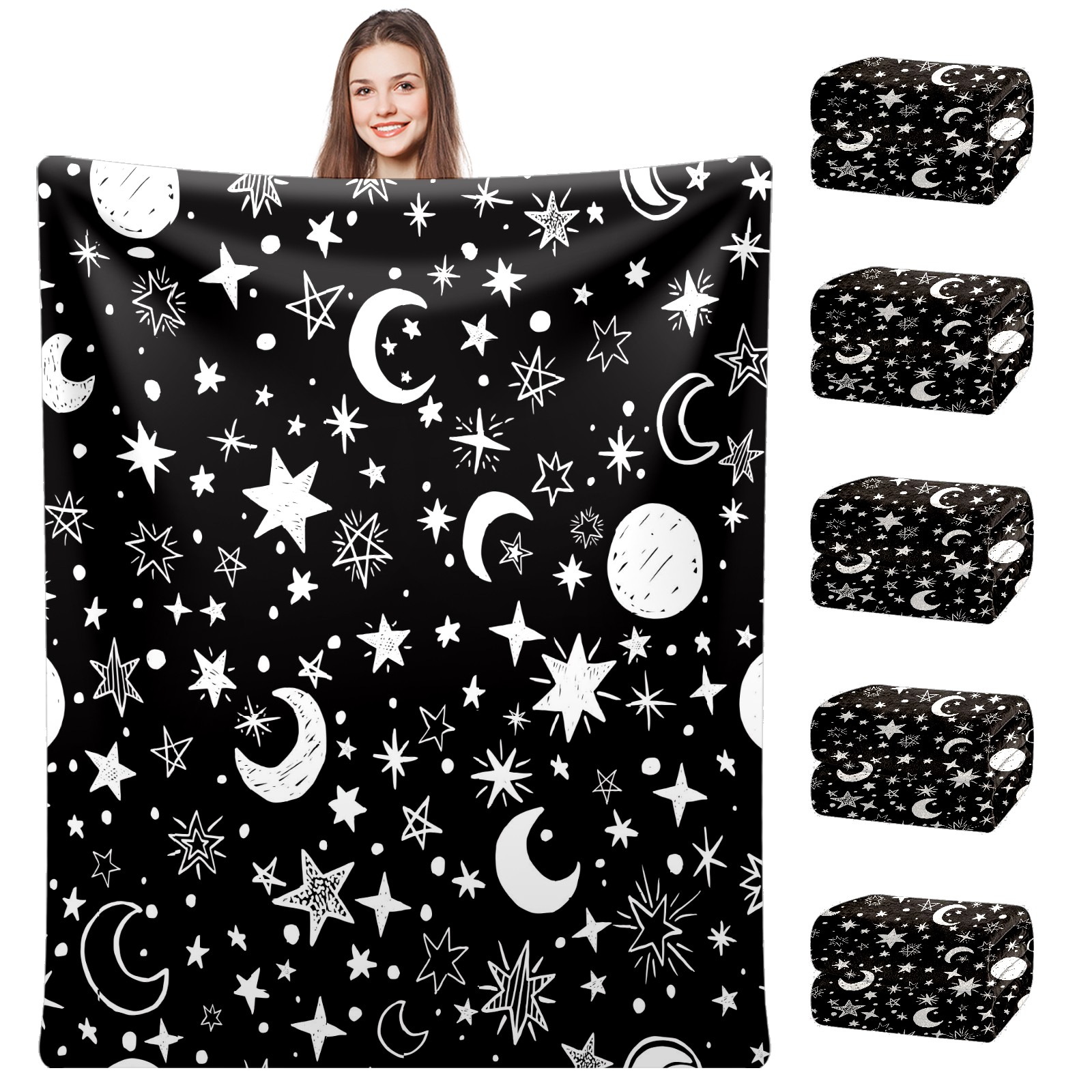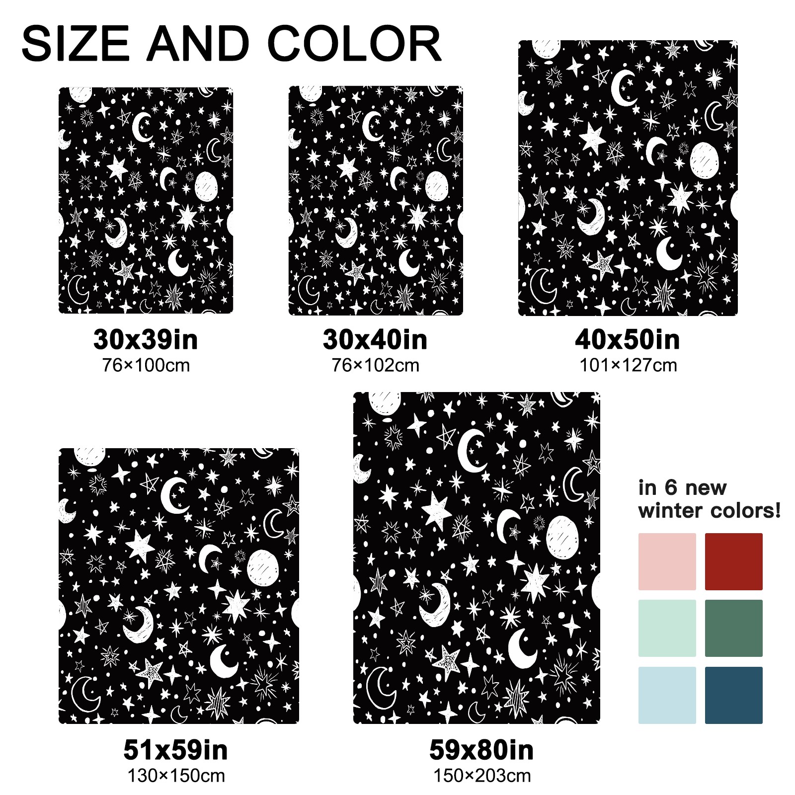 Counullo Flannel Throw Blanket, Ultra Soft Anti-Pilling Blanket for Couch & Bed, Lightweight Cozy Blanket for Travel, Home, Camping Gift - (30" x 39"), Moons Stars Black White Background Doodle
