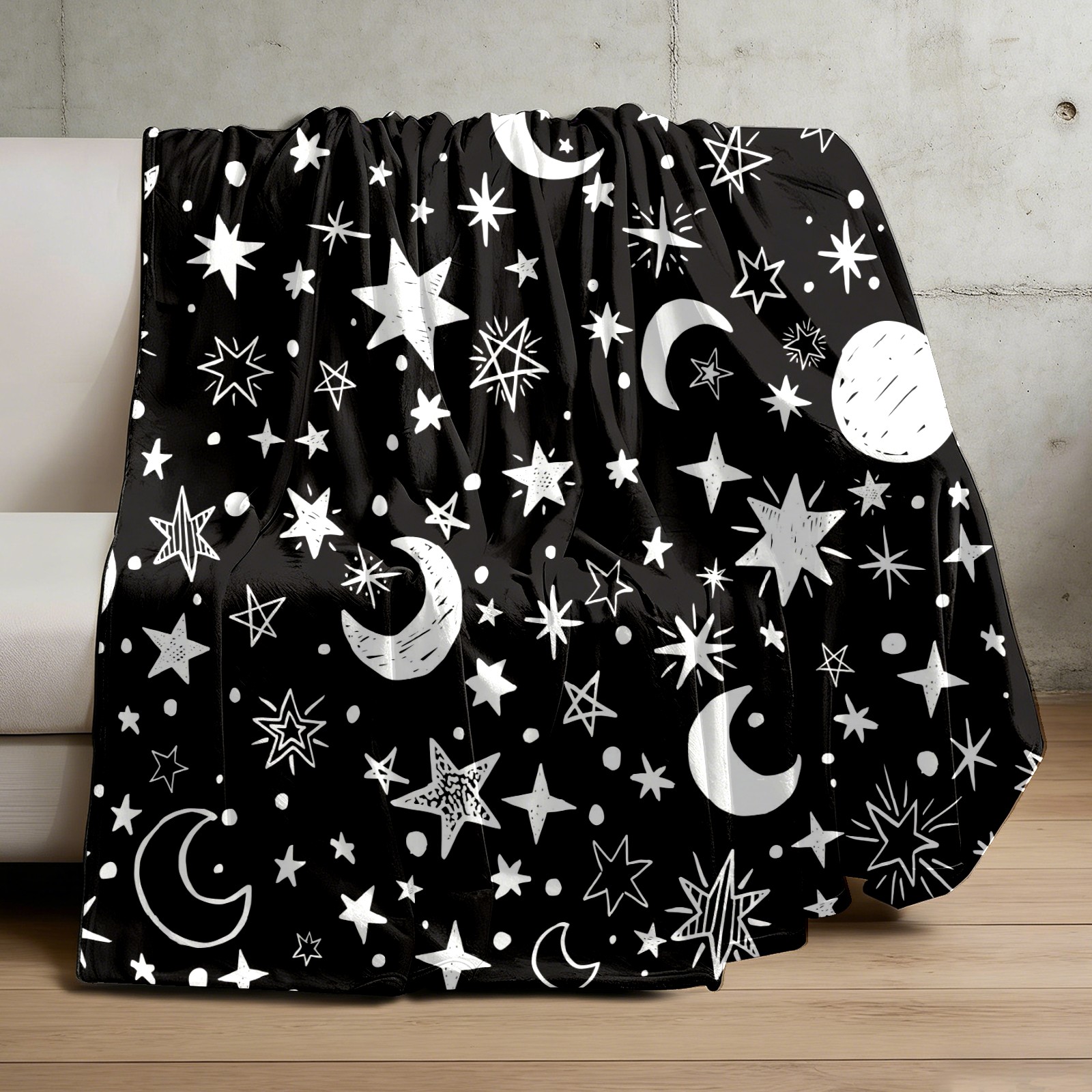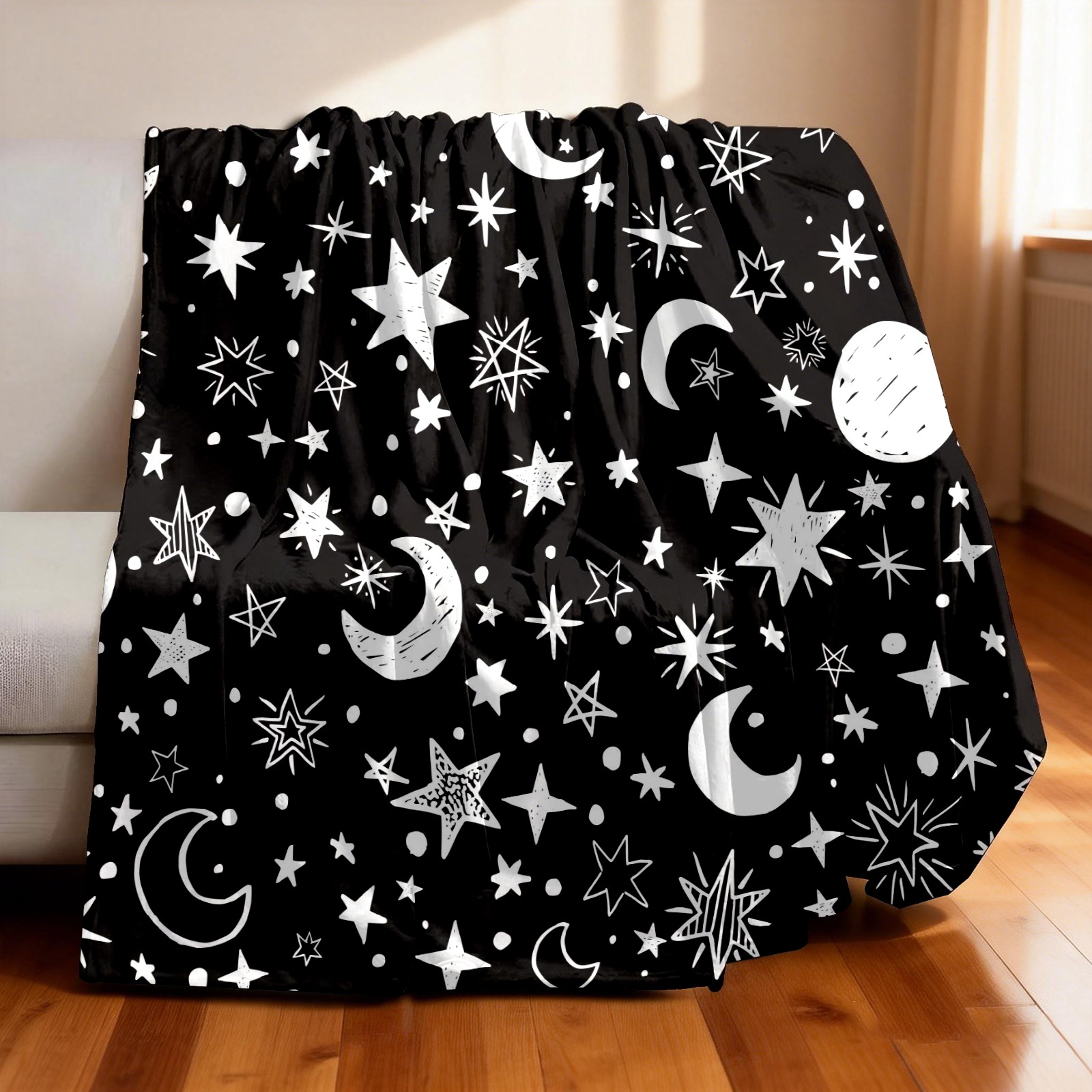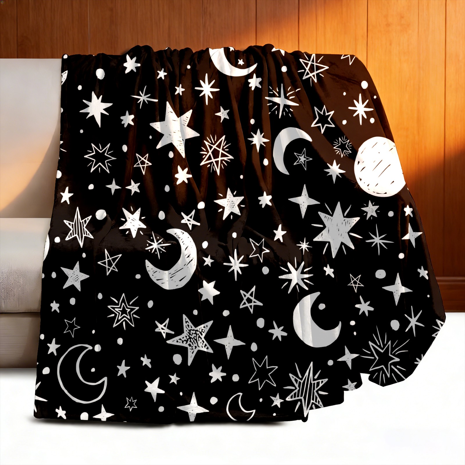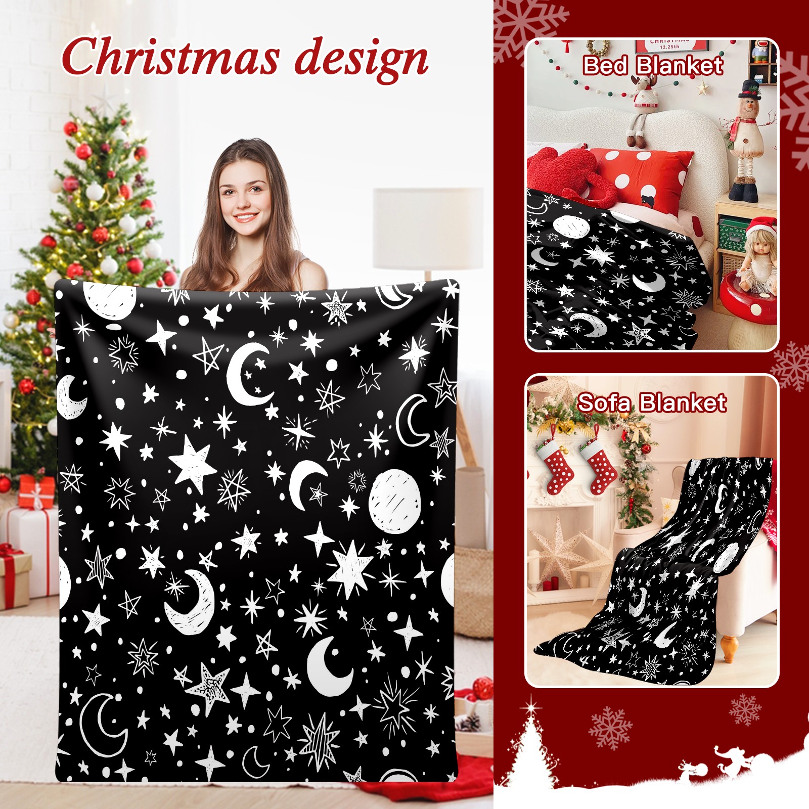 Counullo Flannel Throw Blanket, Ultra Soft Anti-Pilling Blanket for Couch & Bed, Lightweight Cozy Blanket for Travel, Home, Camping Gift - (30" x 39"), Moons Stars Black White Background Doodle