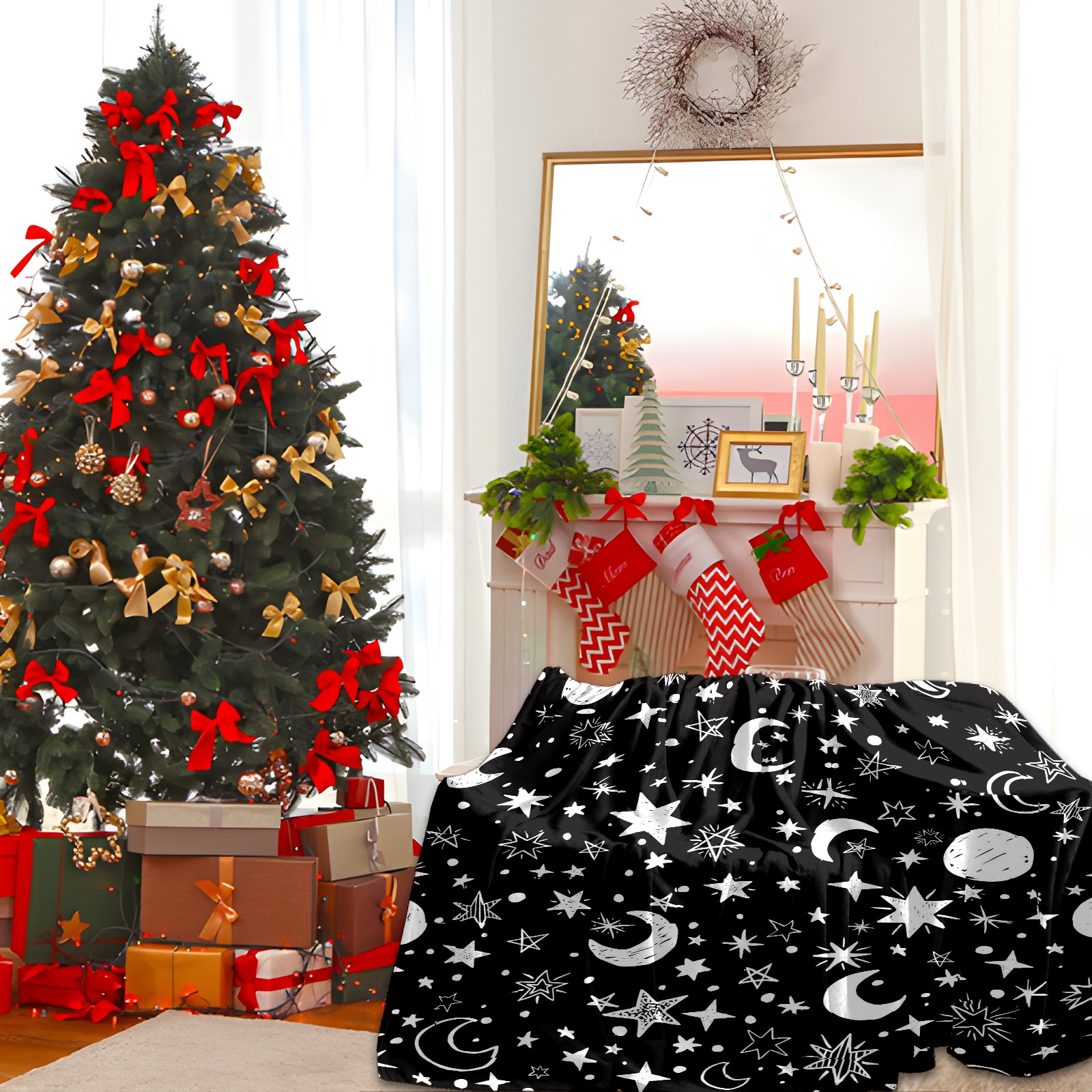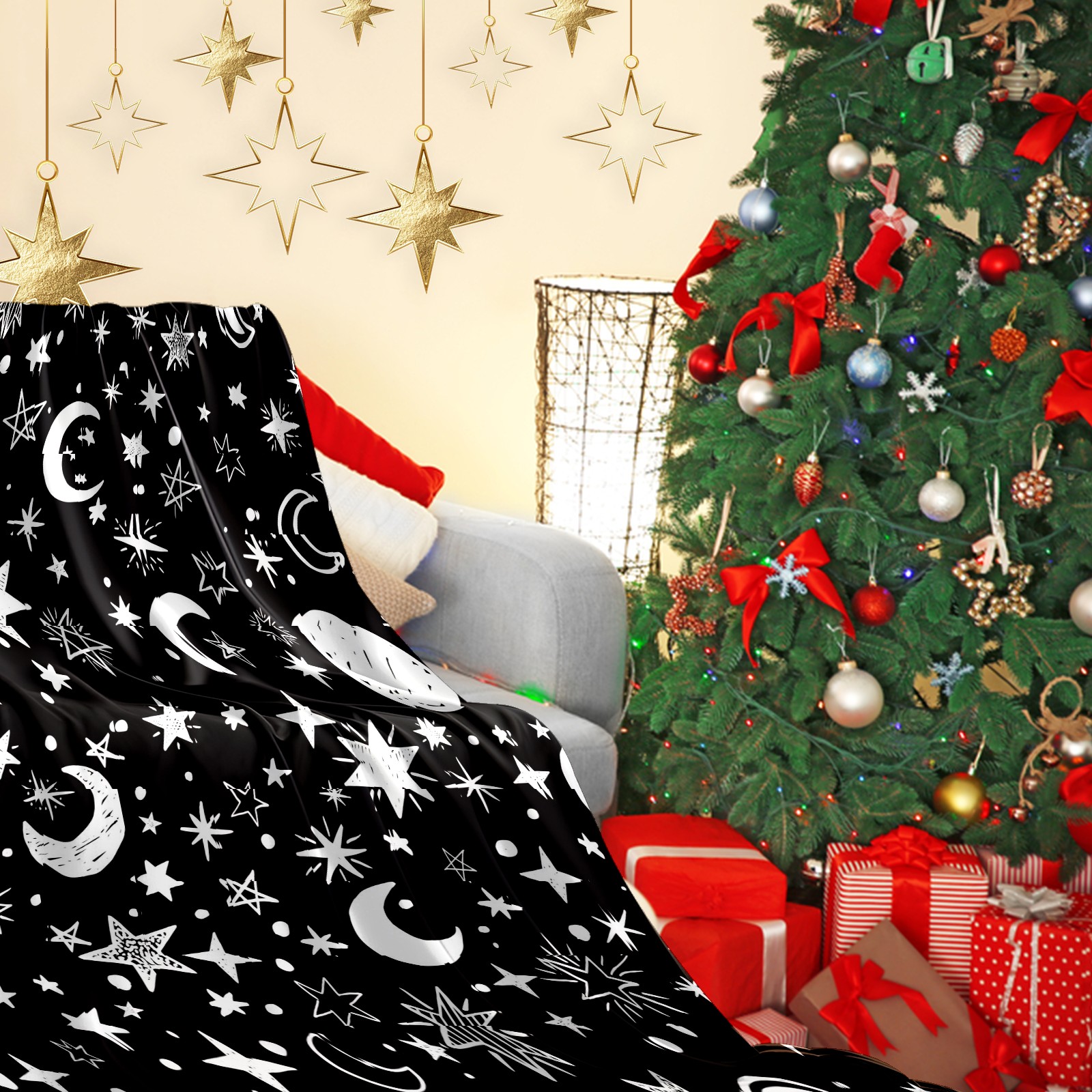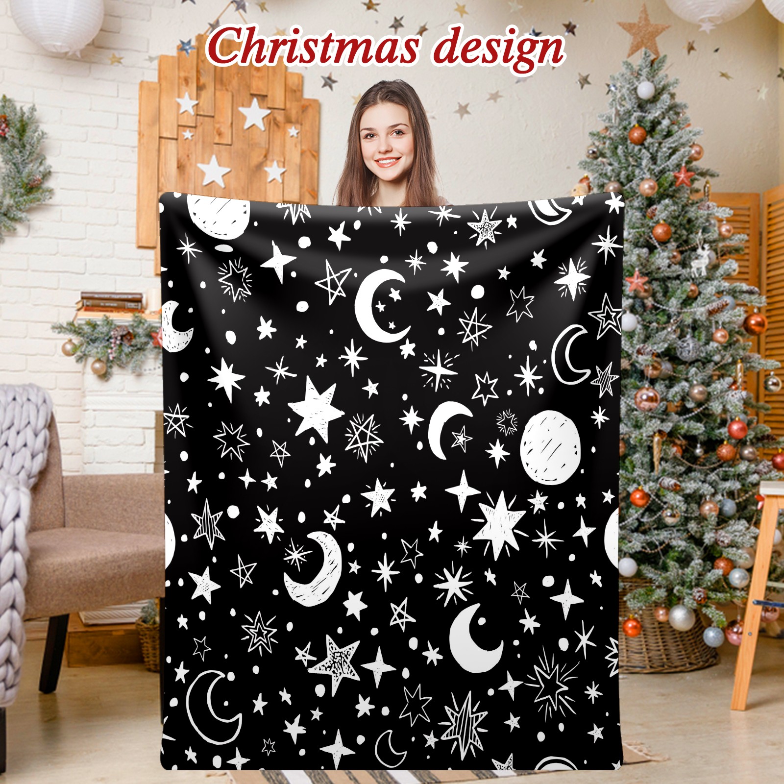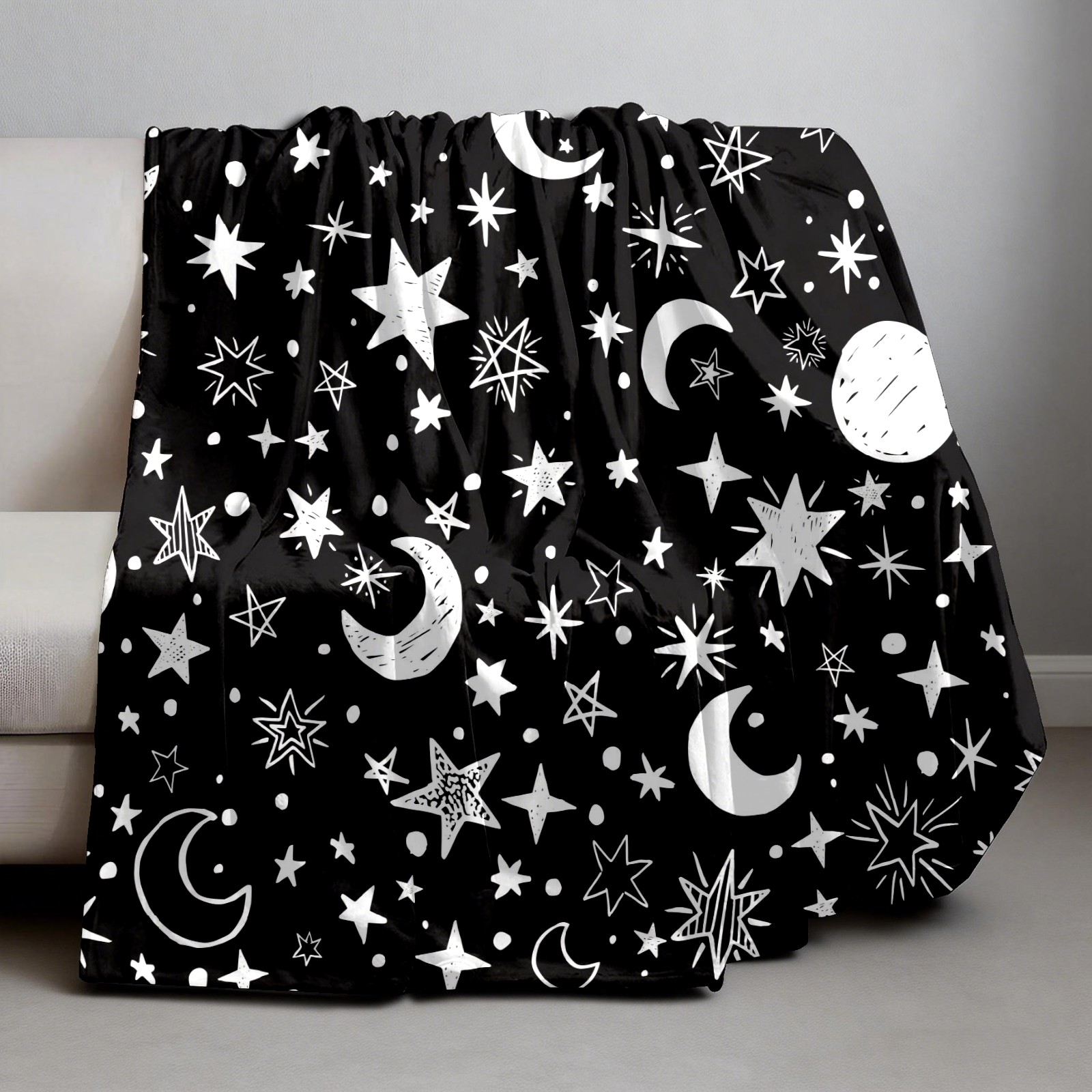 Counullo Flannel Throw Blanket, Ultra Soft Anti-Pilling Blanket for Couch & Bed, Lightweight Cozy Blanket for Travel, Home, Camping Gift - (30" x 39"), Moons Stars Black White Background Doodle