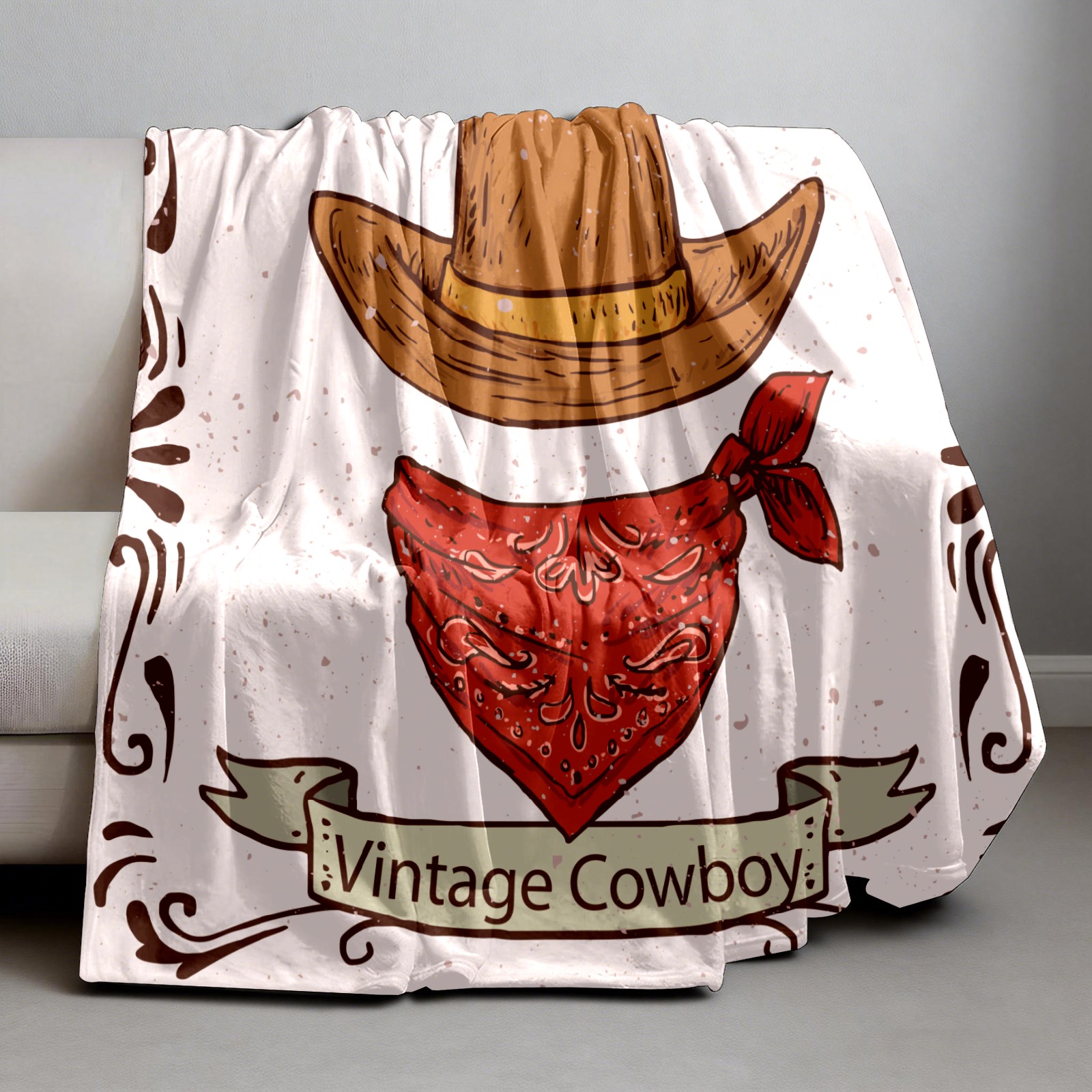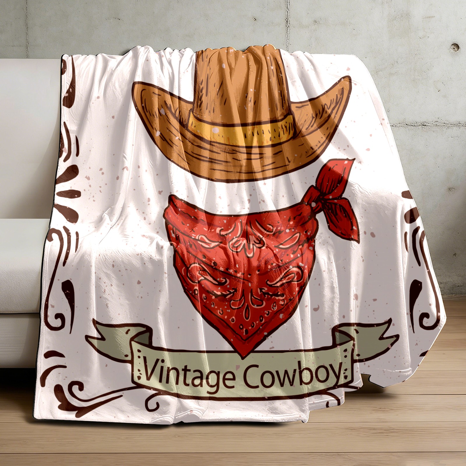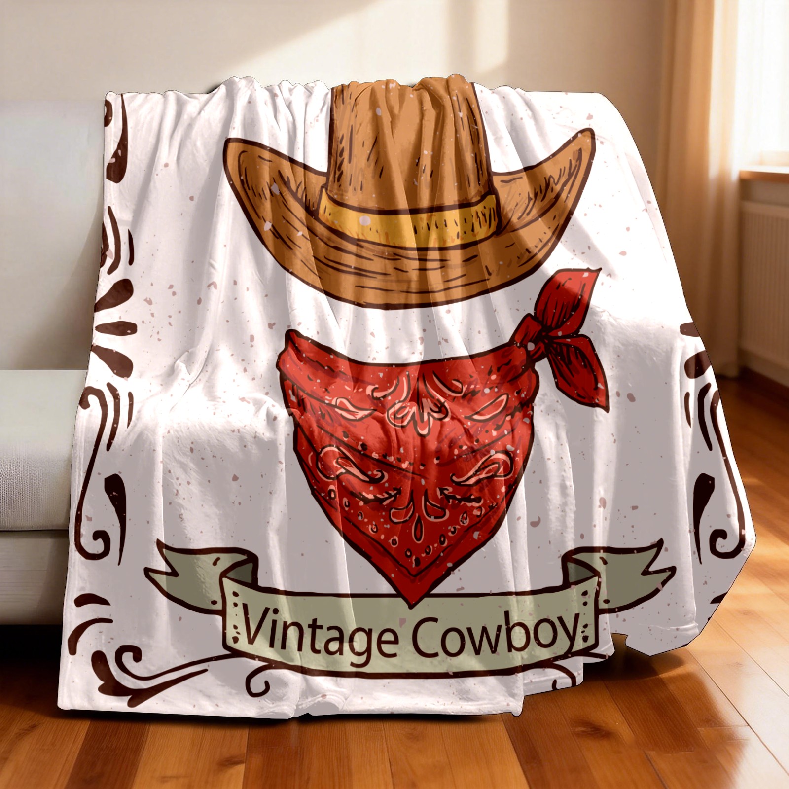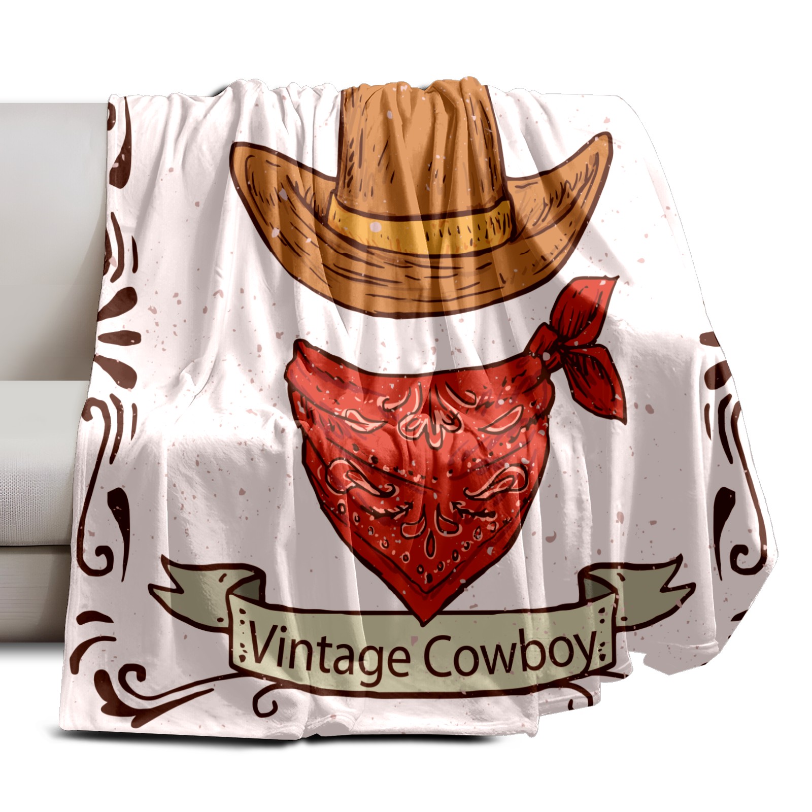 Counullo Flannel Throw Blanket, Ultra Soft Anti-Pilling Blanket for Couch & Bed, Lightweight Cozy Blanket for Travel, Home, Camping Gift - (30" x 39"), Retro Cowboy Hat Scarf