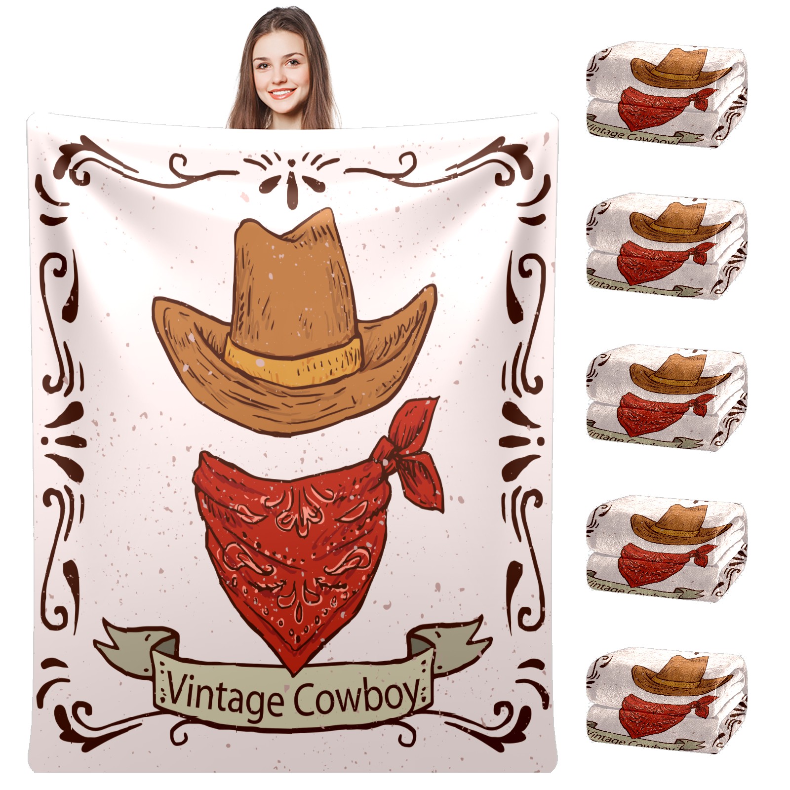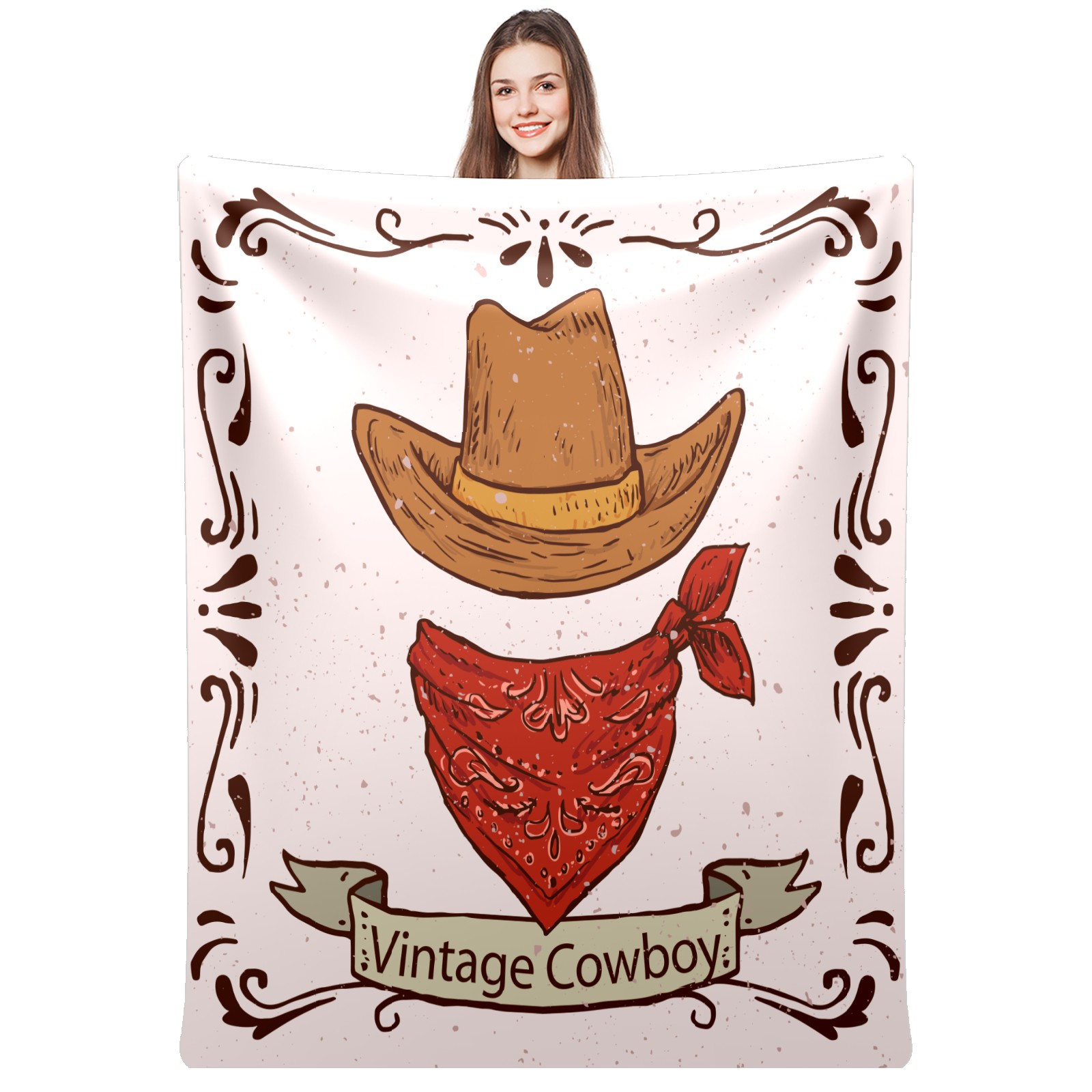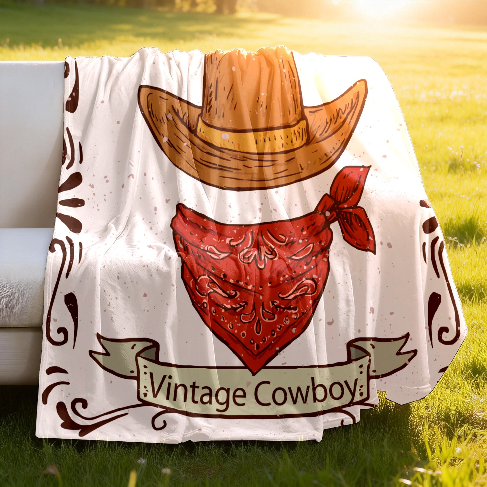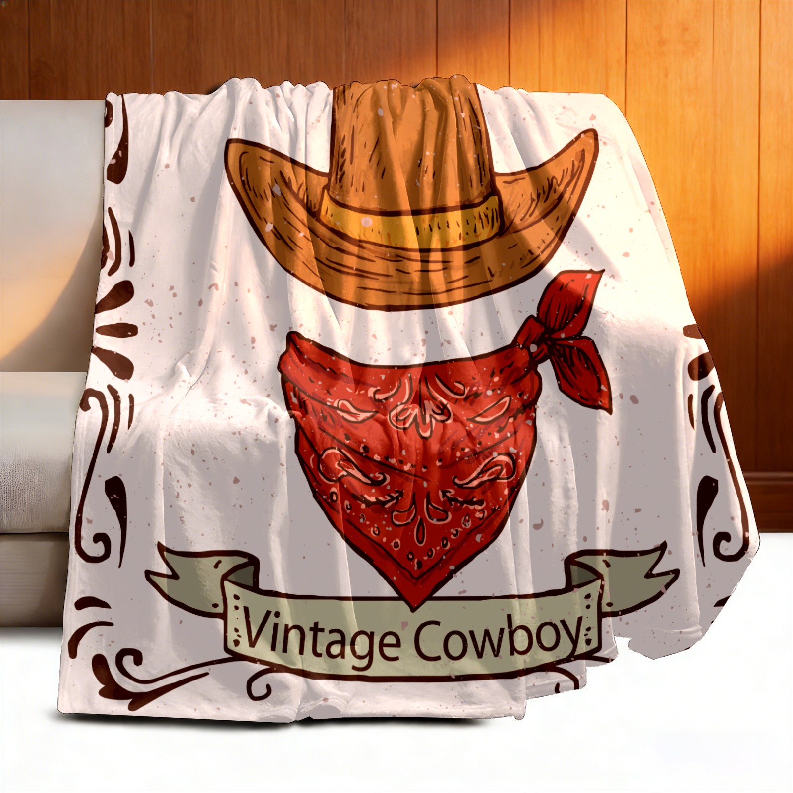Counullo Flannel Throw Blanket, Ultra Soft Anti-Pilling Blanket for Couch & Bed, Lightweight Cozy Blanket for Travel, Home, Camping Gift - (30" x 39"), Retro Cowboy Hat Scarf