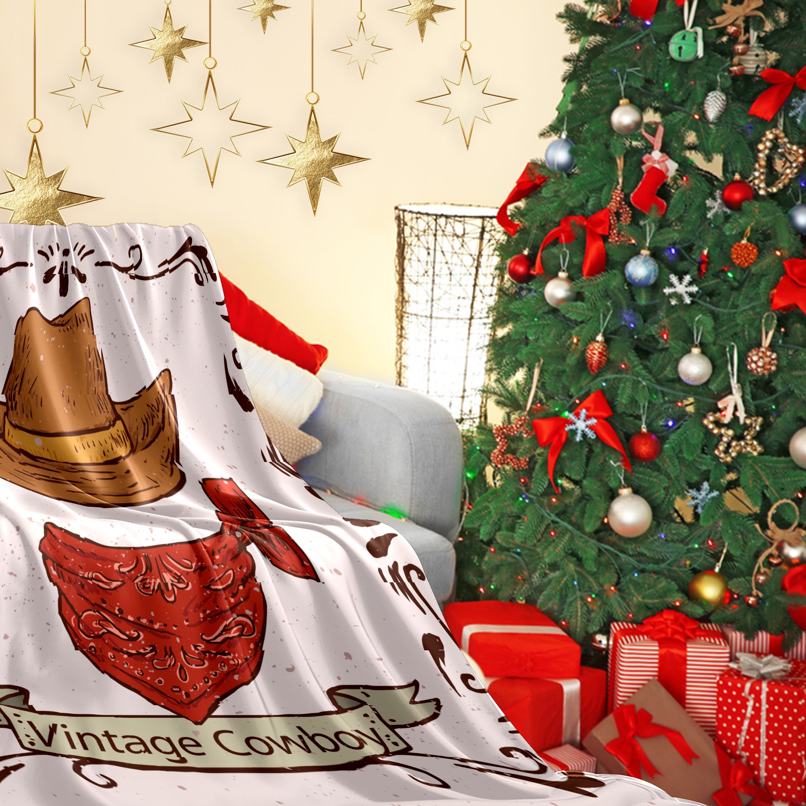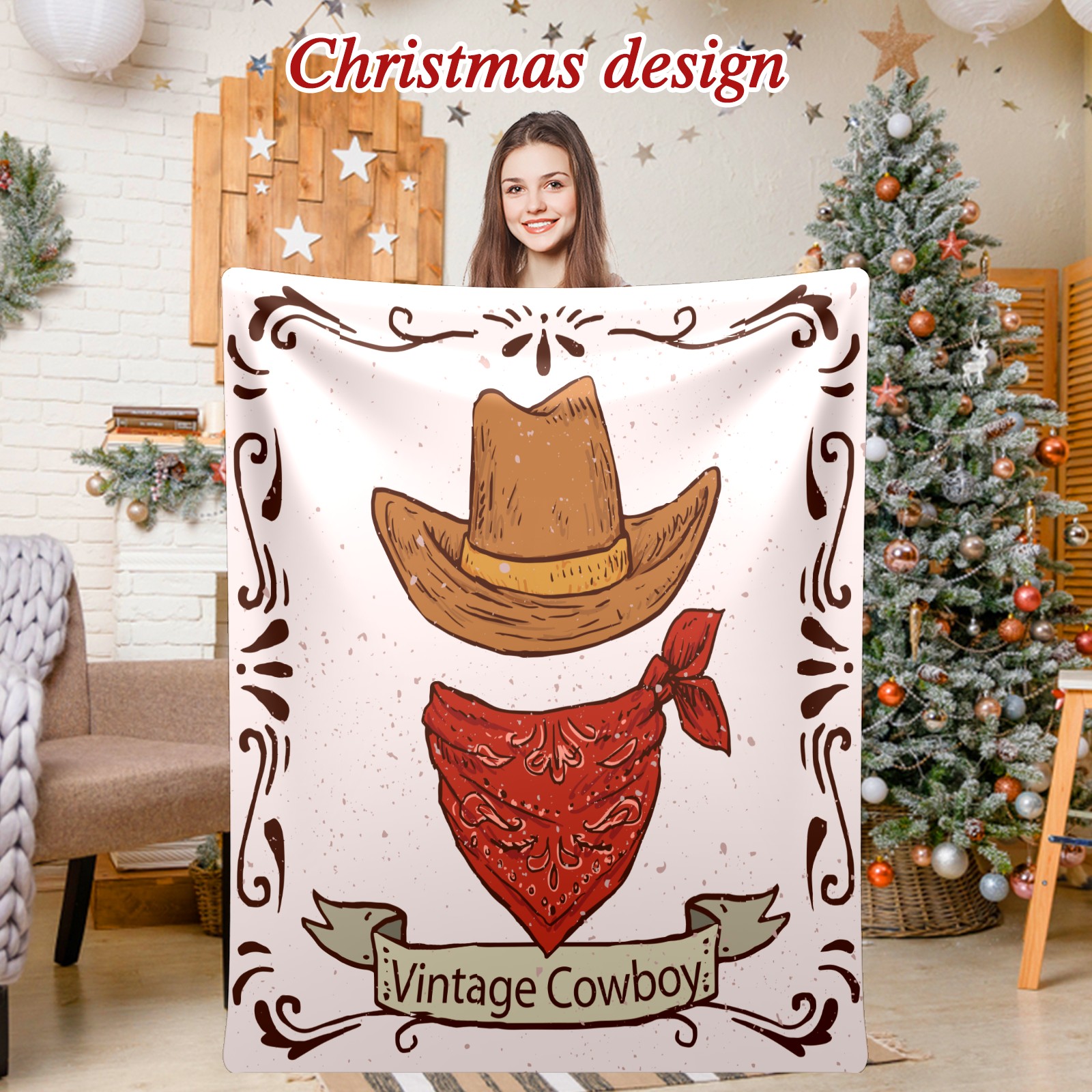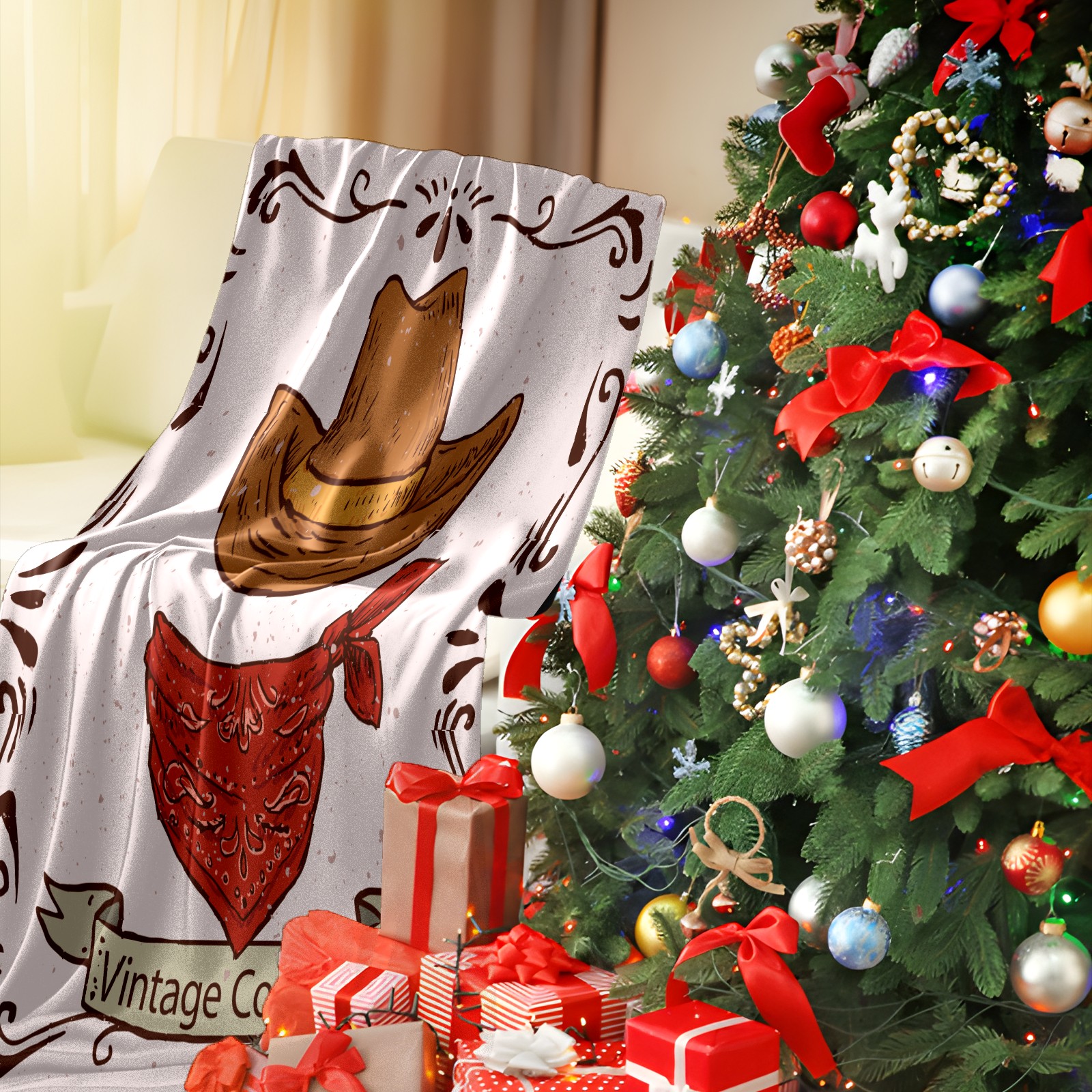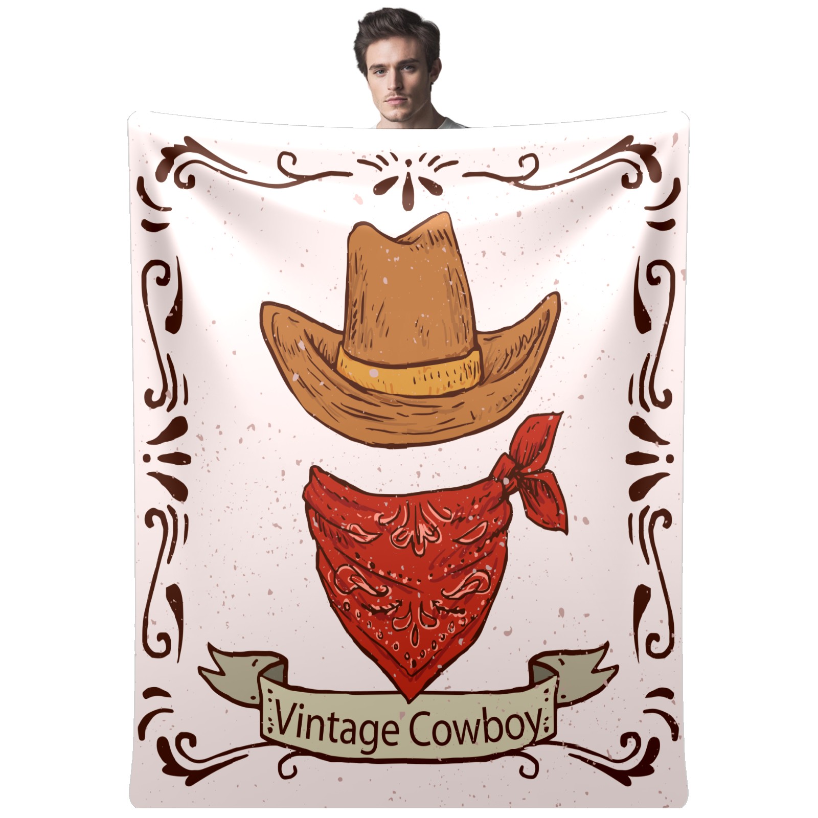 Counullo Flannel Throw Blanket, Ultra Soft Anti-Pilling Blanket for Couch & Bed, Lightweight Cozy Blanket for Travel, Home, Camping Gift - (30" x 39"), Retro Cowboy Hat Scarf