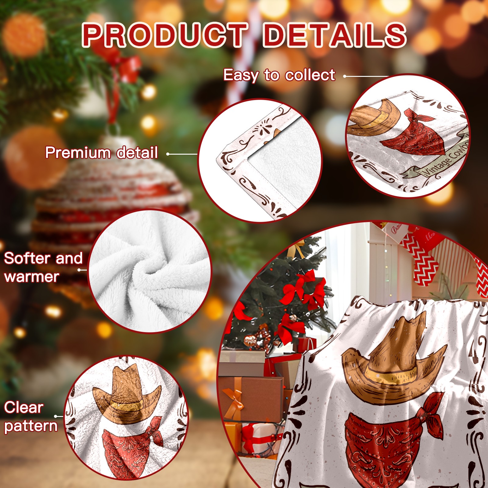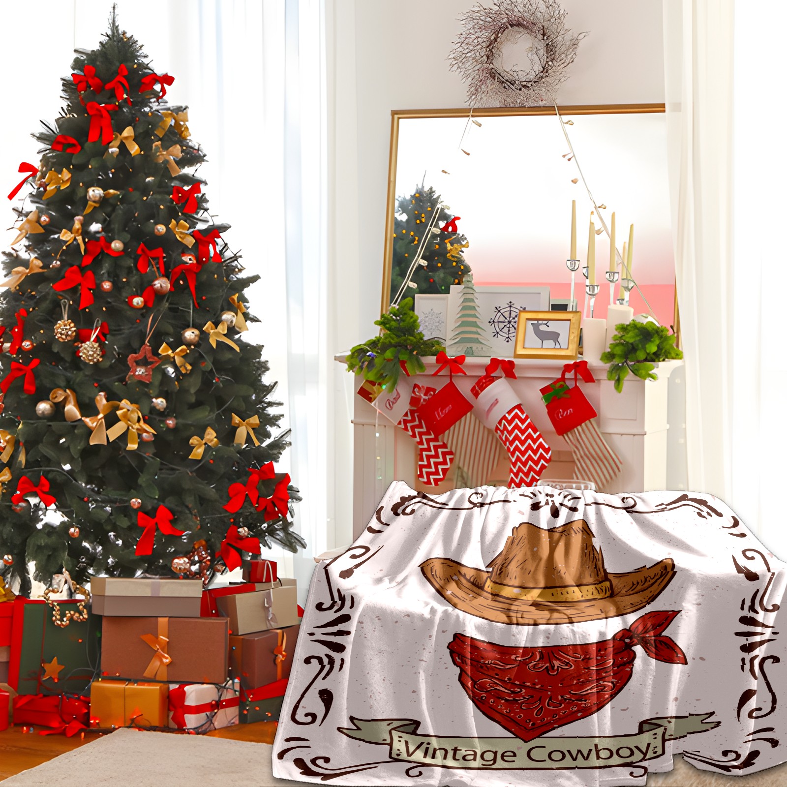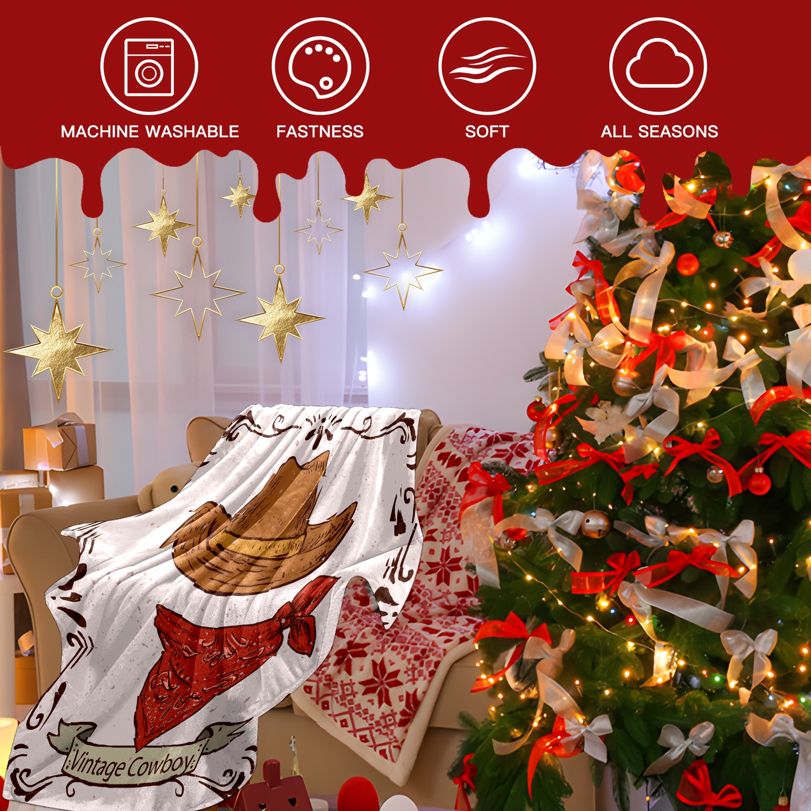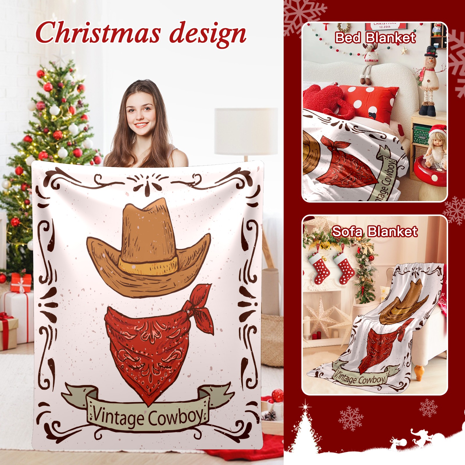 Counullo Flannel Throw Blanket, Ultra Soft Anti-Pilling Blanket for Couch & Bed, Lightweight Cozy Blanket for Travel, Home, Camping Gift - (30" x 39"), Retro Cowboy Hat Scarf