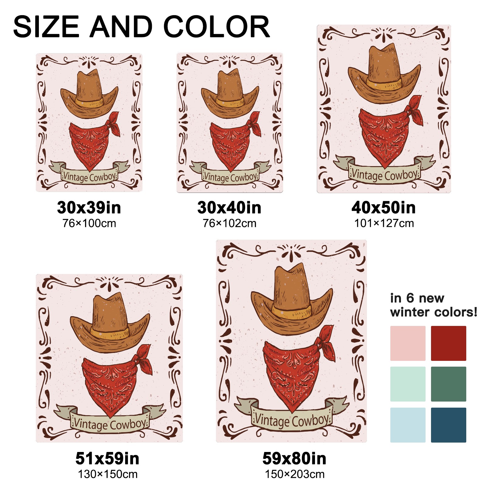 <strong></strong><p><strong>【Size】</strong>5 sizes. 30x39in/76x100cm; 30x40in/76x102cm; 40x50in/101x127cm; 51x59in /130x150cm; 59x80in/150x203cm <strong>【Product performance】</strong> &nbsp;</p><p>❤Skin-Friendly &amp; Breathable&nbsp;</p><p>❤Lightweight &amp; Folded tightly&nbsp;</p><p>❤Anti-pilling &amp; Anti-wrinkle &amp; Anti-allergy&nbsp;</p><p>❤Baby Sleep, Travel, Sofa, Nap Blanket , Bed Sheet</p>