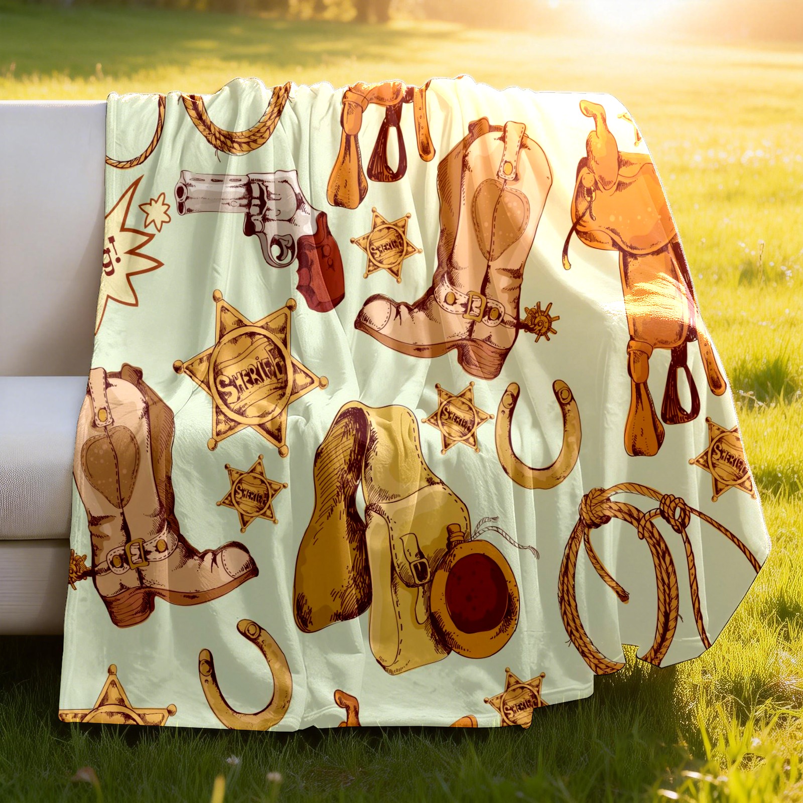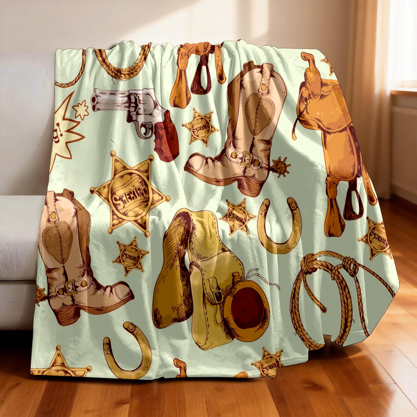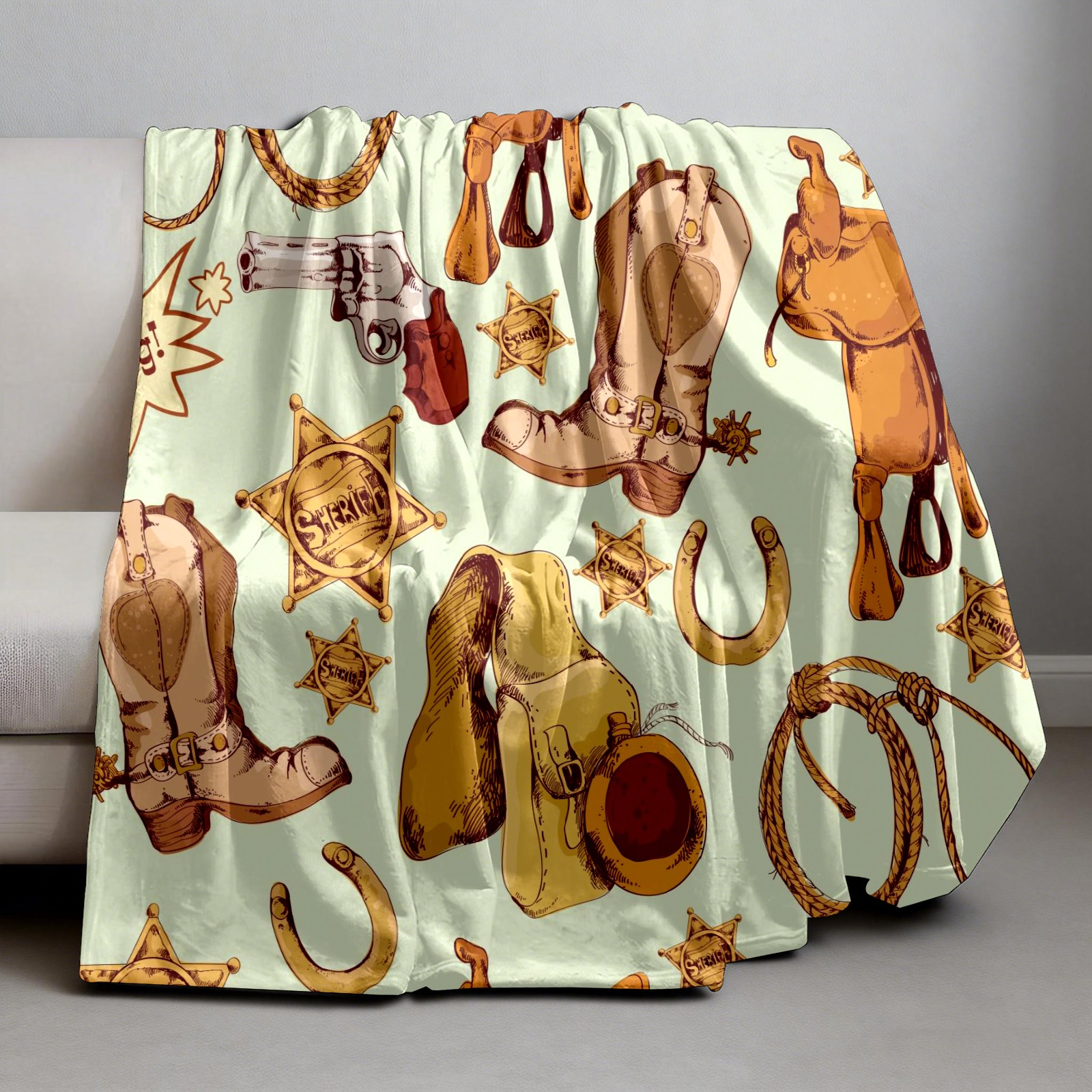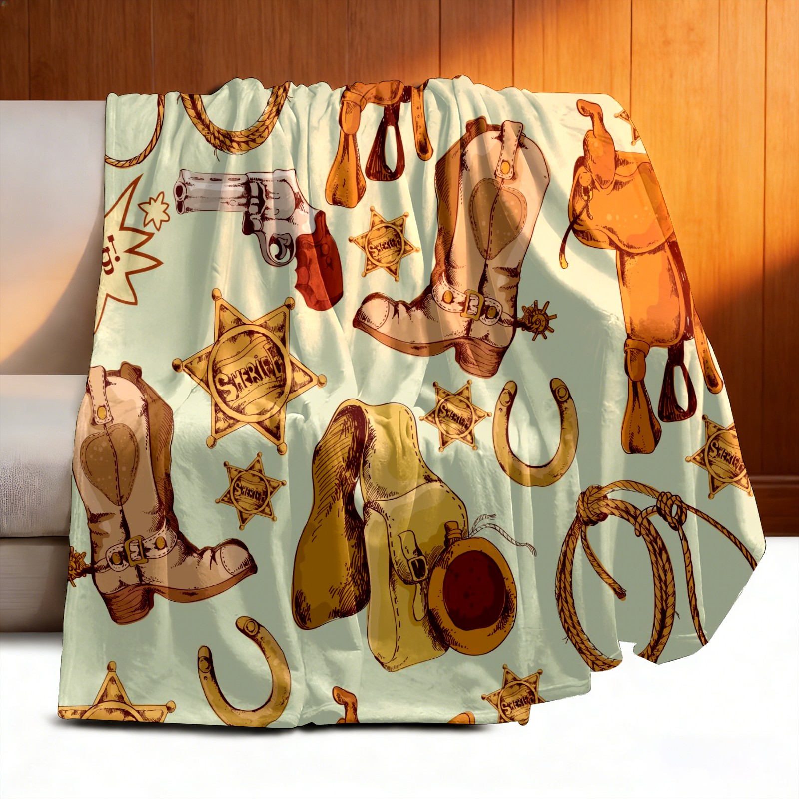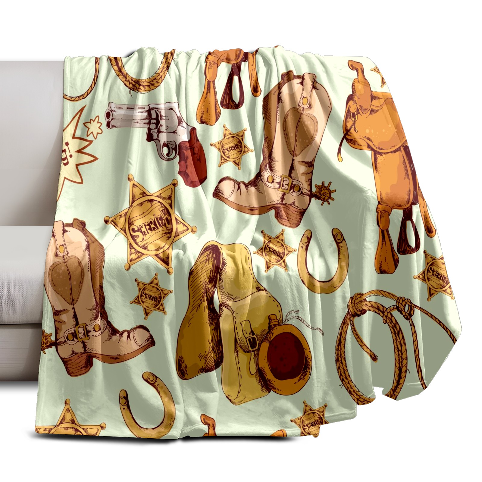 Counullo Flannel Throw Blanket, Ultra Soft Anti-Pilling Blanket for Couch & Bed, Lightweight Cozy Blanket for Travel, Home, Camping Gift - (30" x 39"), Wild West Cowboy Pattern