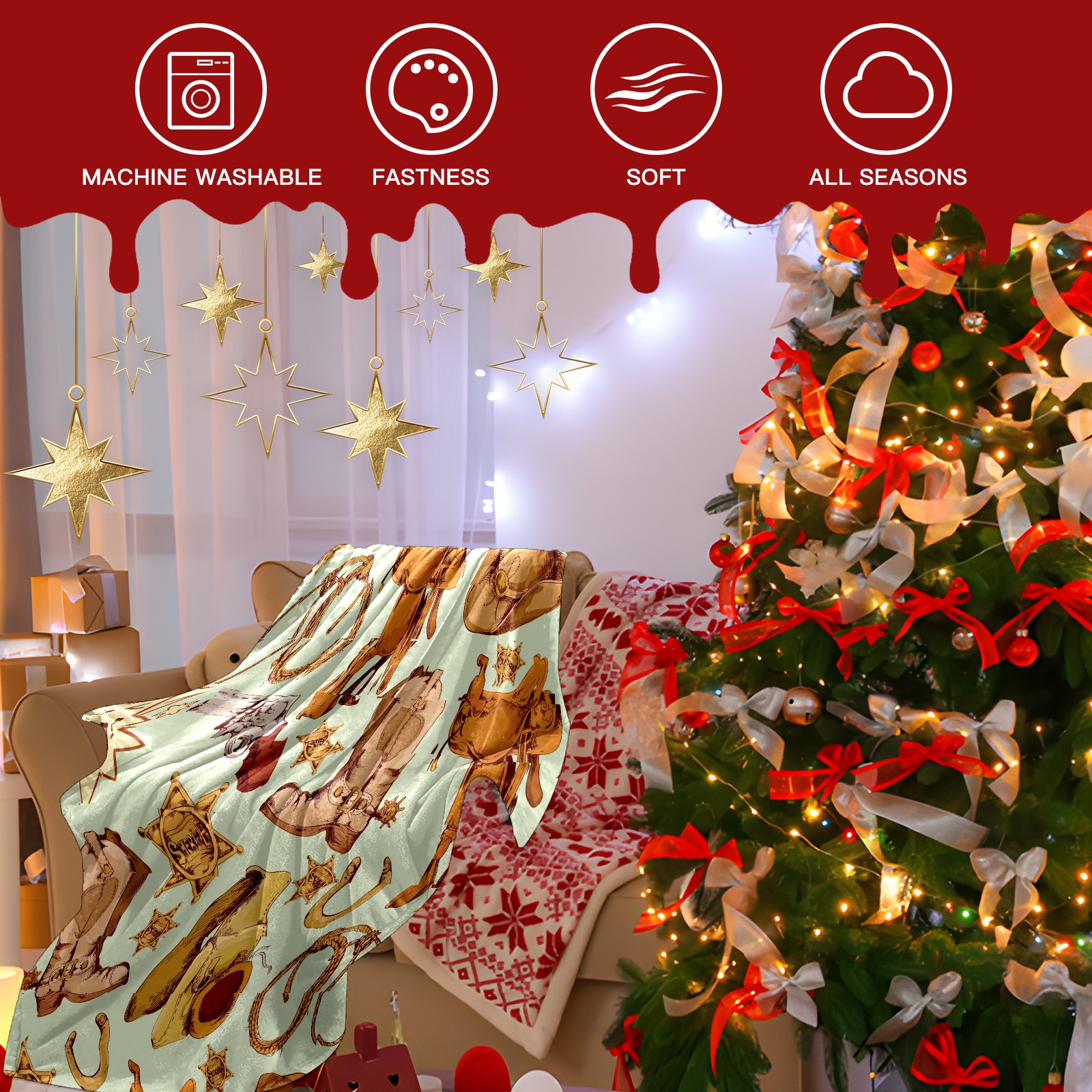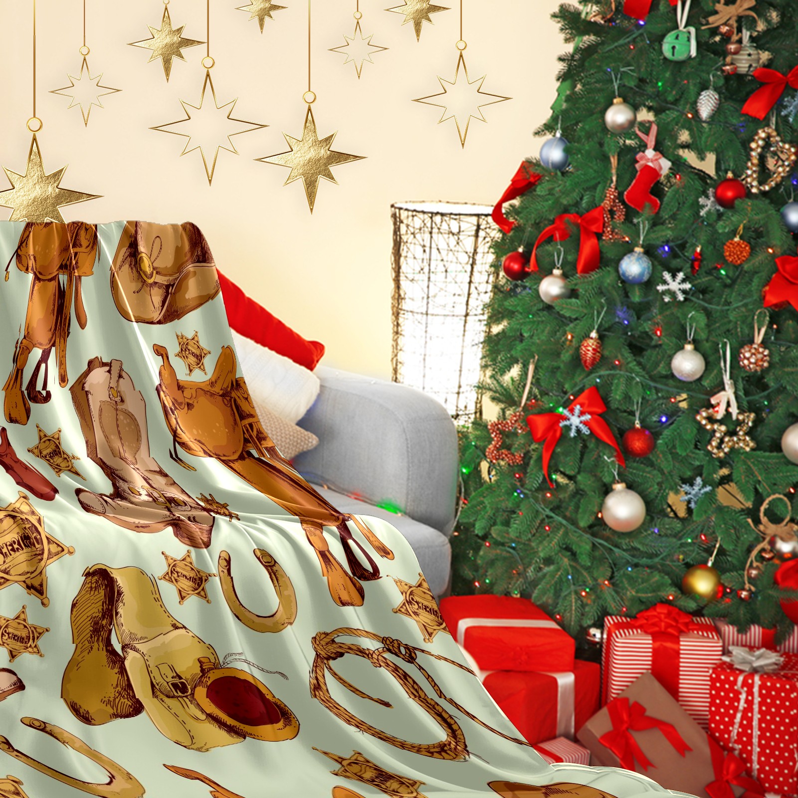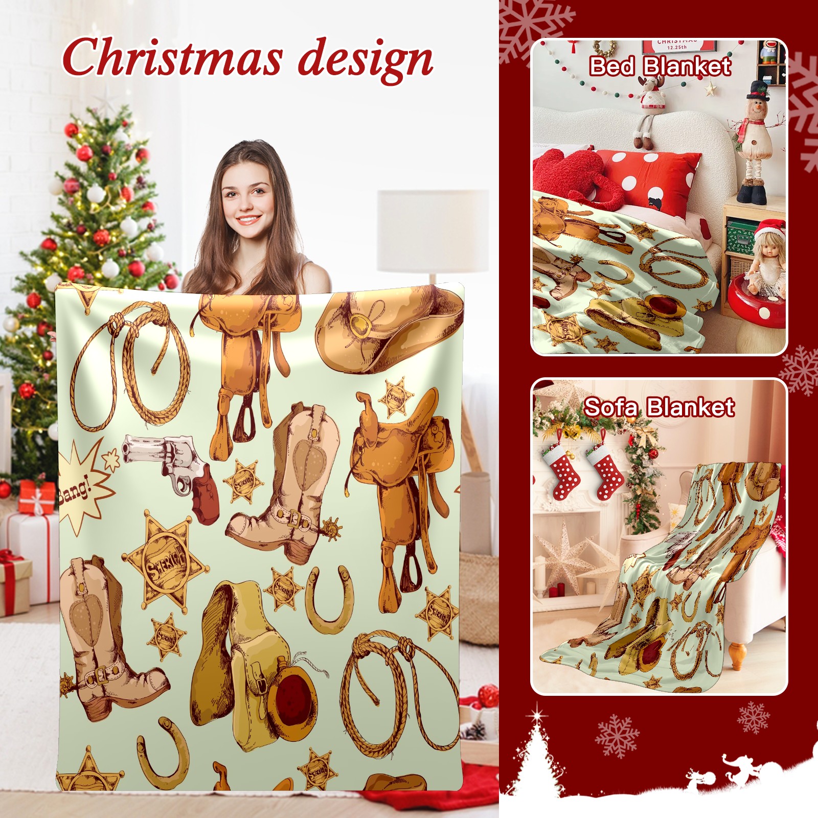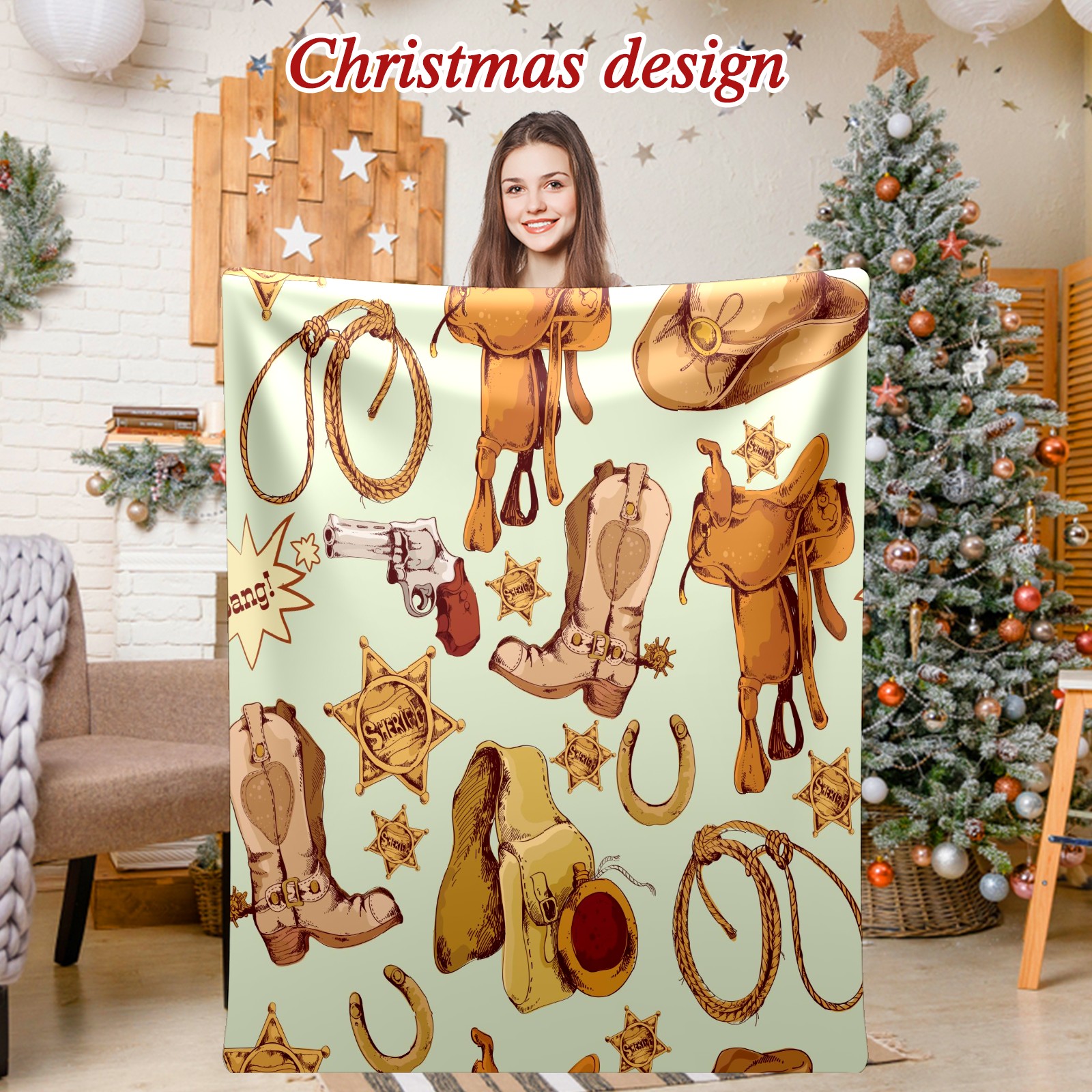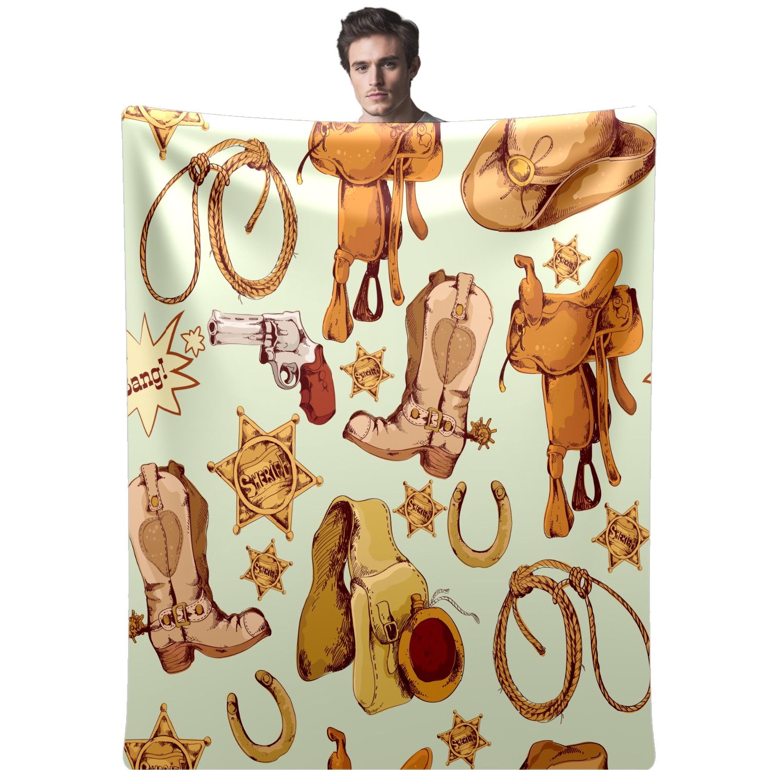 Counullo Flannel Throw Blanket, Ultra Soft Anti-Pilling Blanket for Couch & Bed, Lightweight Cozy Blanket for Travel, Home, Camping Gift - (30" x 39"), Wild West Cowboy Pattern