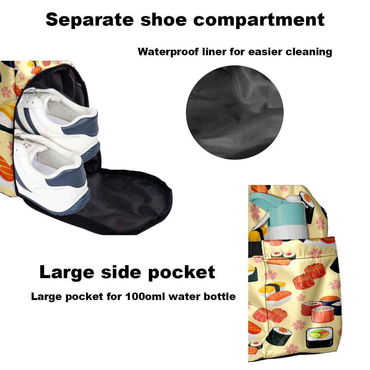 • Превосходные характеристики и материалы: Доступен в нескольких размерах: 22 см × 48 см × 35 см / 8,7 дюймов × 18,9 дюймов × 13,8 дюймов. Изготовлен из высококачественной саржевой ткани, легкий, прочный и долговечный. Научно организованное хранение: Просторное основное отделение вмещает одежду и обувь; удобный карман для хранения мелких предметов, таких как наушники и телефоны; вентилируемое отделение для обуви (подходит для обуви 10-го размера) + водонепроницаемый мешок для разделения сухих и влажных вещей и предотвращения запаха. Универсальность: Может использоваться как спортивная сумка, дорожная сумка или повседневная сумка, удовлетворяя различные потребности, такие как игра в пиклбол, поездки на выходные и ночевки в больнице. Идеальная интеграция для фитнеса и поездок на работу: Разработан для активного образа жизни, подходит для всего, от занятий на велотренажерах и силовых тренировок до послешкольных обедов и коротких деловых поездок. Сочетание функциональности и эстетики: оптимизированное расположение карманов уравновешивает практичность и стиль, удовлетворяя как функциональные, так и эстетические потребности.