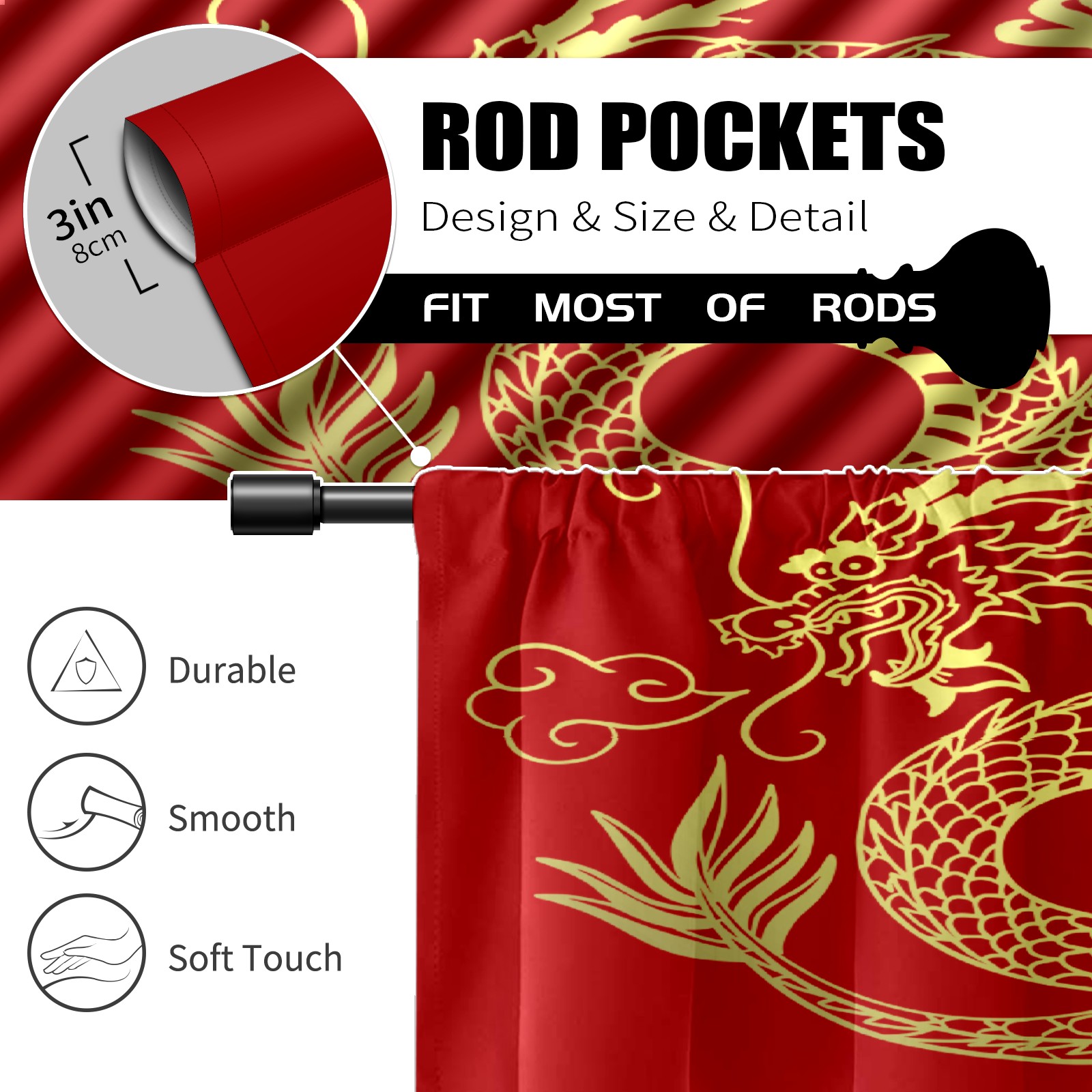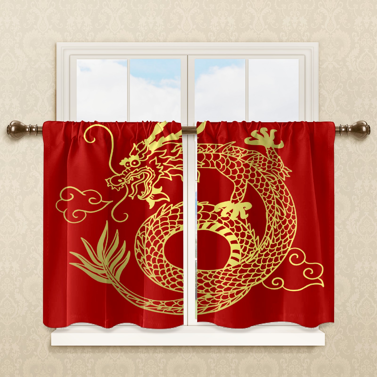 Шторы-панно для дома, декоративные драпировки для гостиной и спальни, легкие и прочные, Traditional Chinese Dragon On Red