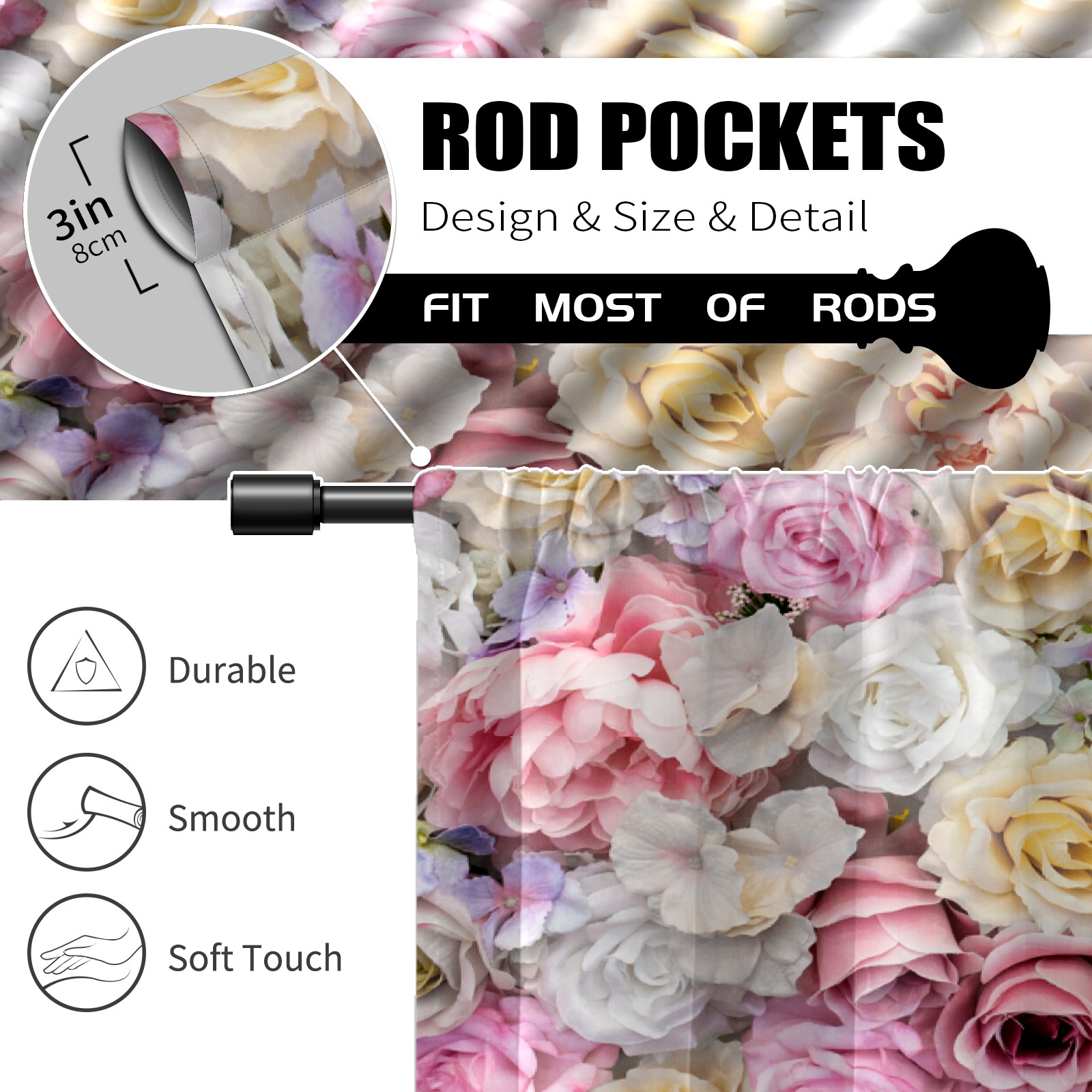 Шторы-панно для дома, декоративные драпировки для гостиной и спальни, легкие и прочные, White And Pink Roses