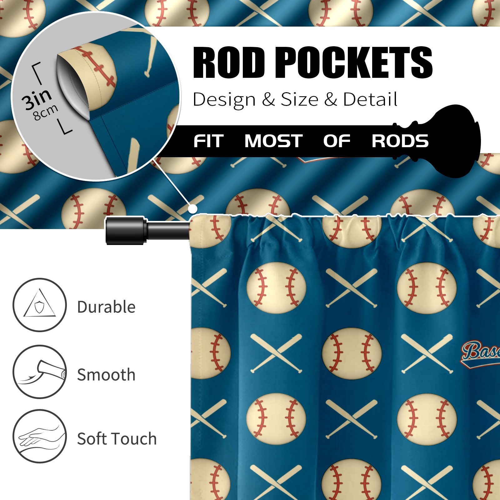 Шторы-панно для дома, декоративные драпировки для гостиной и спальни, легкие и прочные, Baseball