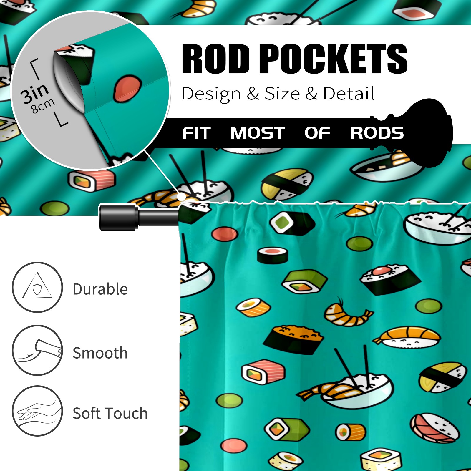 Шторы-панно для дома, декоративные драпировки для гостиной и спальни, легкие и прочные, Japenese Food Sushi