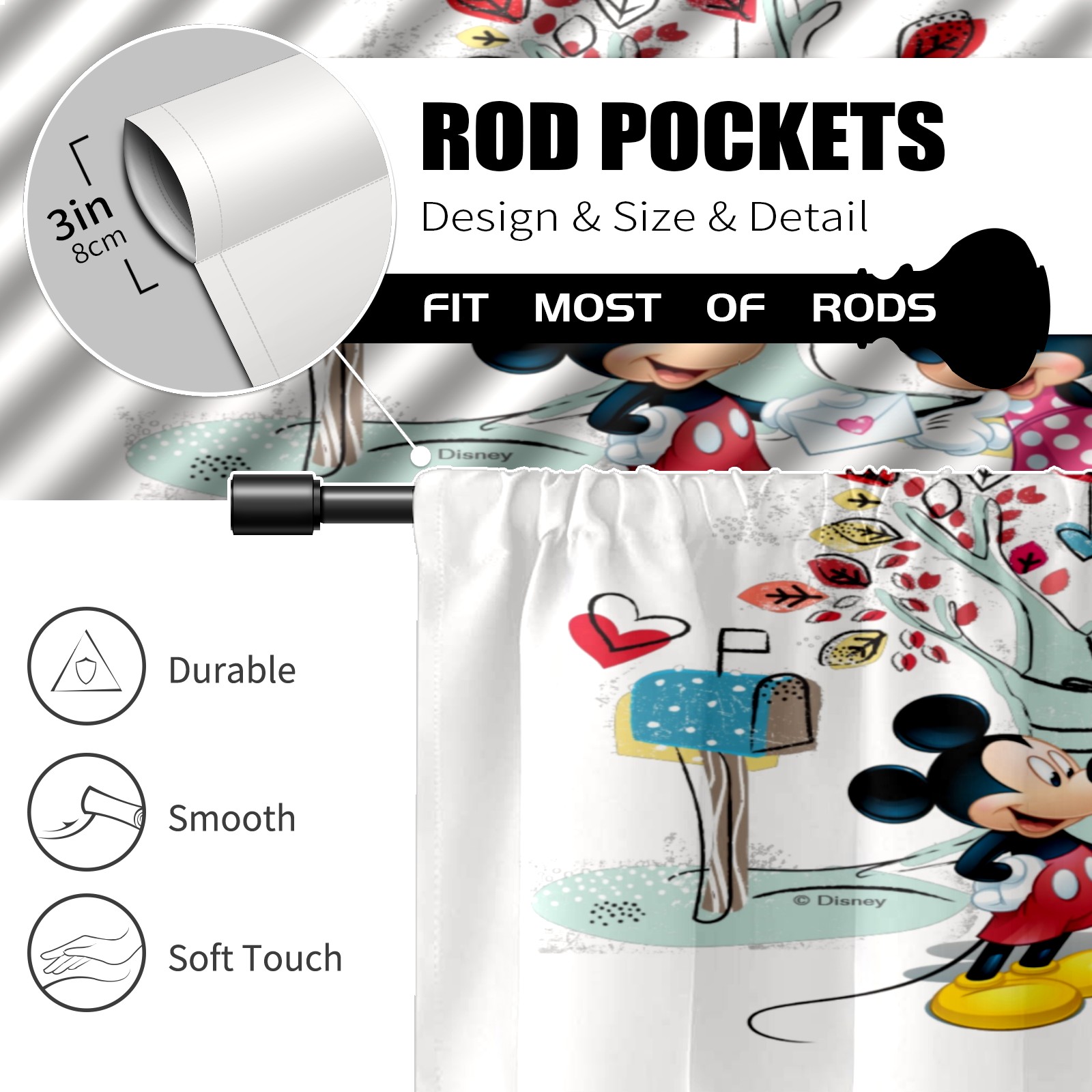 Шторы-панно для дома, декоративные драпировки для гостиной и спальни, легкие и прочные, Mickey Mouse Minnie Valentine's Day