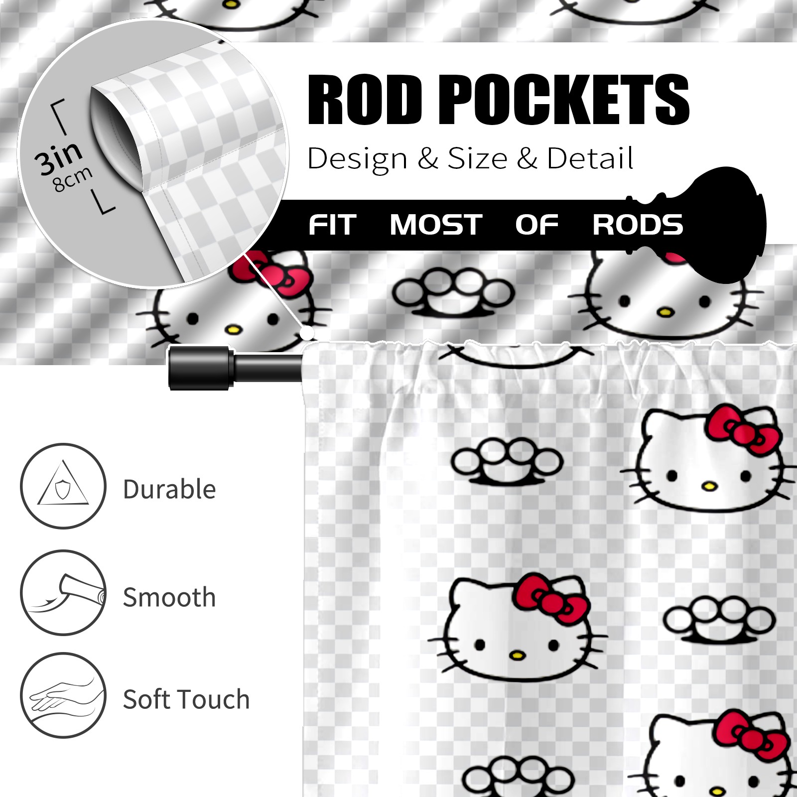 Шторы-панно для дома, декоративные драпировки для гостиной и спальни, легкие и прочные, Hello Kitty Pattern