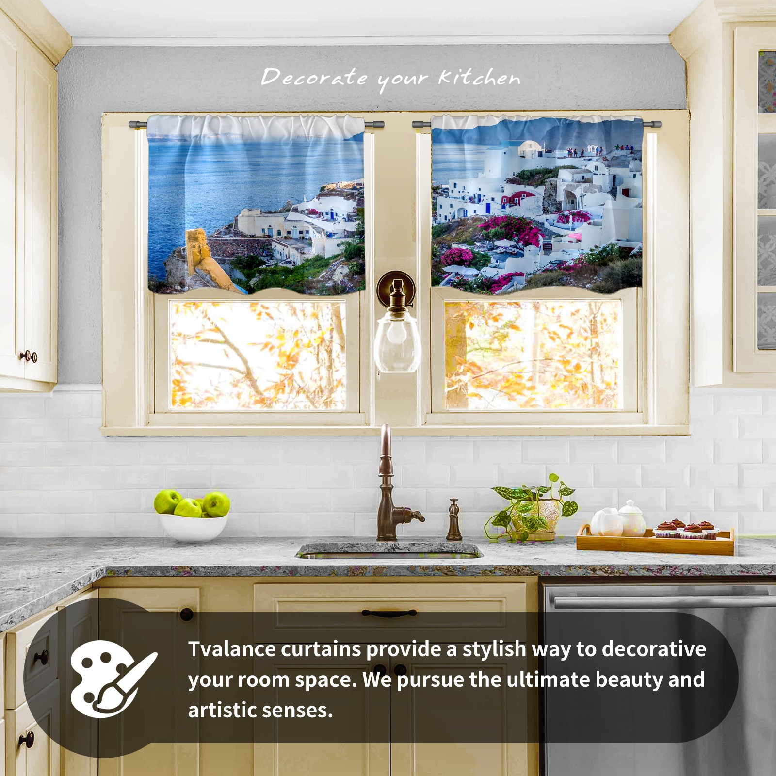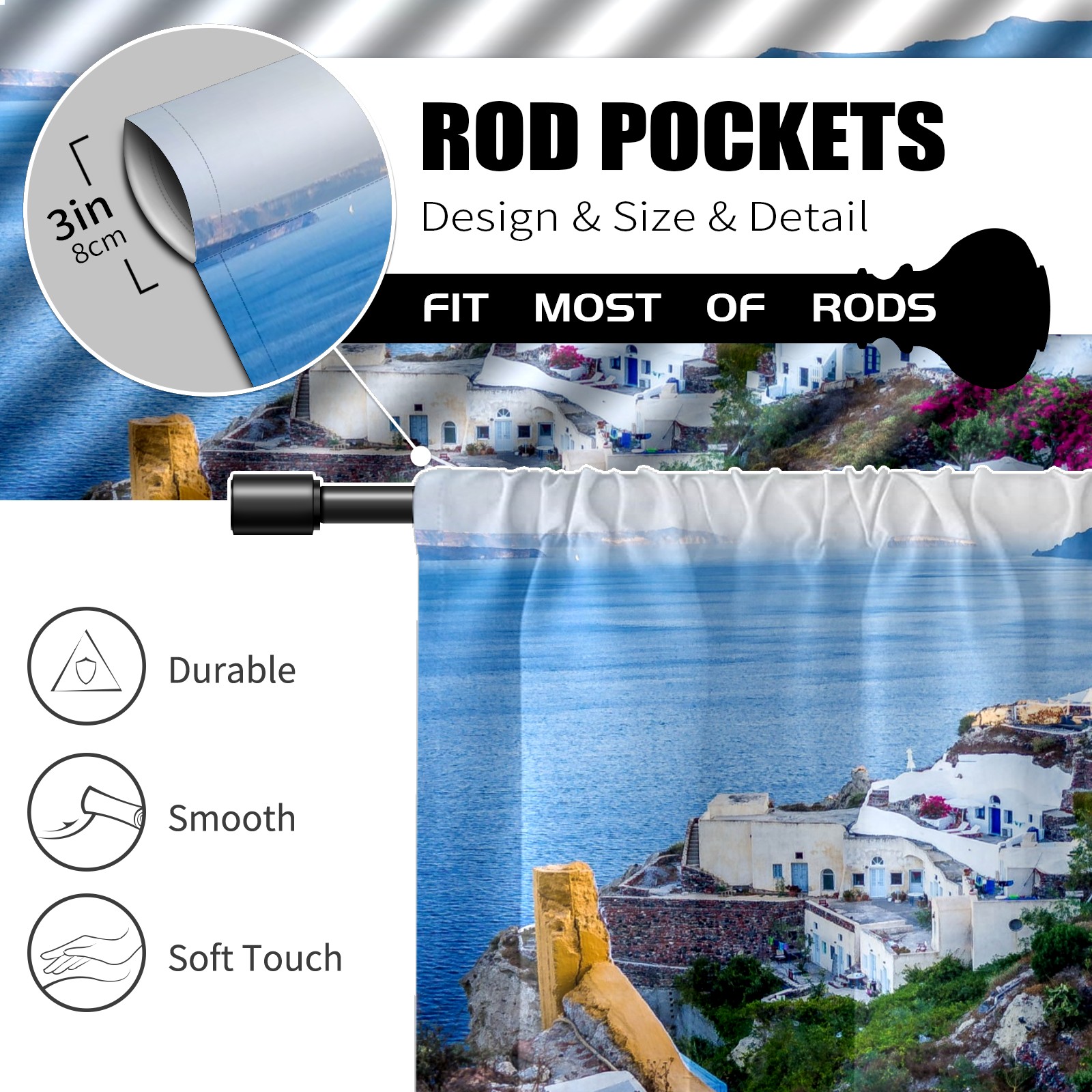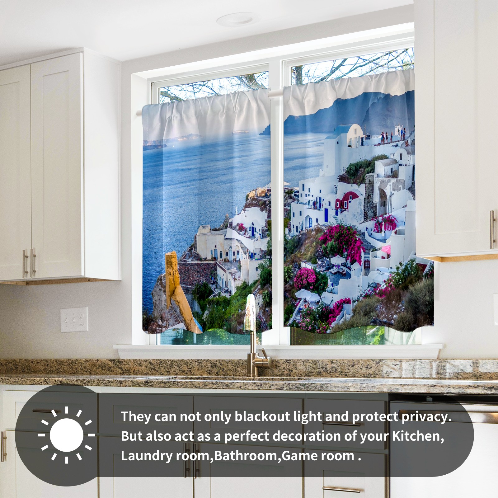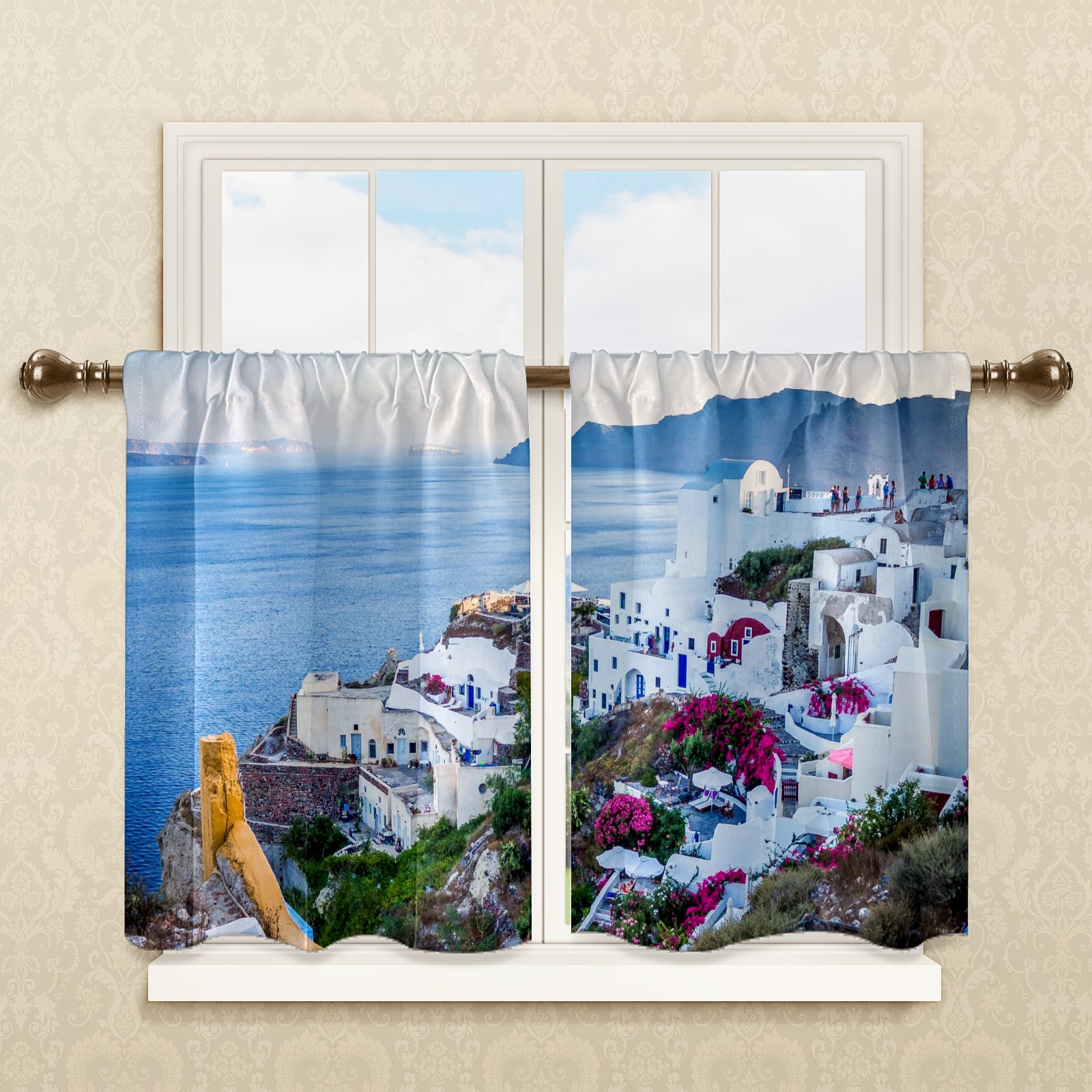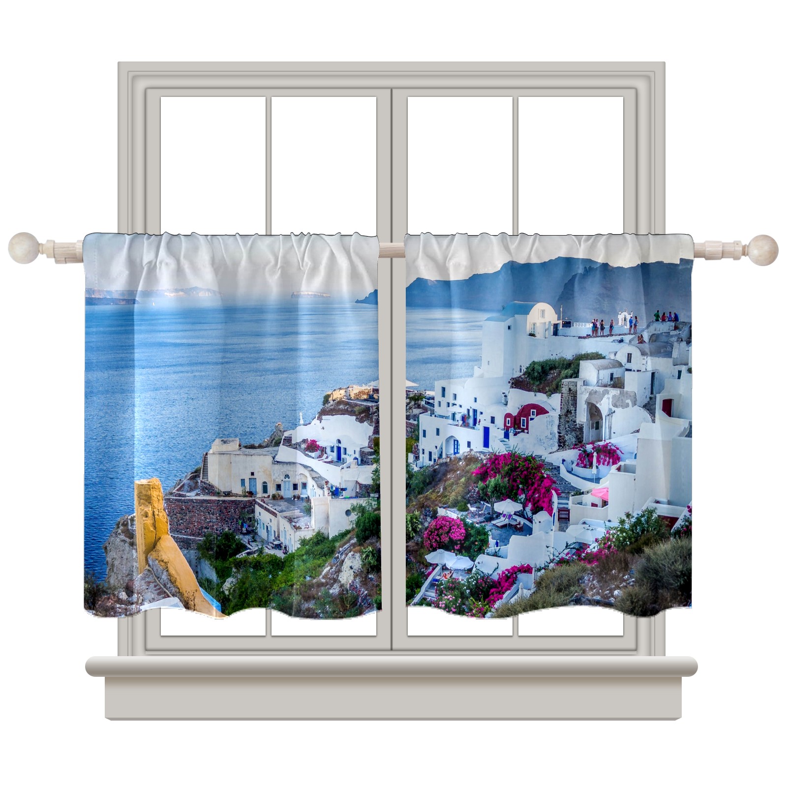 Шторы-панно для дома, декоративные драпировки для гостиной и спальни, легкие и прочные, Santorini Village Greece Island Sea