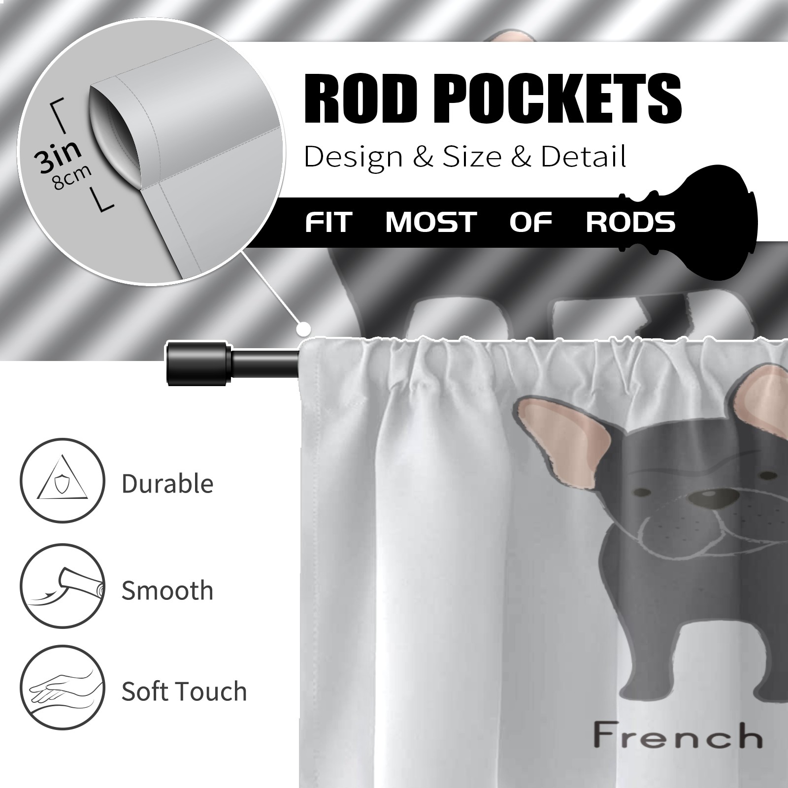 Шторы-панно для дома, декоративные драпировки для гостиной и спальни, легкие и прочные, Hand Drawn French Bulldog-01