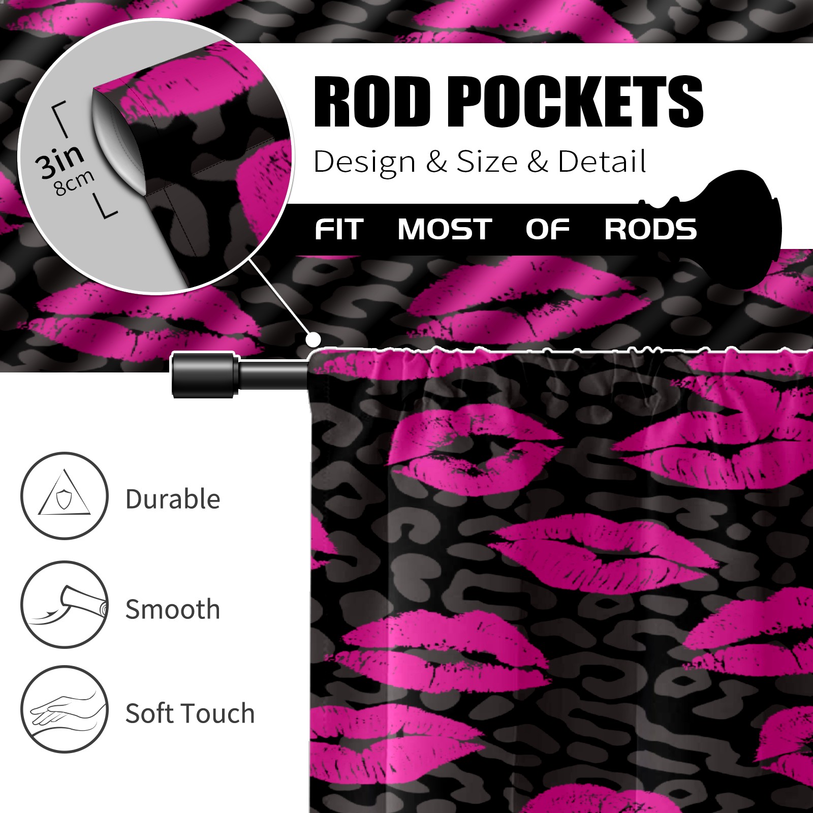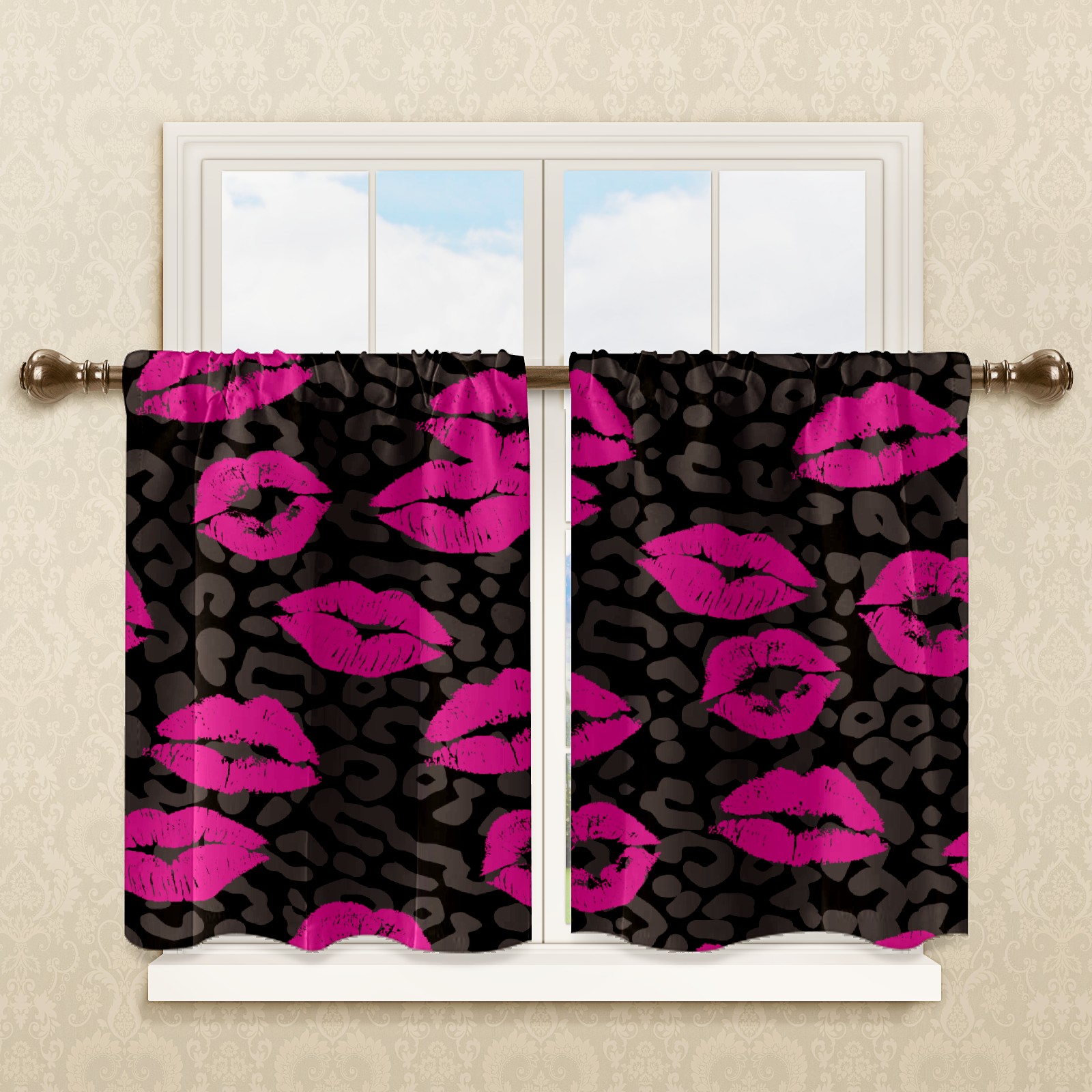 Шторы-панно для дома, декоративные драпировки для гостиной и спальни, легкие и прочные, Pink Lips Pattern Leopard Grain
