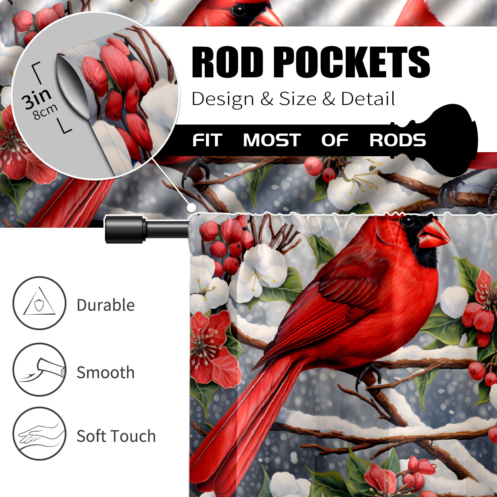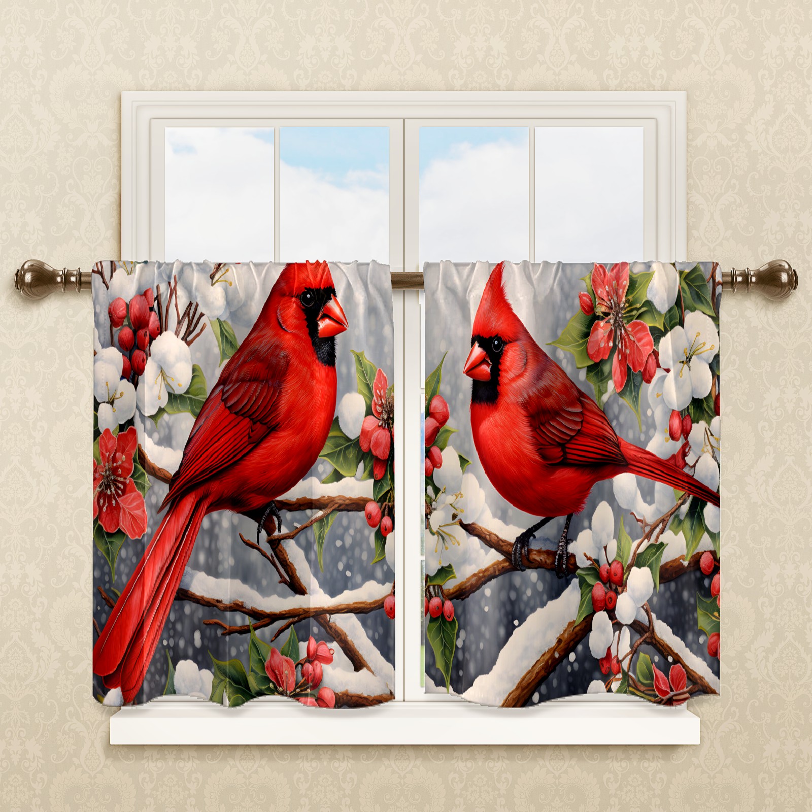 Шторы-панно для дома, декоративные драпировки для гостиной и спальни, легкие и прочные, Christmas Cardinal