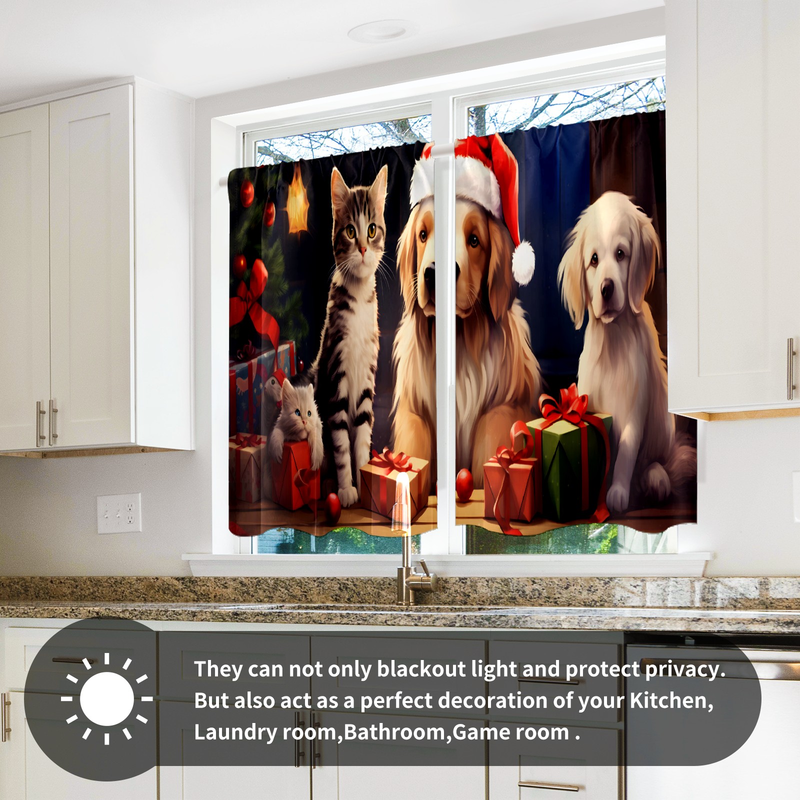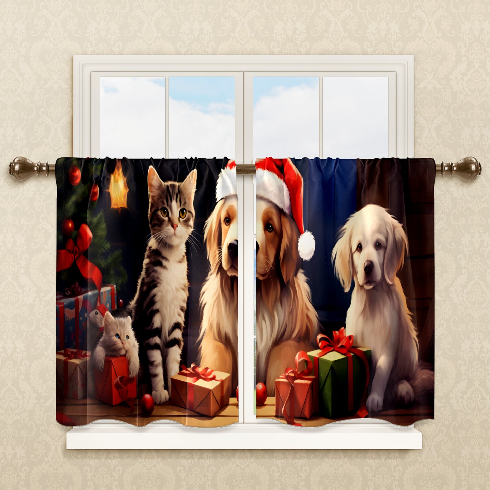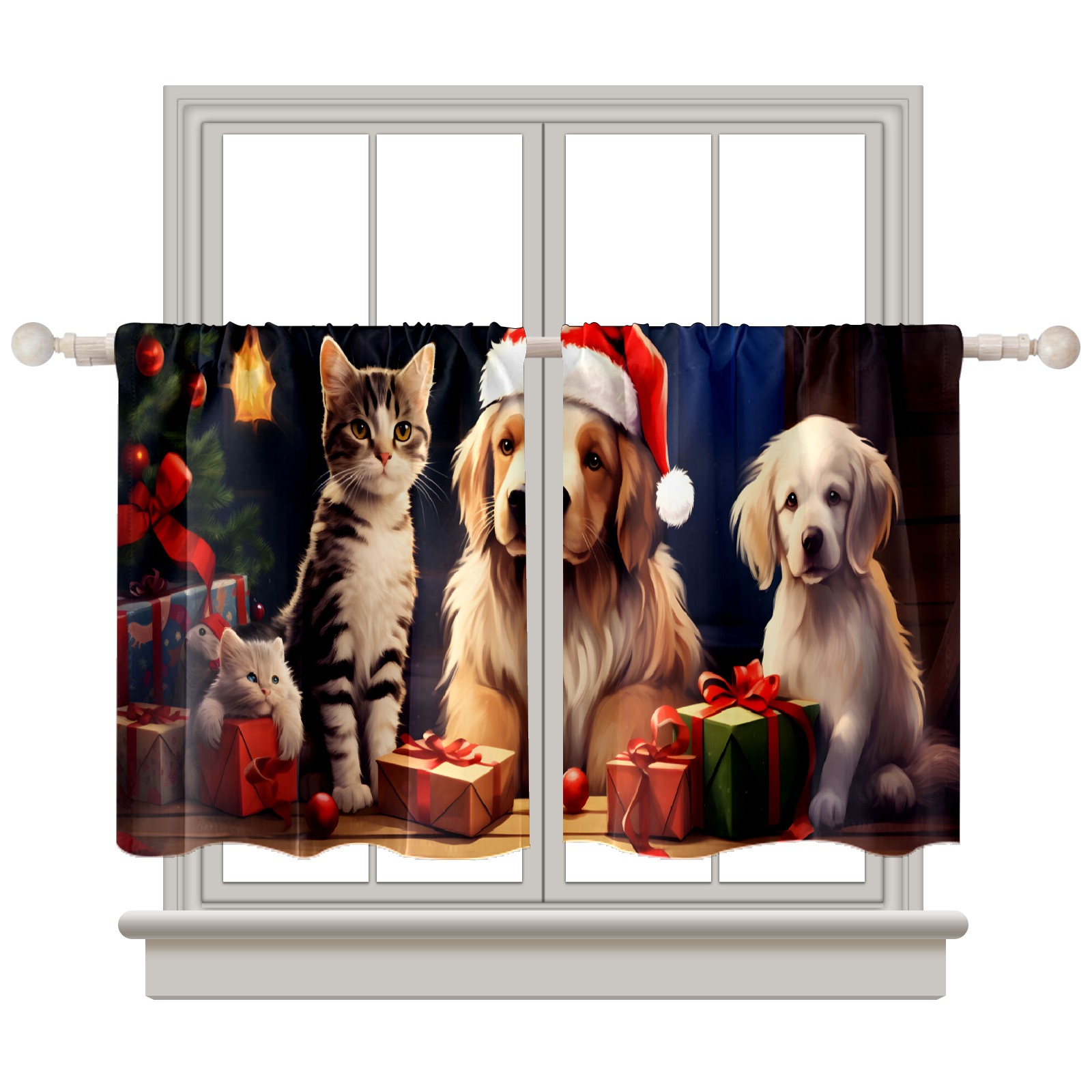 Шторы-панно для дома, декоративные драпировки для гостиной и спальни, легкие и прочные, Christmas Cats And Dogs