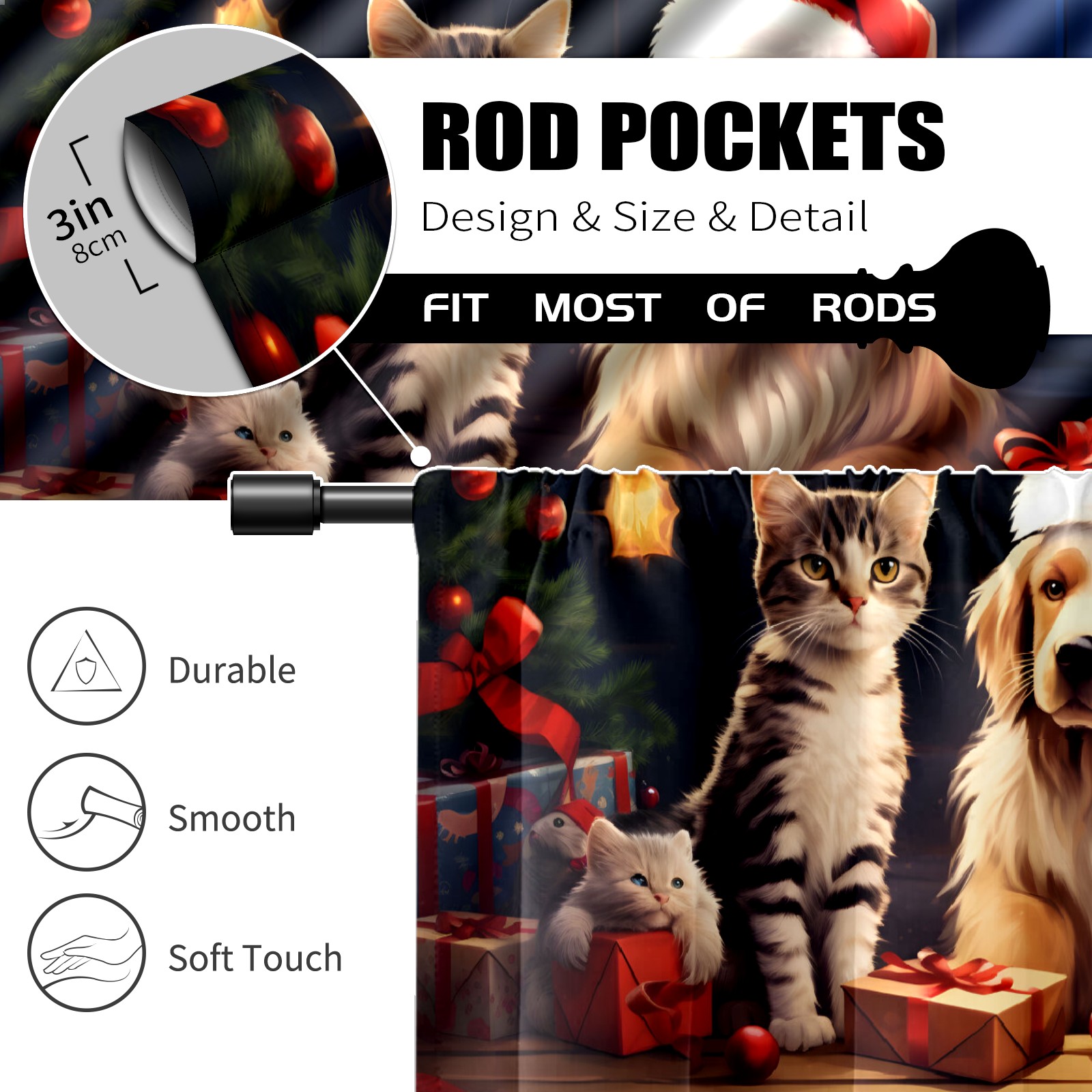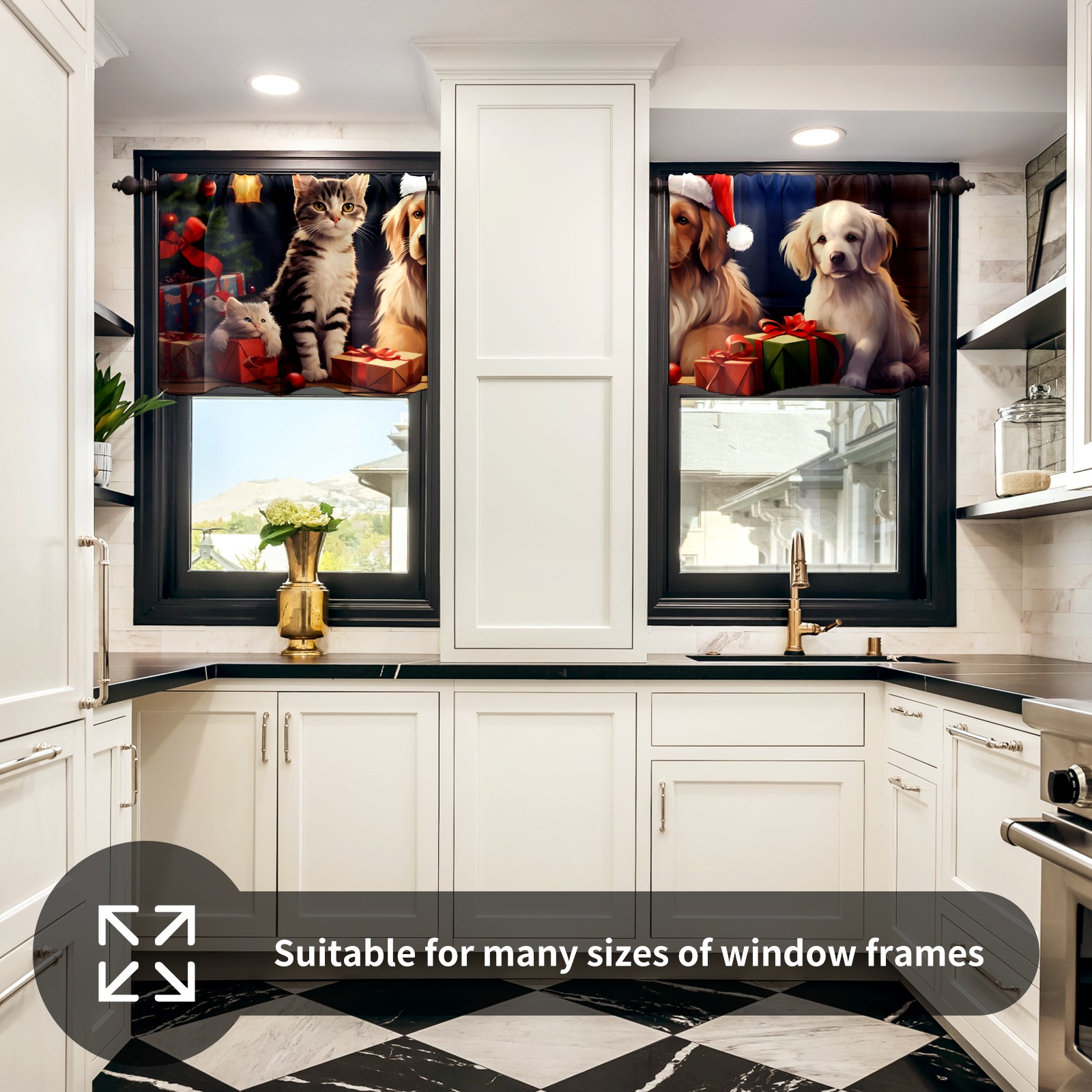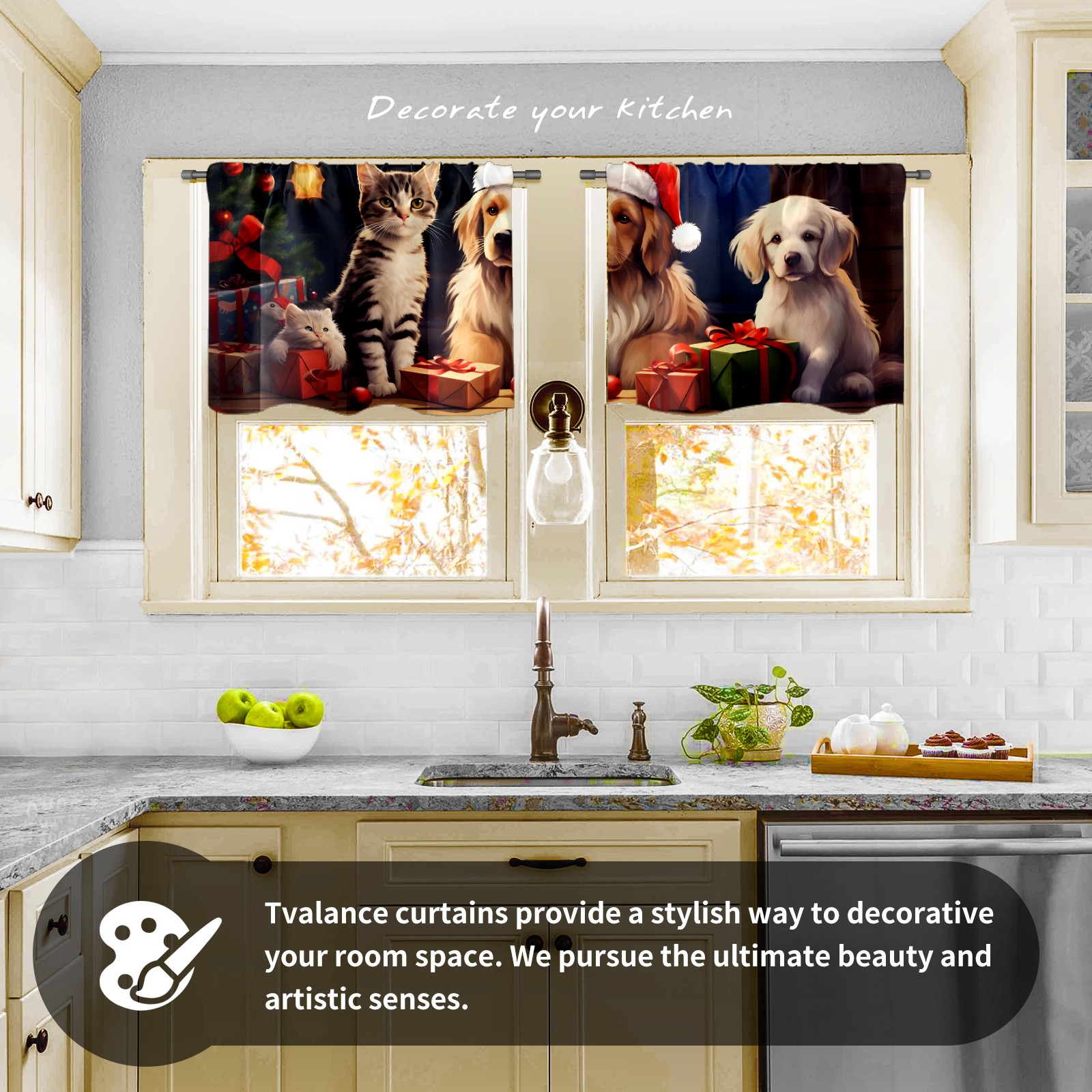 Шторы-панно для дома, декоративные драпировки для гостиной и спальни, легкие и прочные, Christmas Cats And Dogs