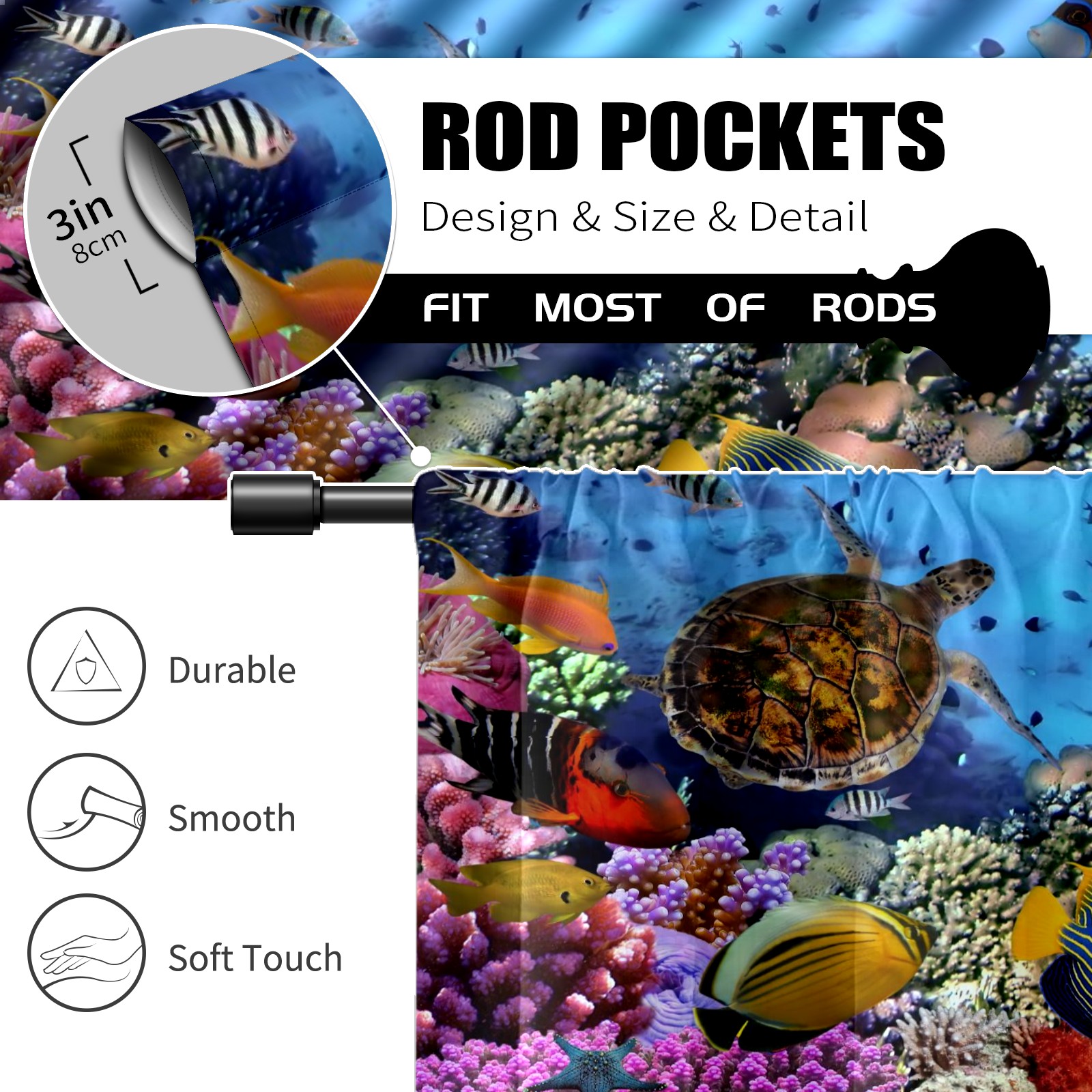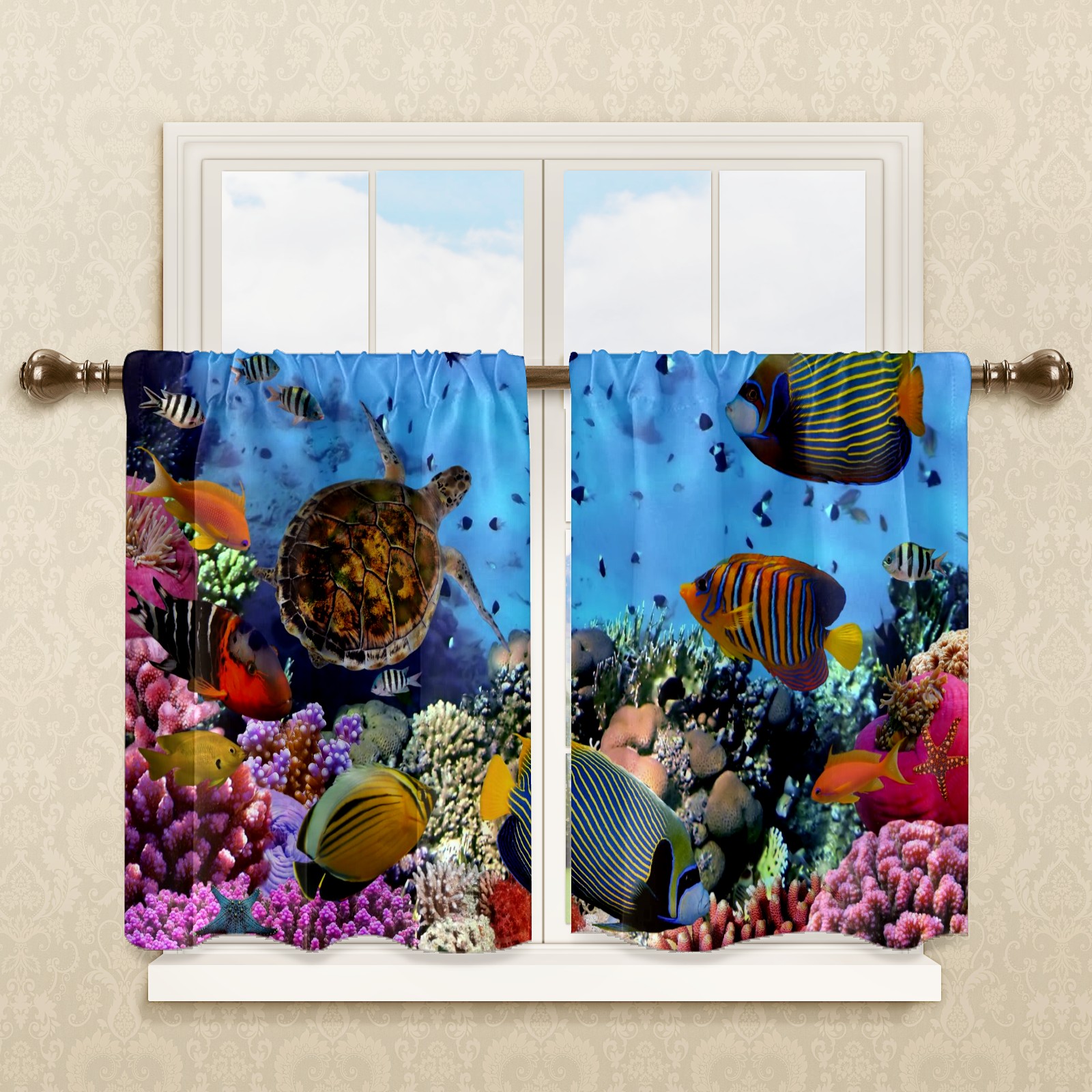 Шторы-панно для дома, декоративные драпировки для гостиной и спальни, легкие и прочные, Underwater Sea Turtle Coral Fishes